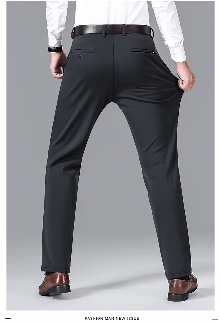 Woodpecker Brand Thickened Fleece-Lined Genuine Thick Casual Pants for Men, Business Straight-Leg Loose Dress Pants for Men, Stretchy and Wrinkle-Free for Outerwear