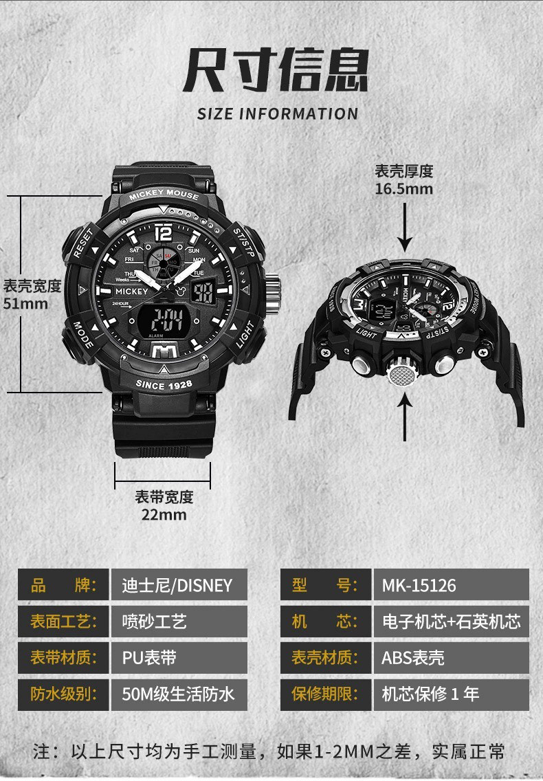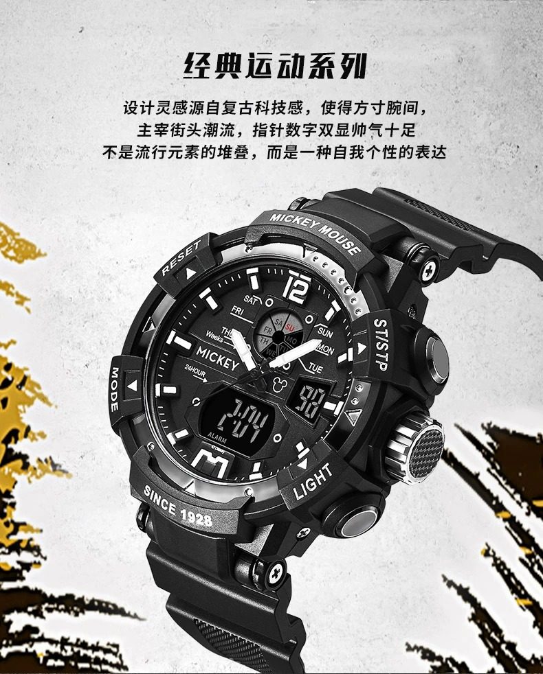 Disney Watch for Men, Suitable for Junior High and High School Students, Mechanical, for Teenagers, Boys, Waterproof, Sports, Children's Electronic
