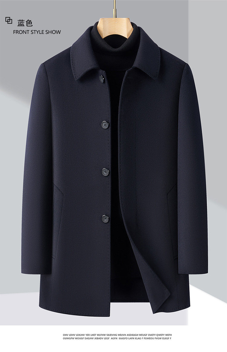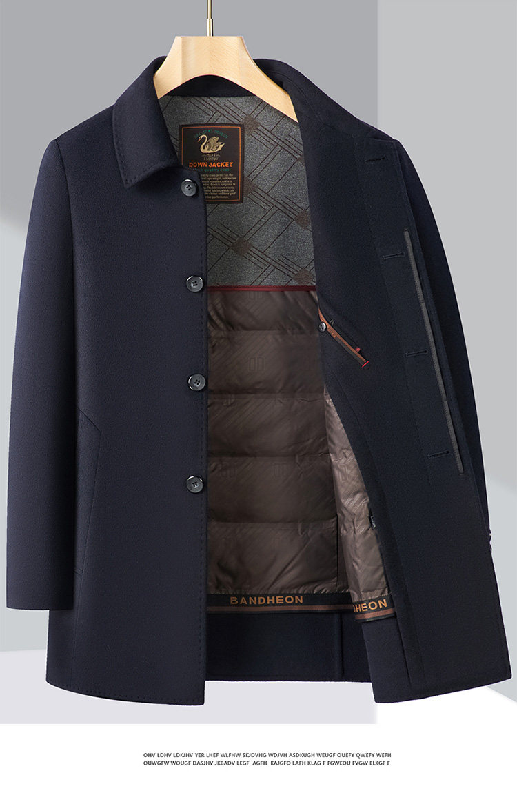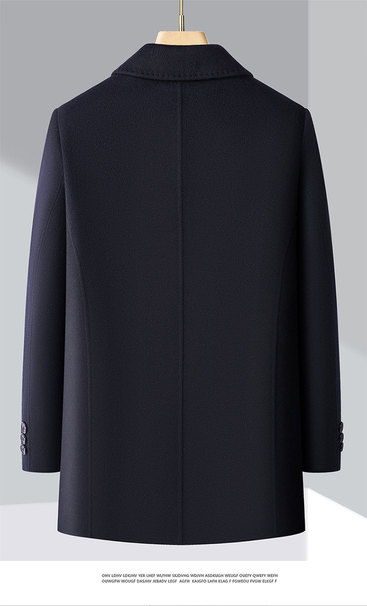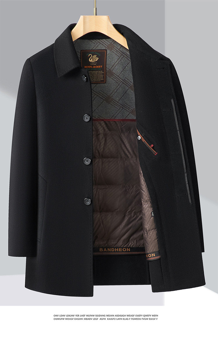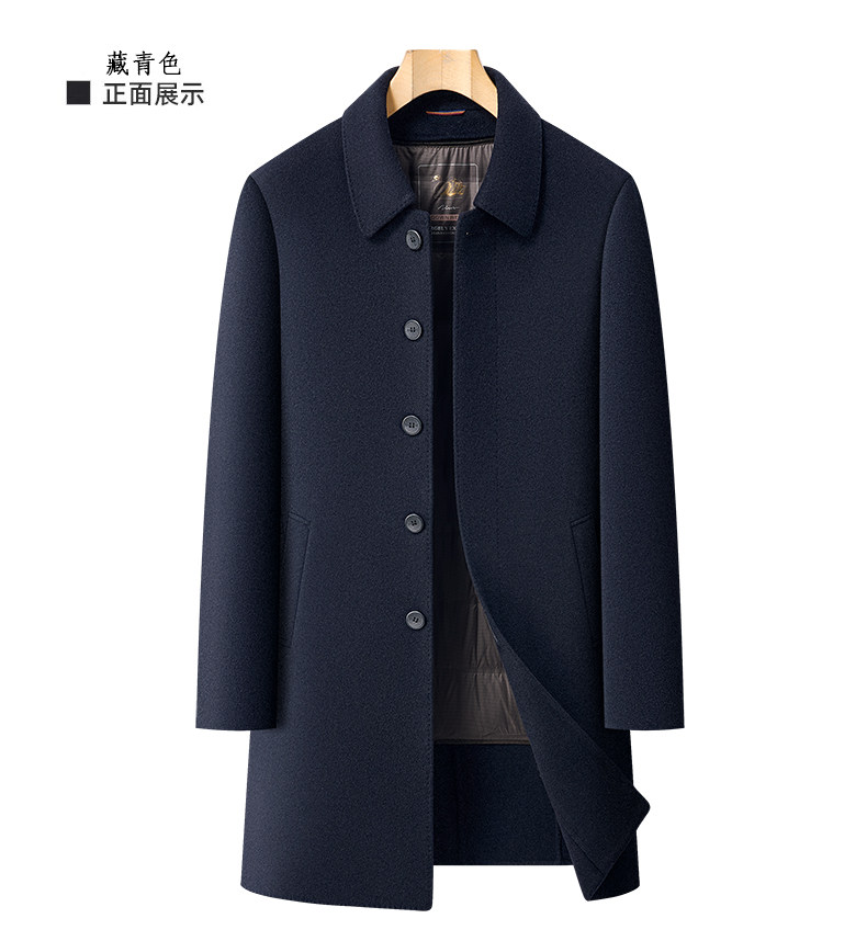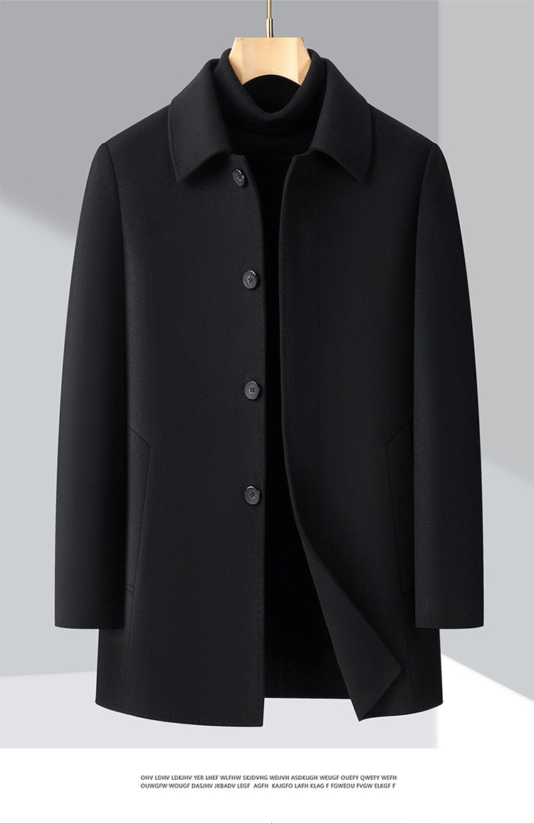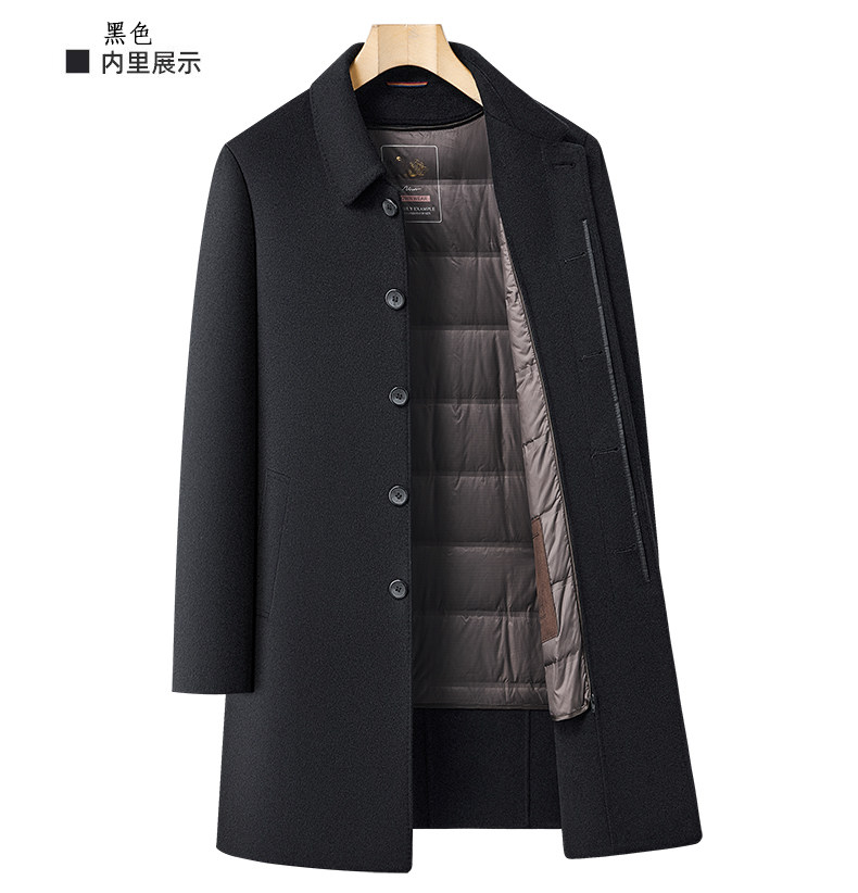 Pierre Cardin Cashmere Coat Double-Sided Woolen Coat with Lapel for Men, Mid-Length, Autumn and Winter, Thickened with down Lining