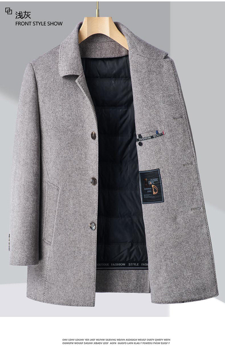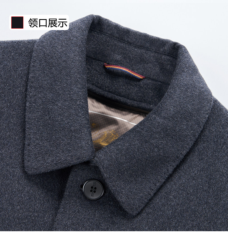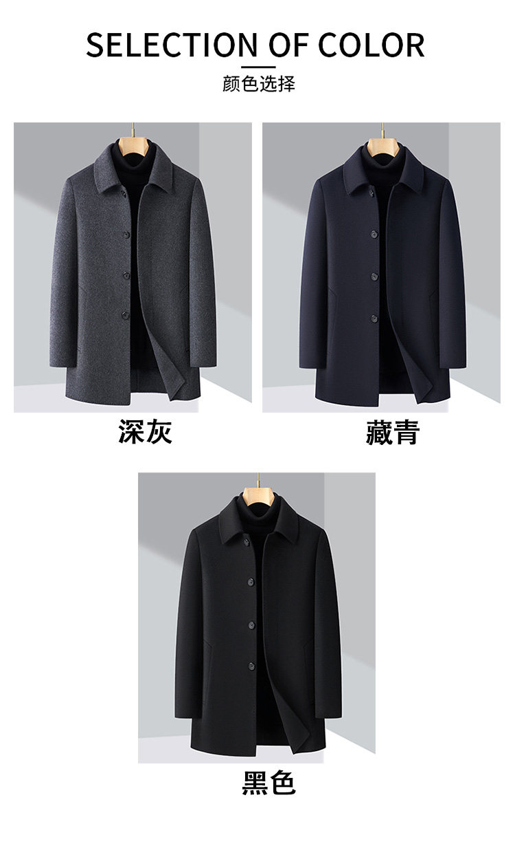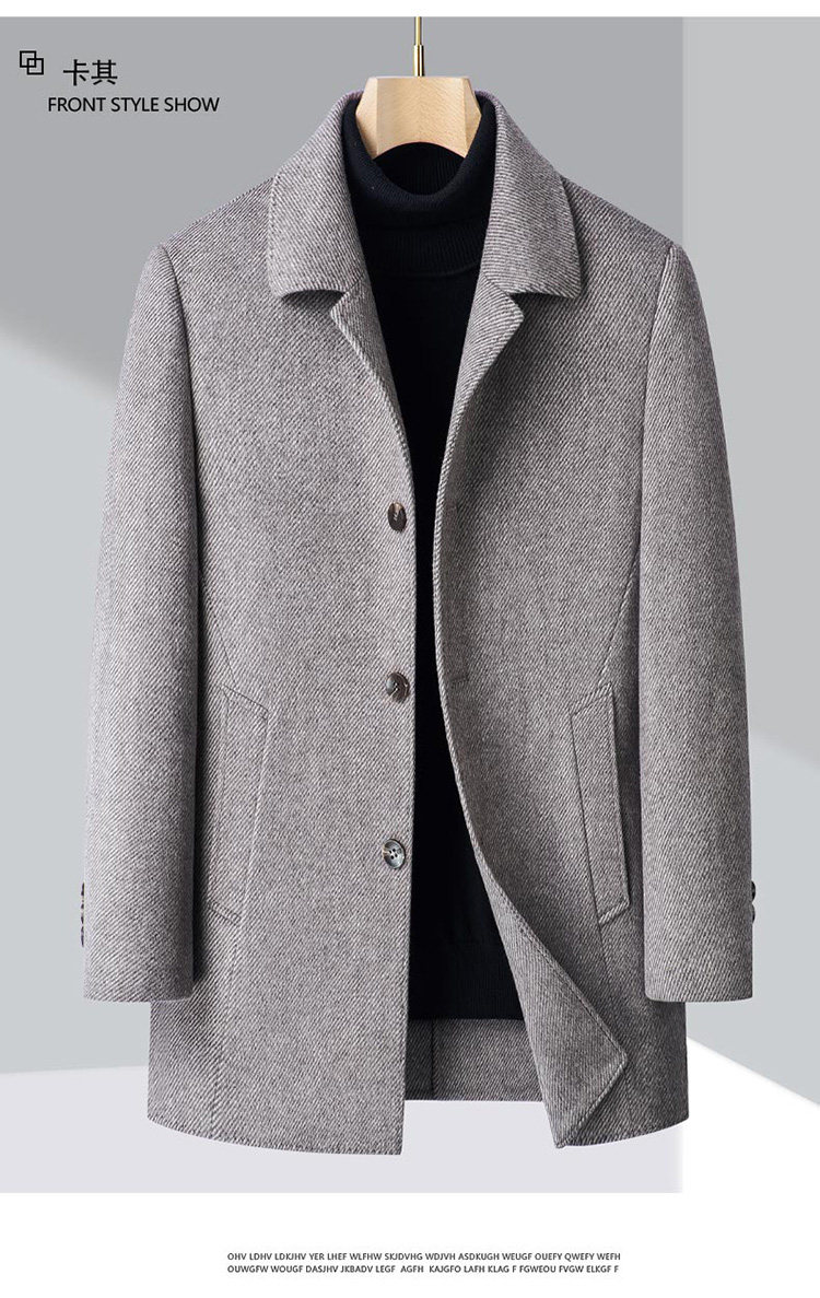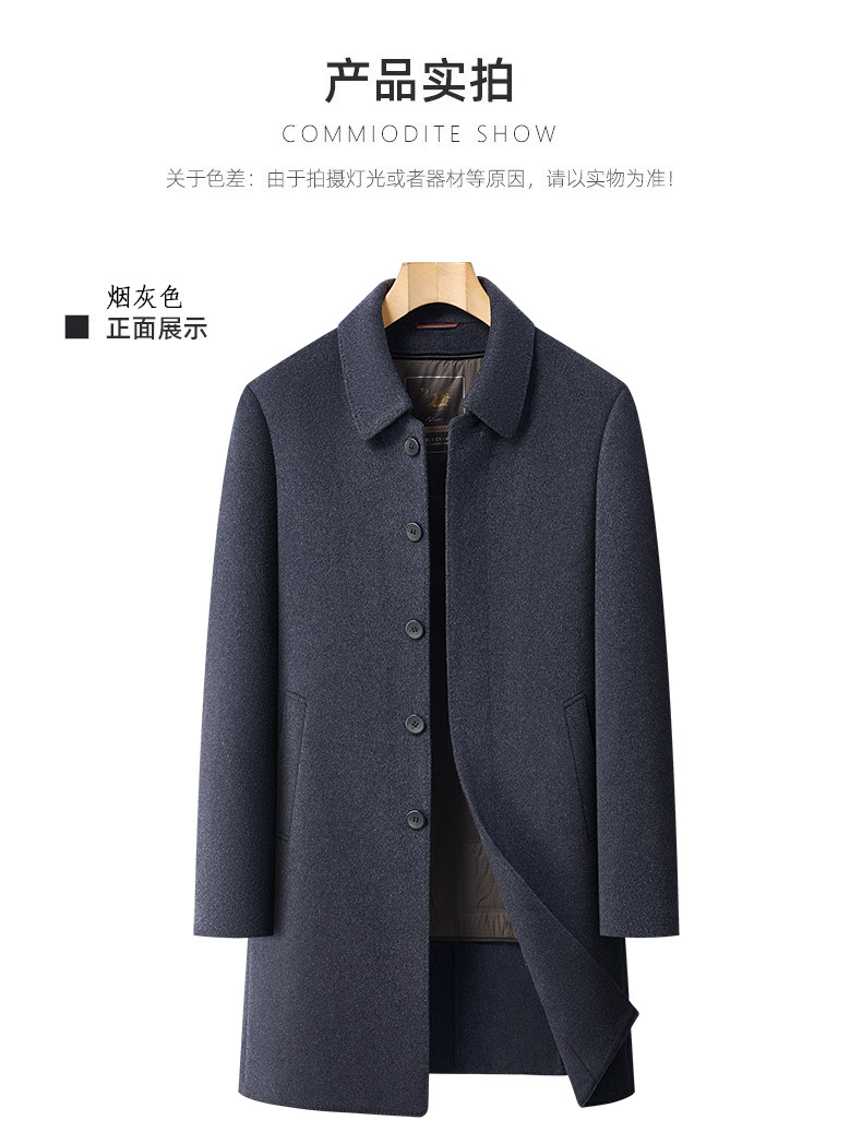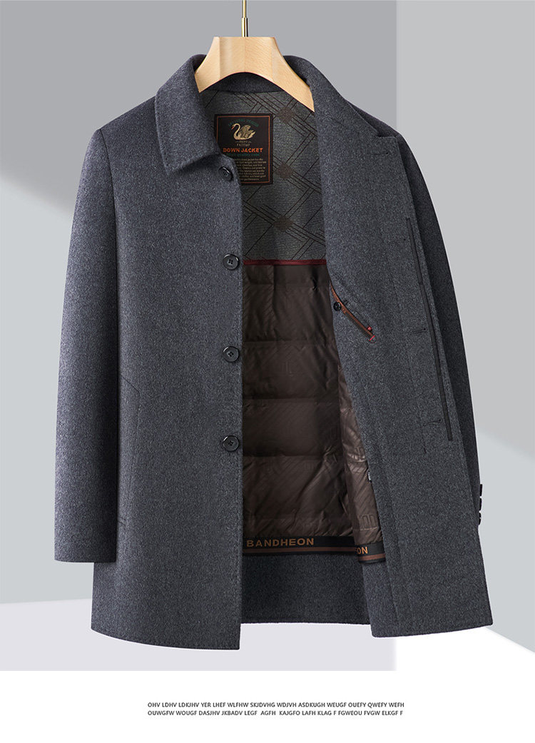 Pierre Cardin Cashmere Coat Double-Sided Woolen Coat with Lapel for Men, Mid-Length, Autumn and Winter, Thickened with down Lining