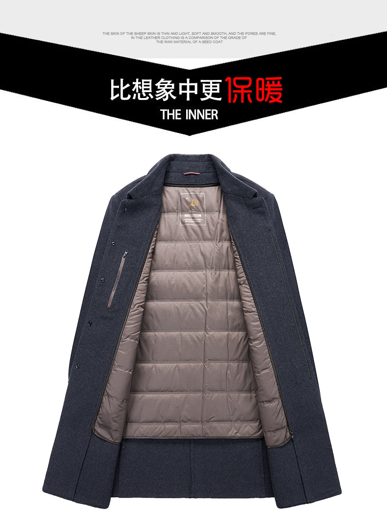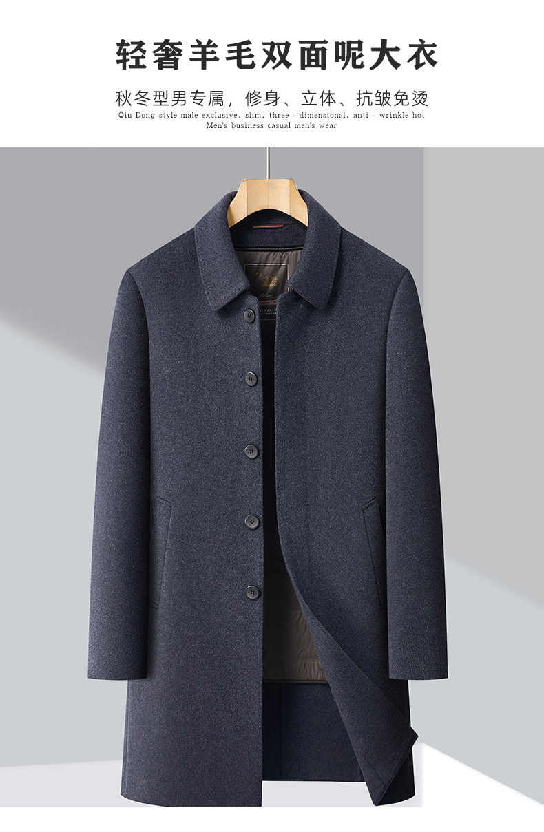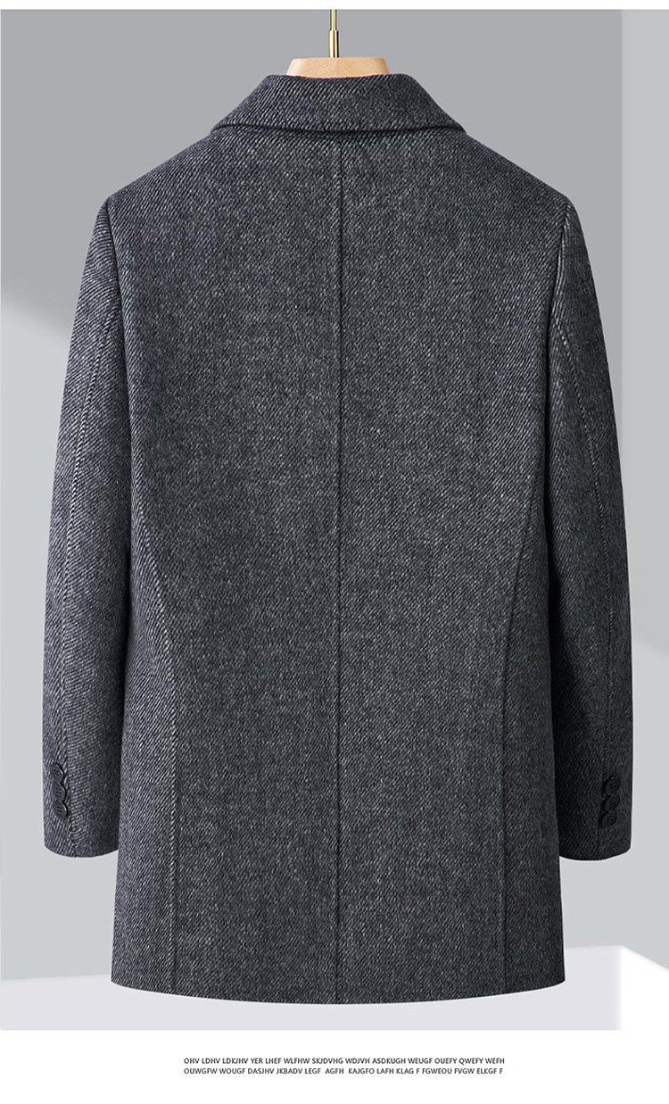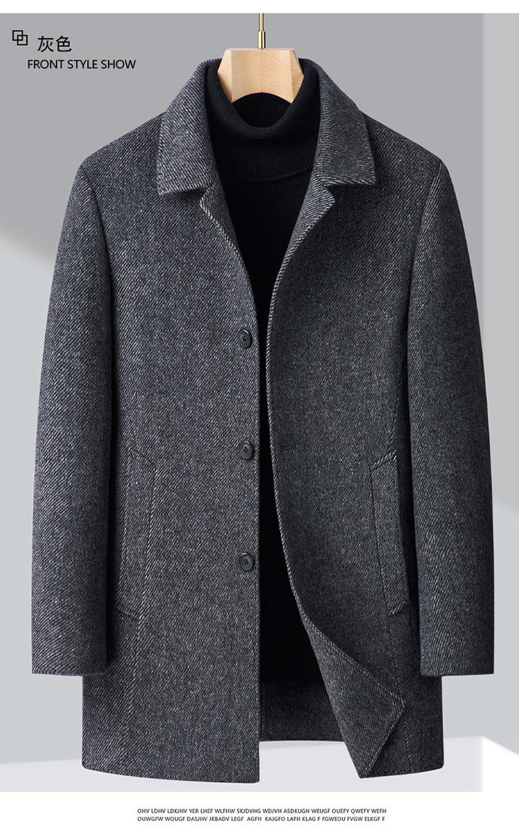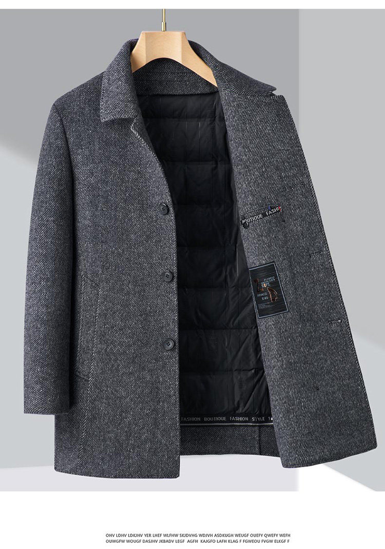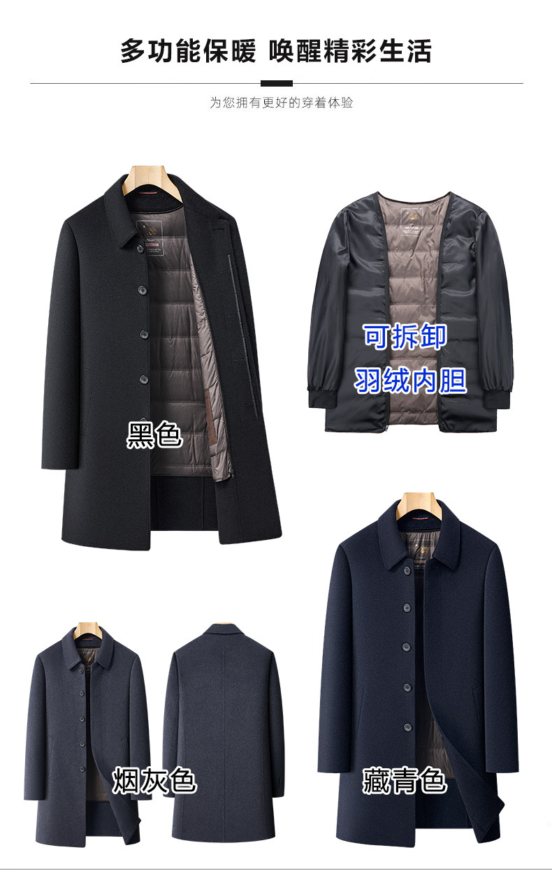 Pierre Cardin Cashmere Coat Double-Sided Woolen Coat with Lapel for Men, Mid-Length, Autumn and Winter, Thickened with down Lining