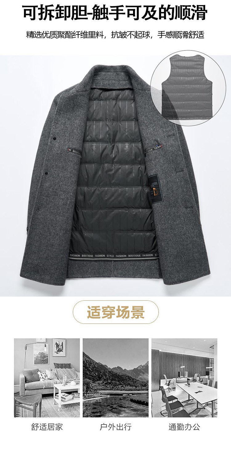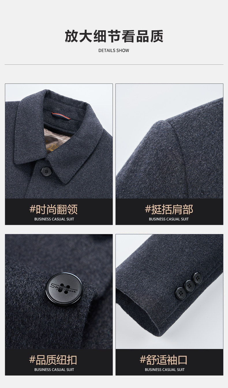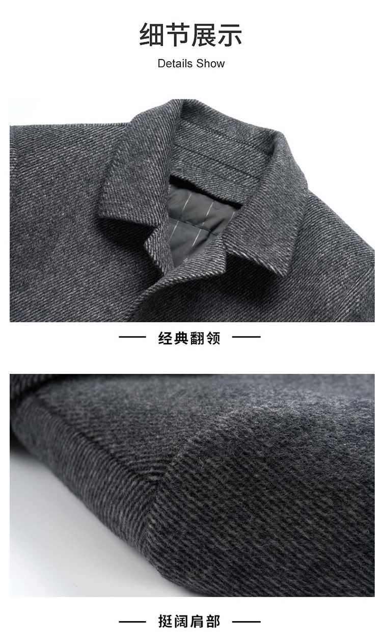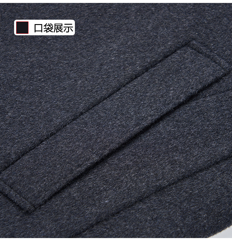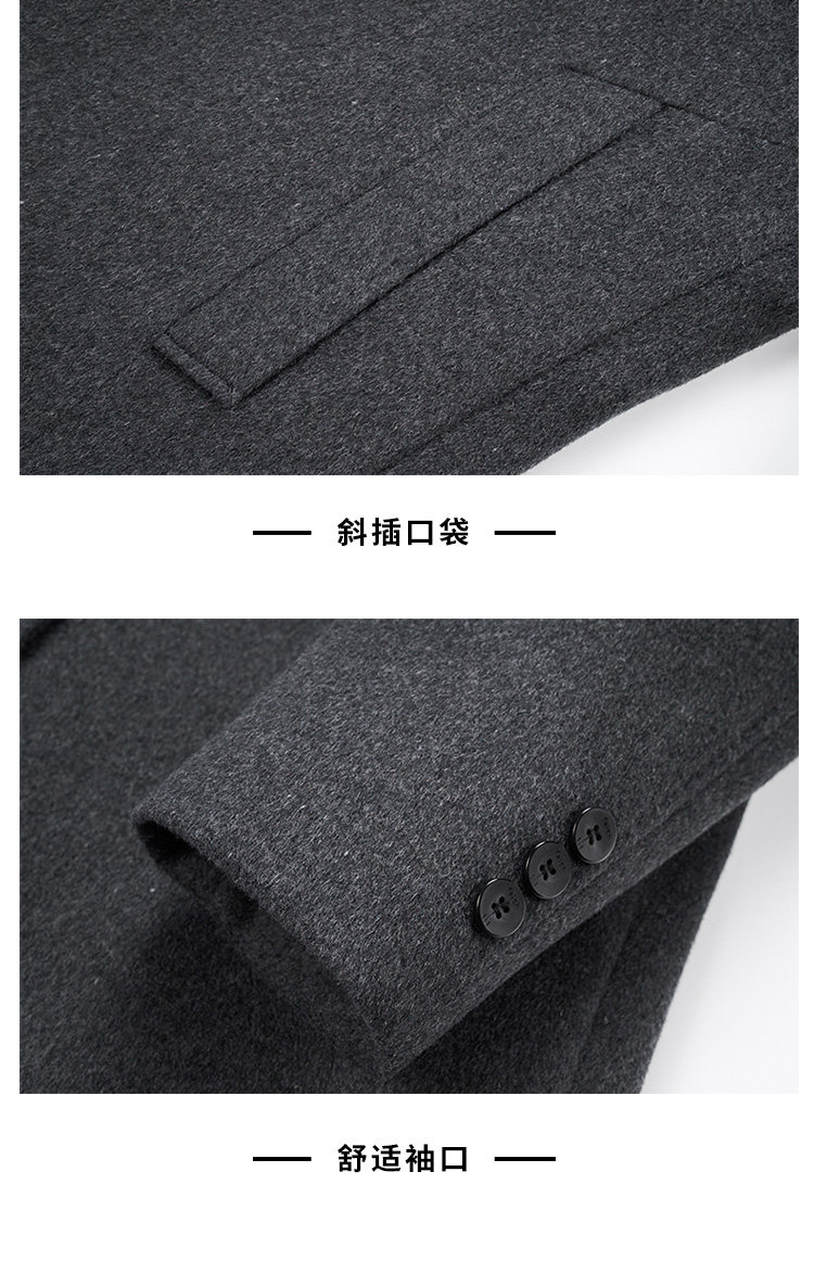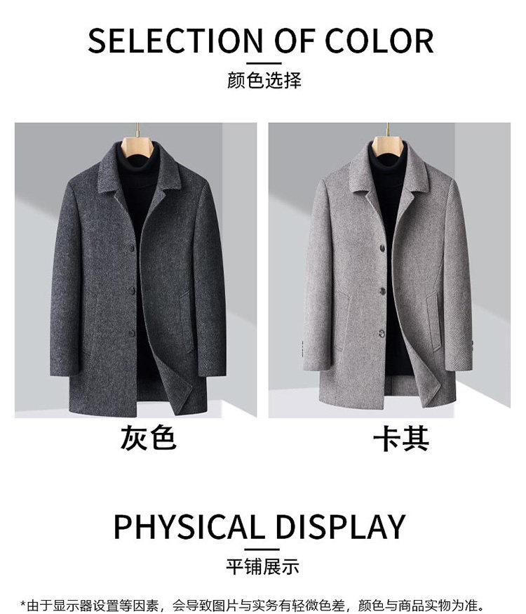 Pierre Cardin Cashmere Coat Double-Sided Woolen Coat with Lapel for Men, Mid-Length, Autumn and Winter, Thickened with down Lining