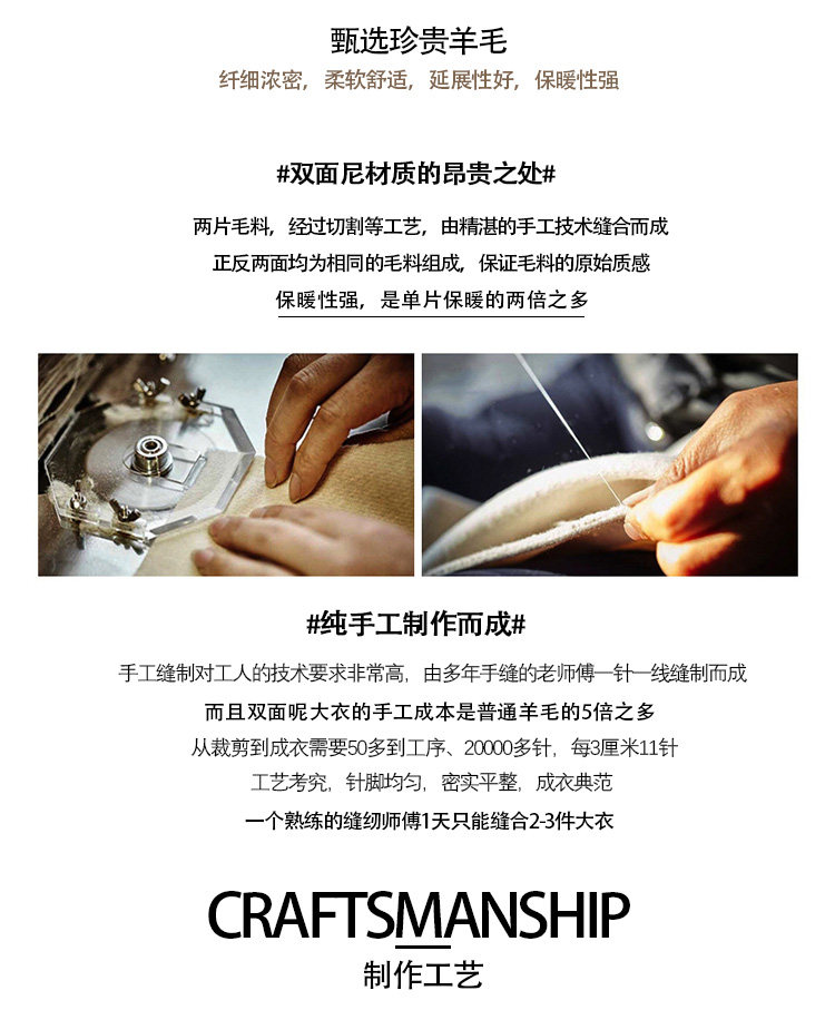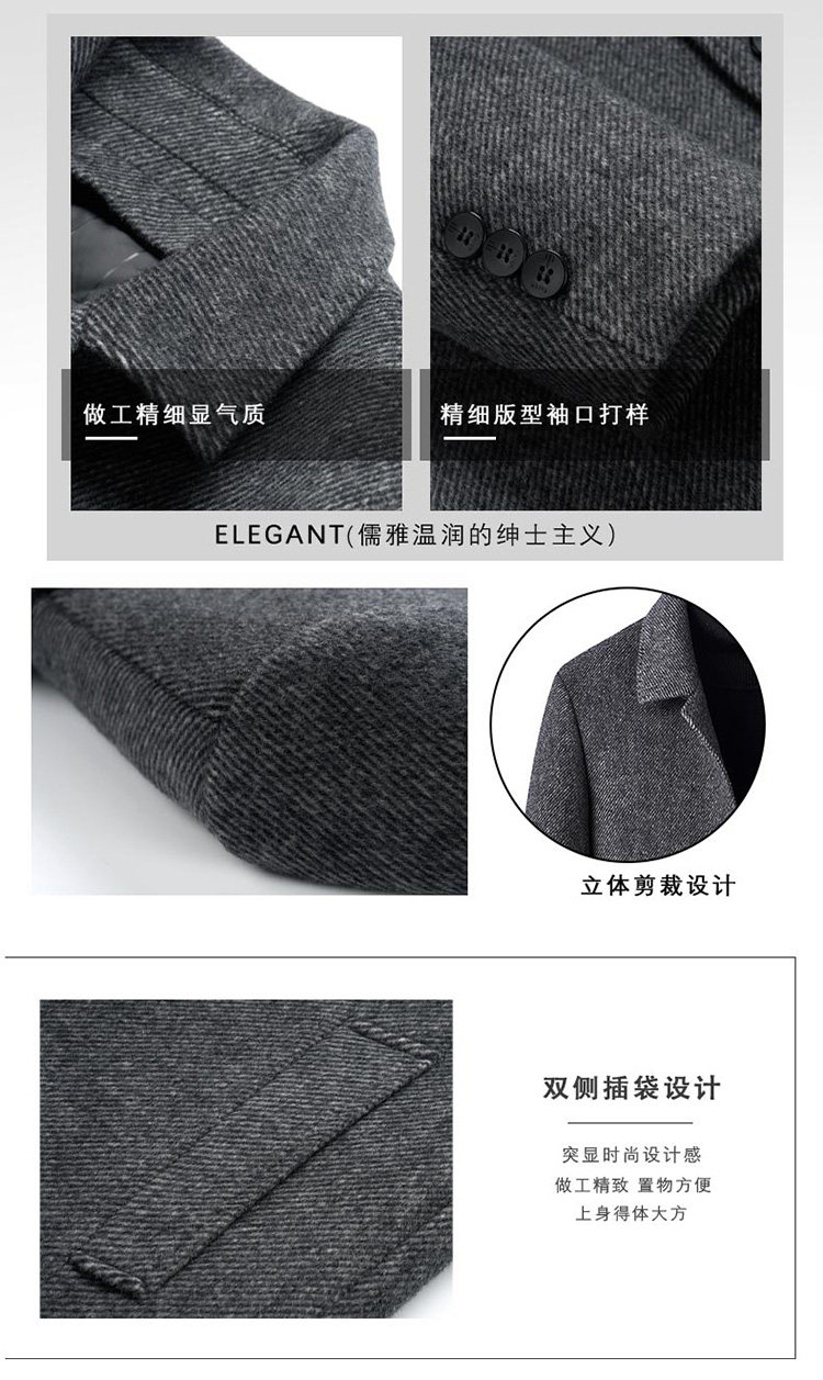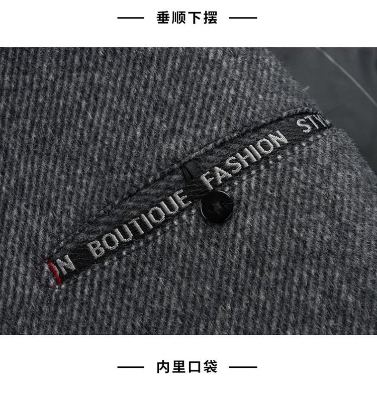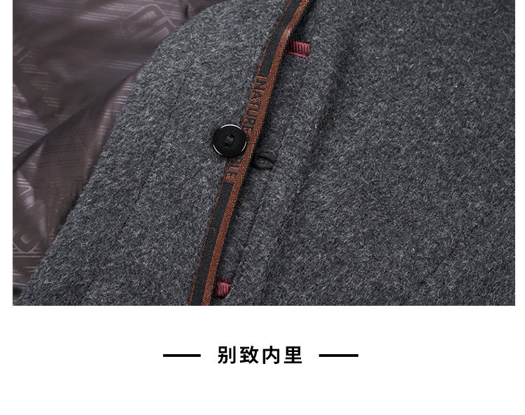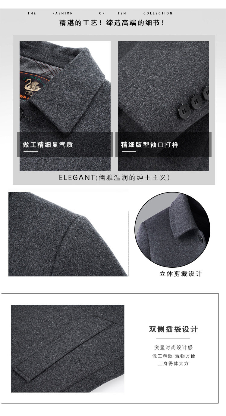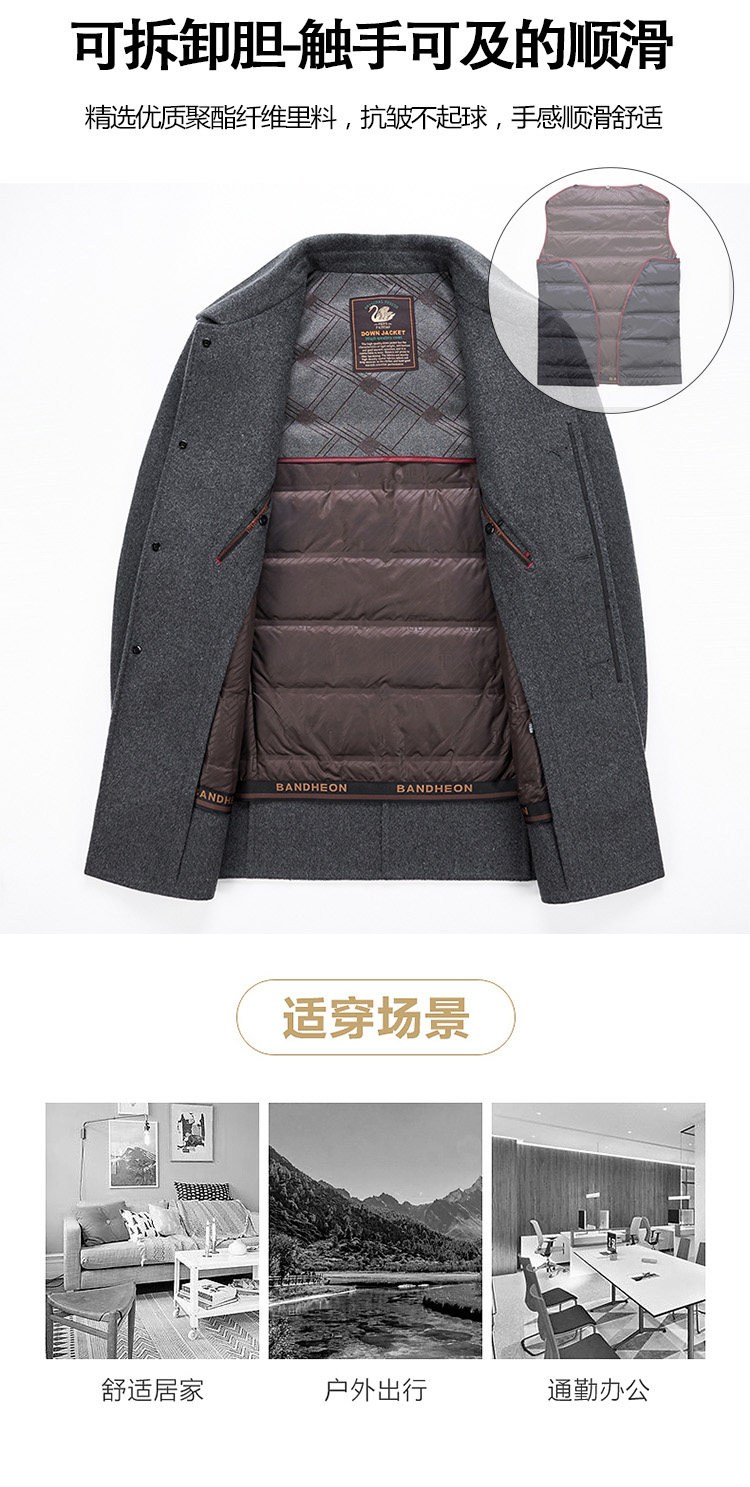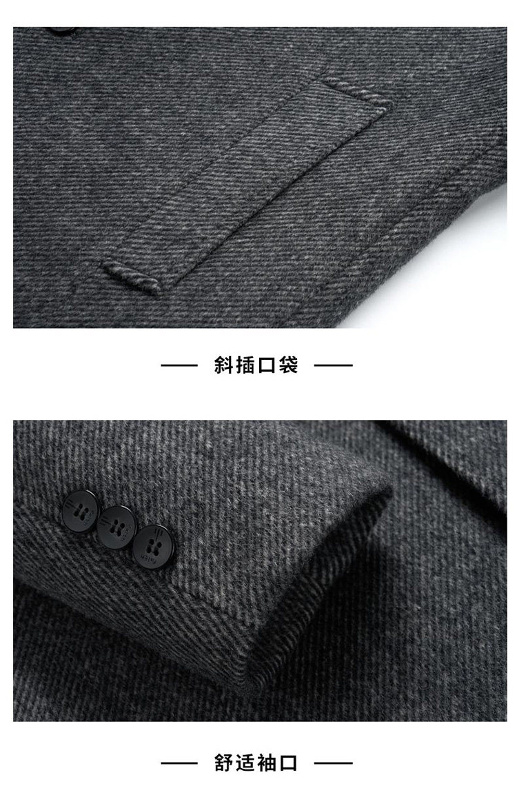 Pierre Cardin Cashmere Coat Double-Sided Woolen Coat with Lapel for Men, Mid-Length, Autumn and Winter, Thickened with down Lining