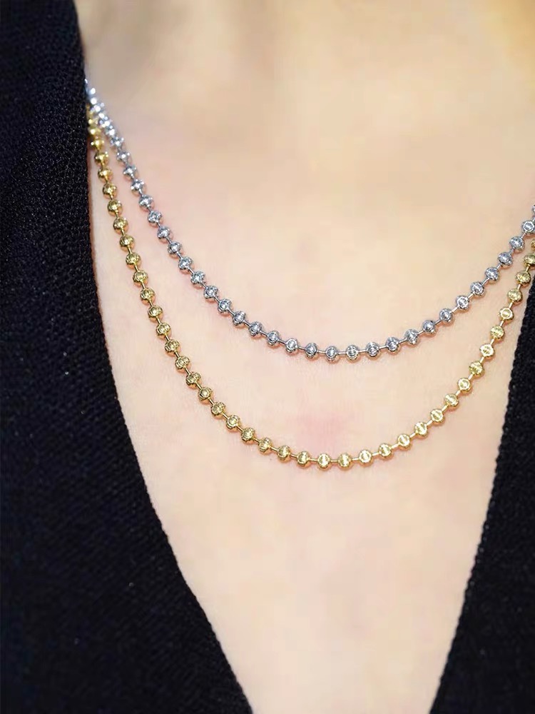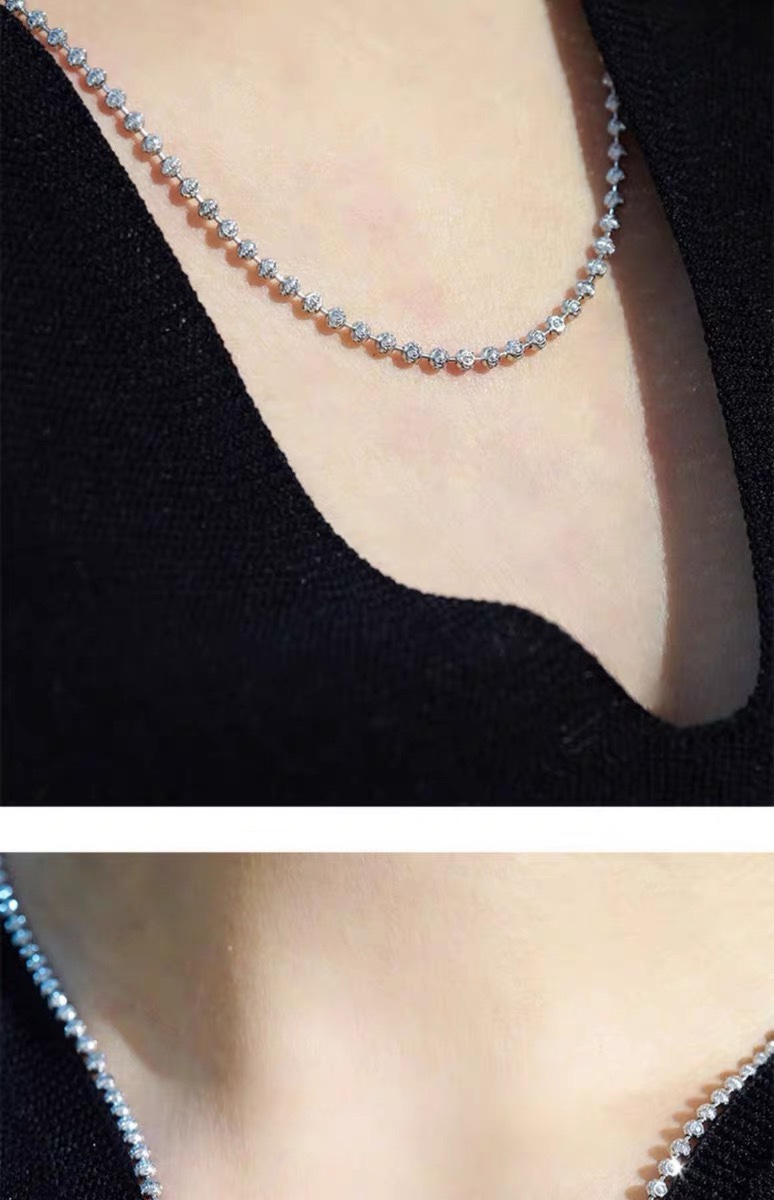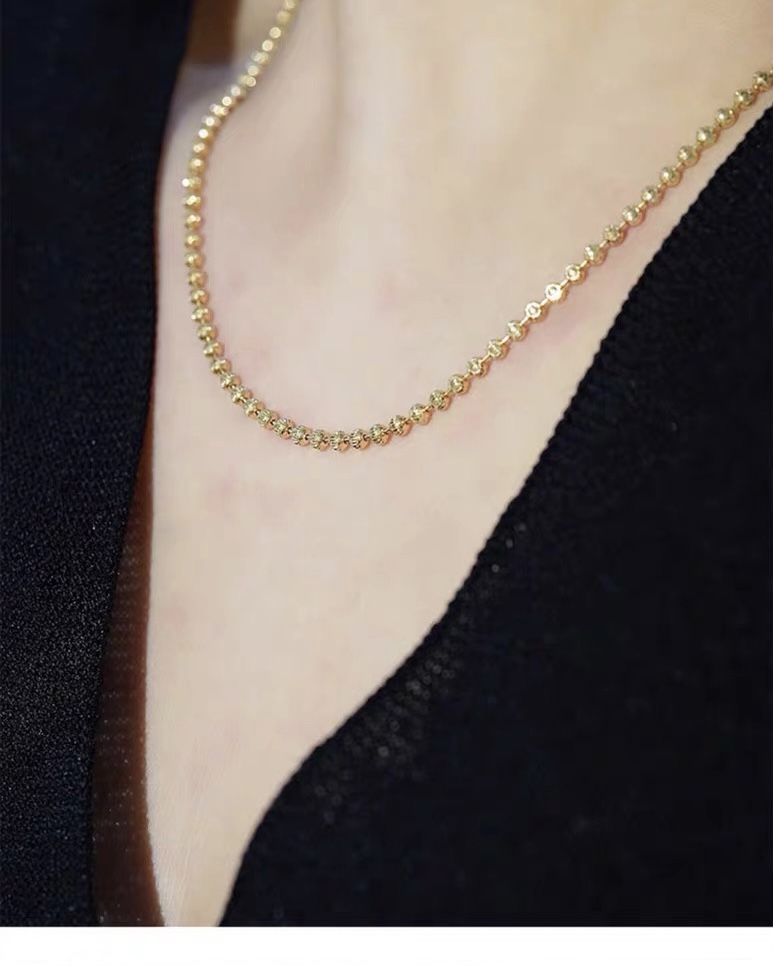 18K Diamond Chain Alternative Model S925 Sterling Silver Necklace, Italian Imported Craftsmanship, Plated with 18K, Universal Adjustable Chain