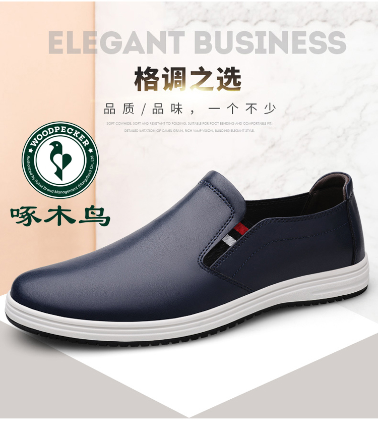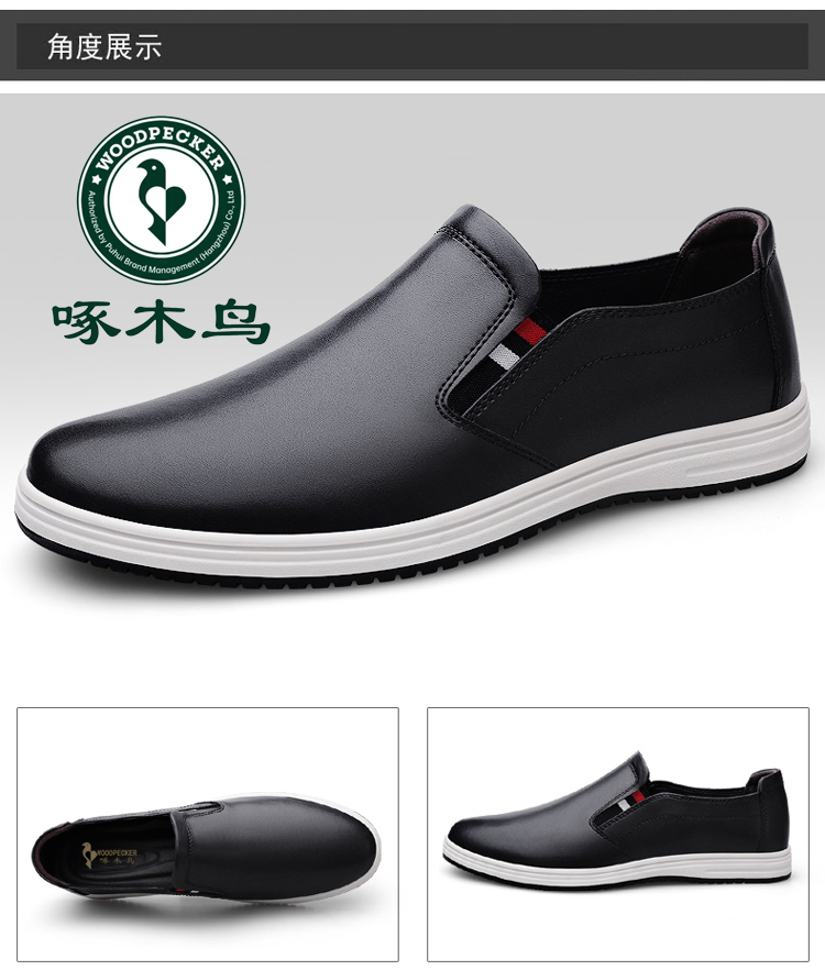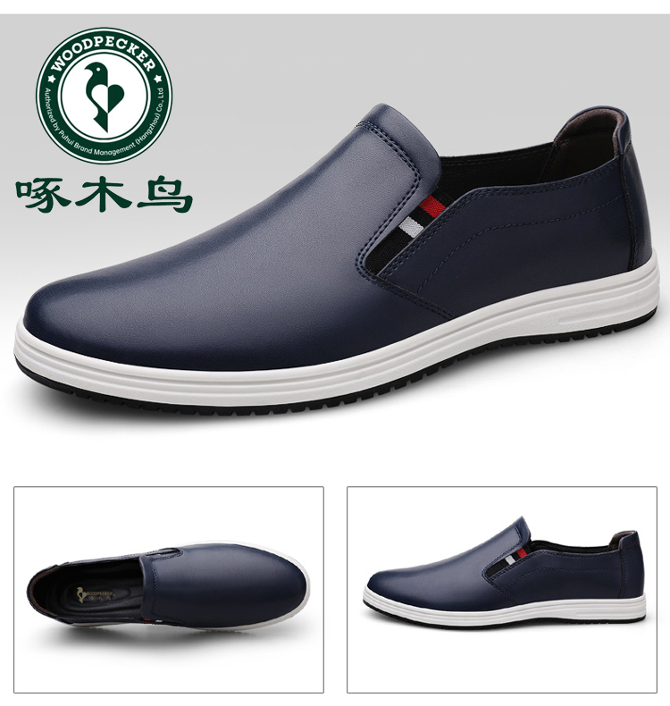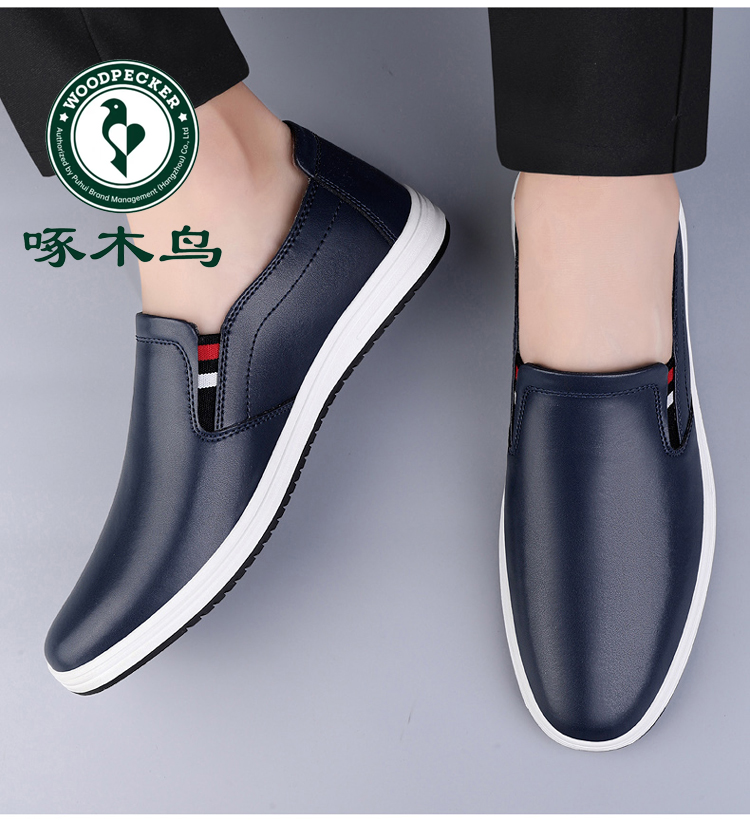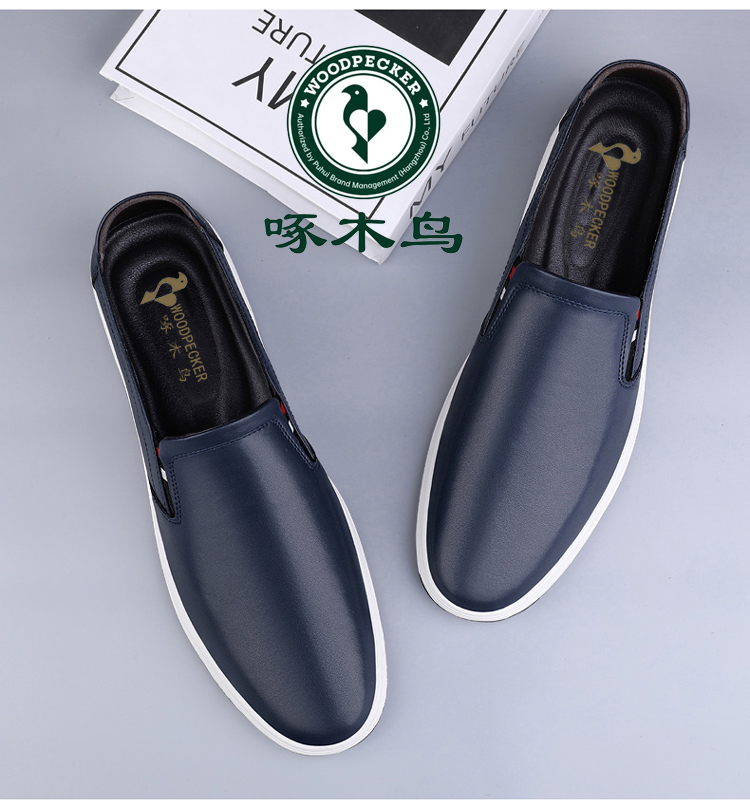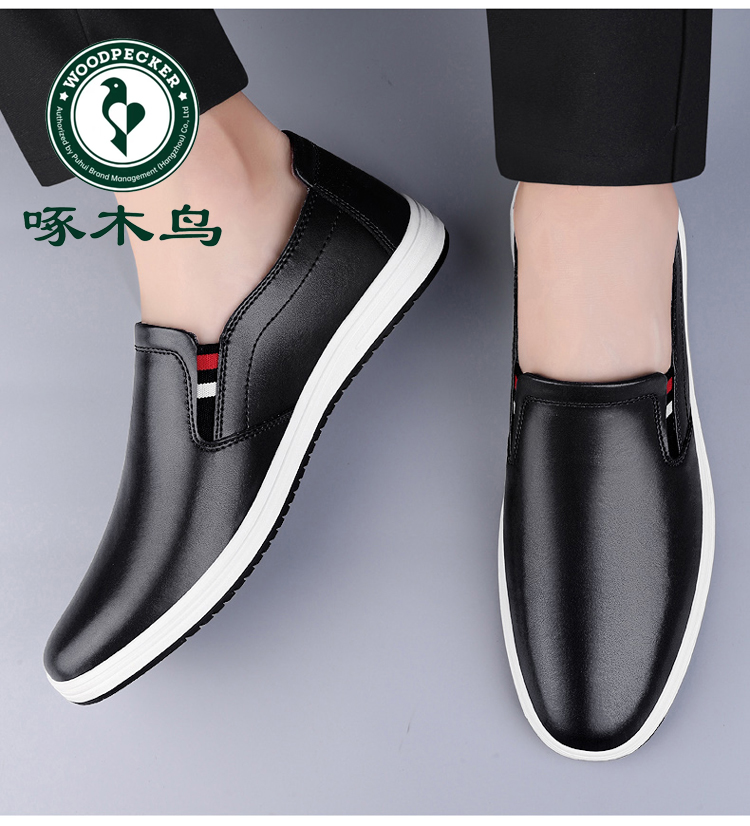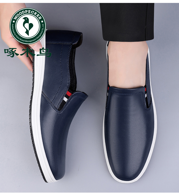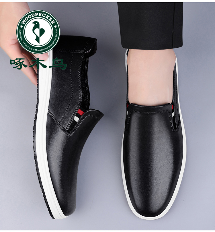 Woodpecker Leather Shoes for Men 2025 New Genuine Leather Breathable Casual Shoes Size 36 Small Size 46 Large Size Slip-On Lazy Shoes