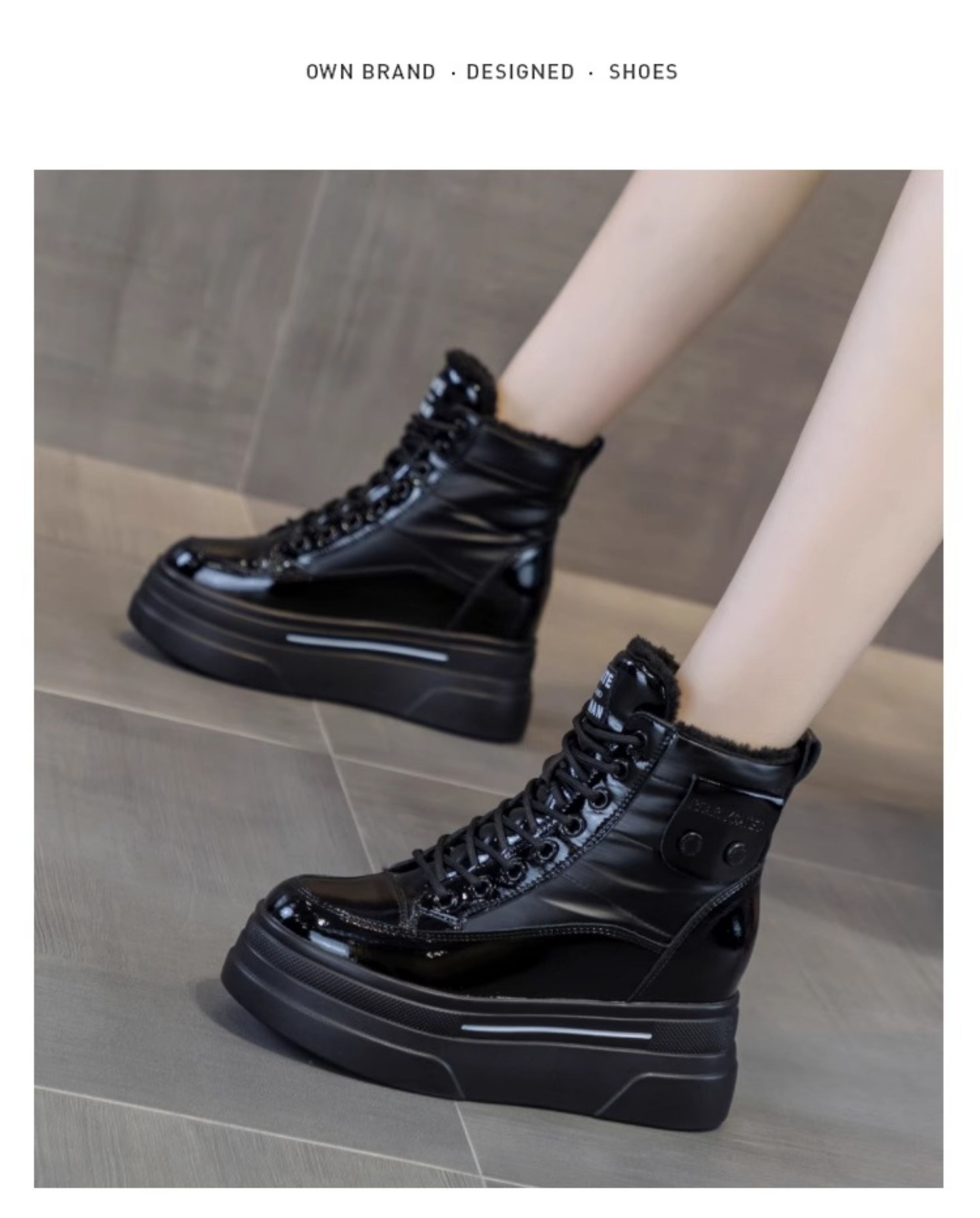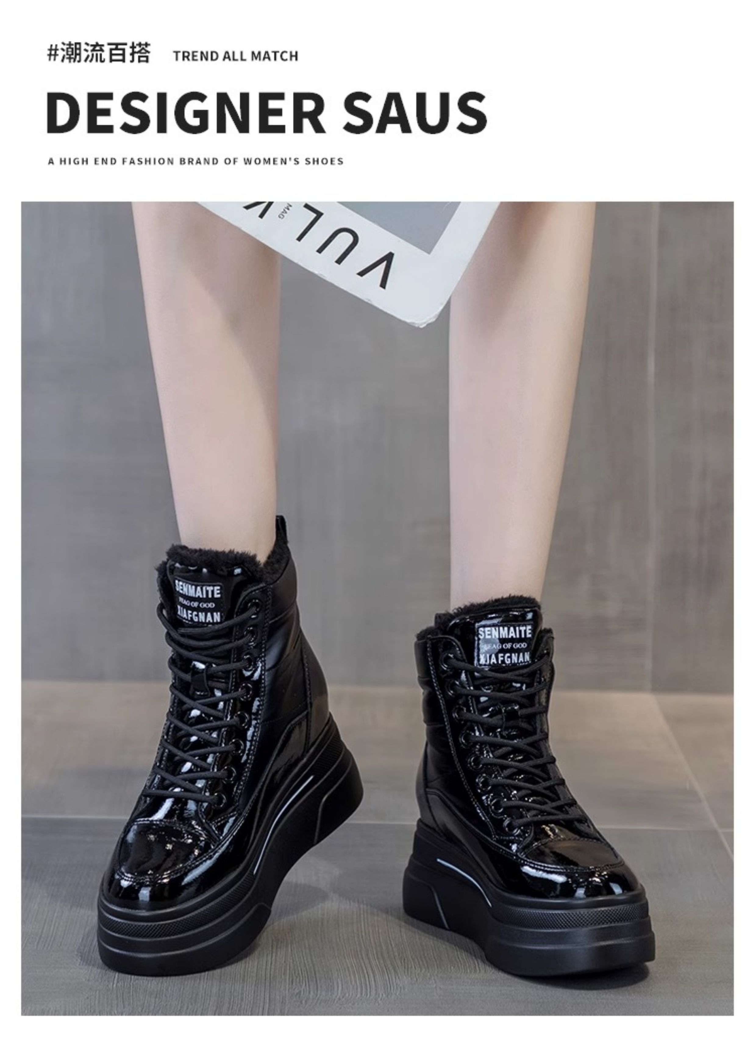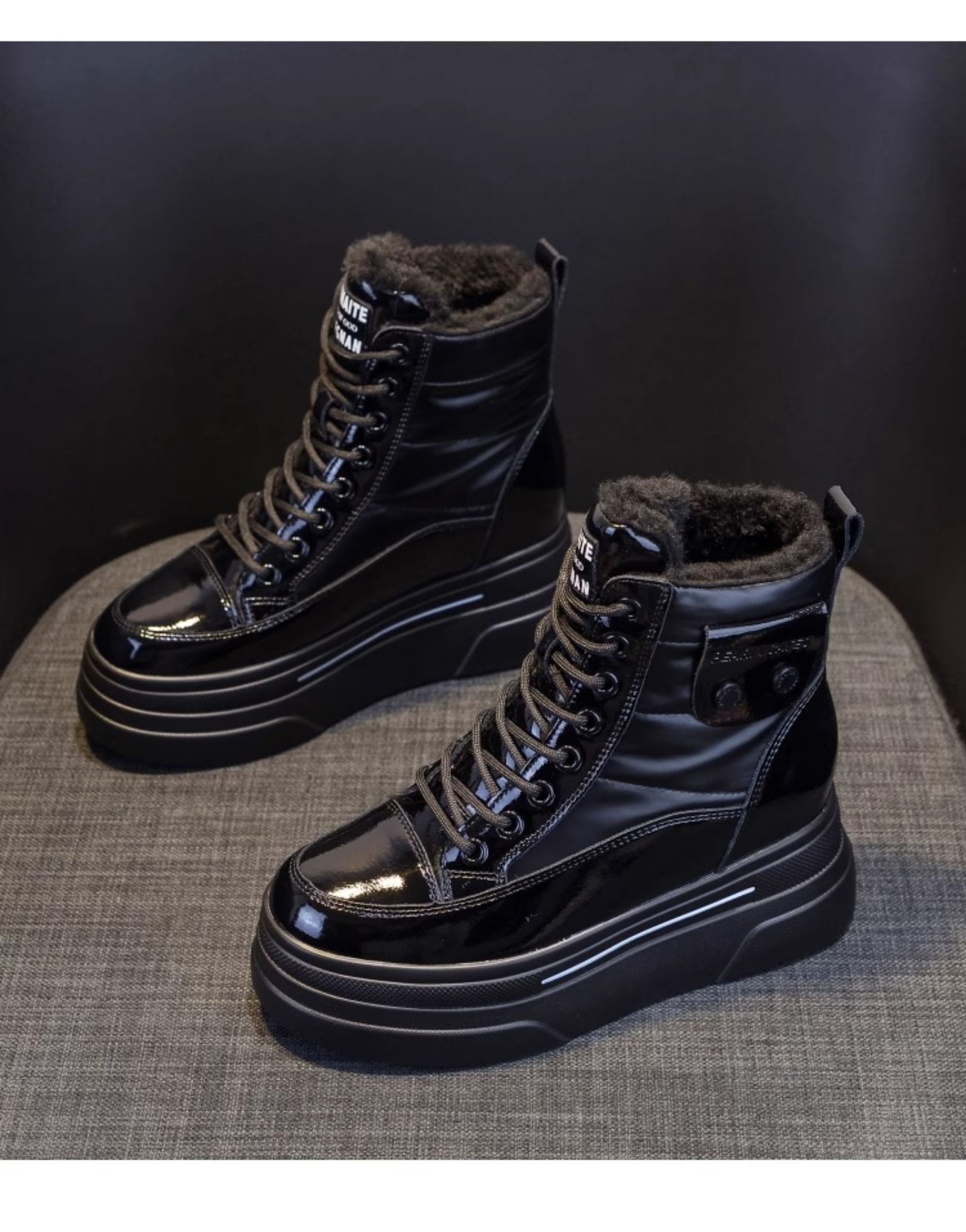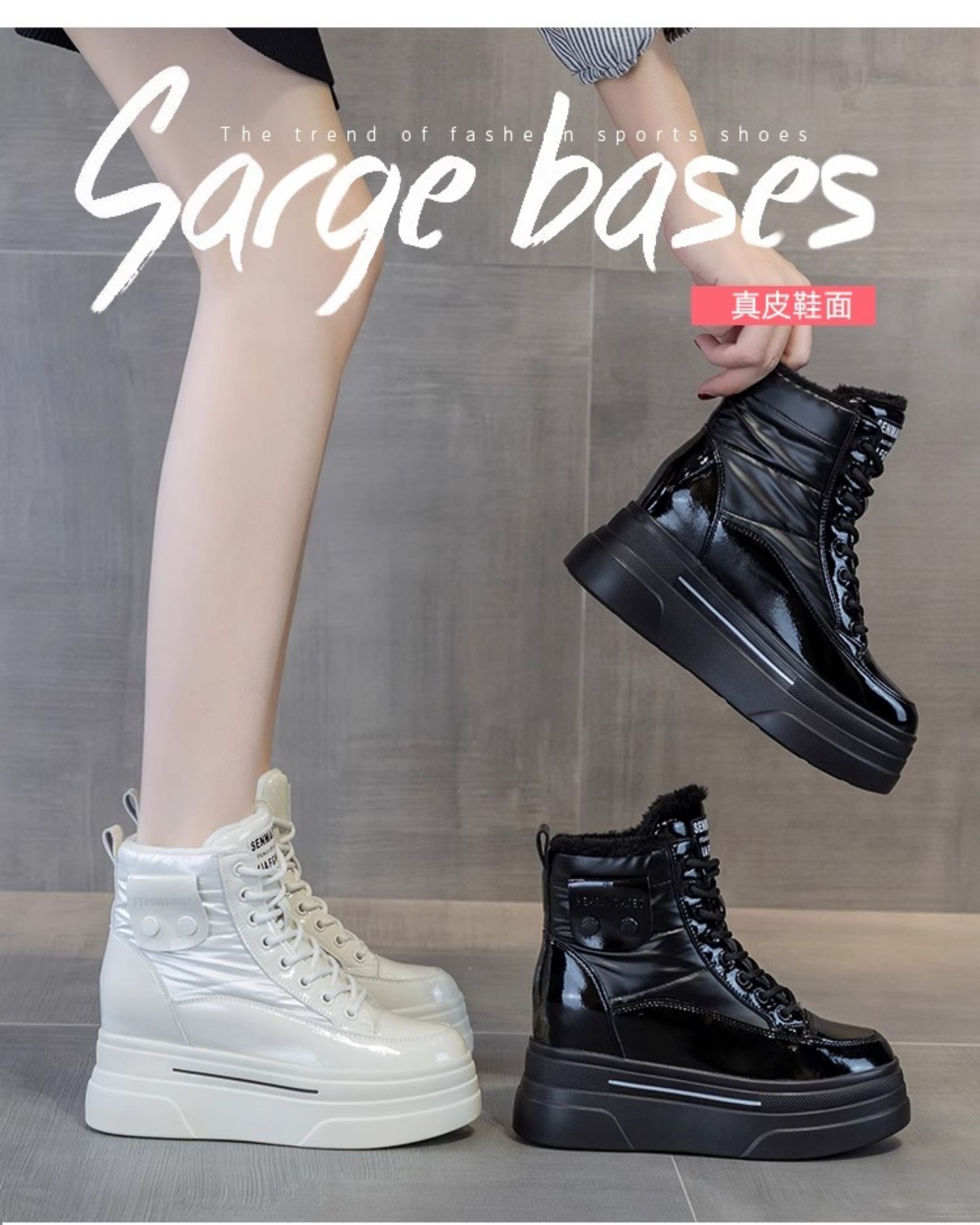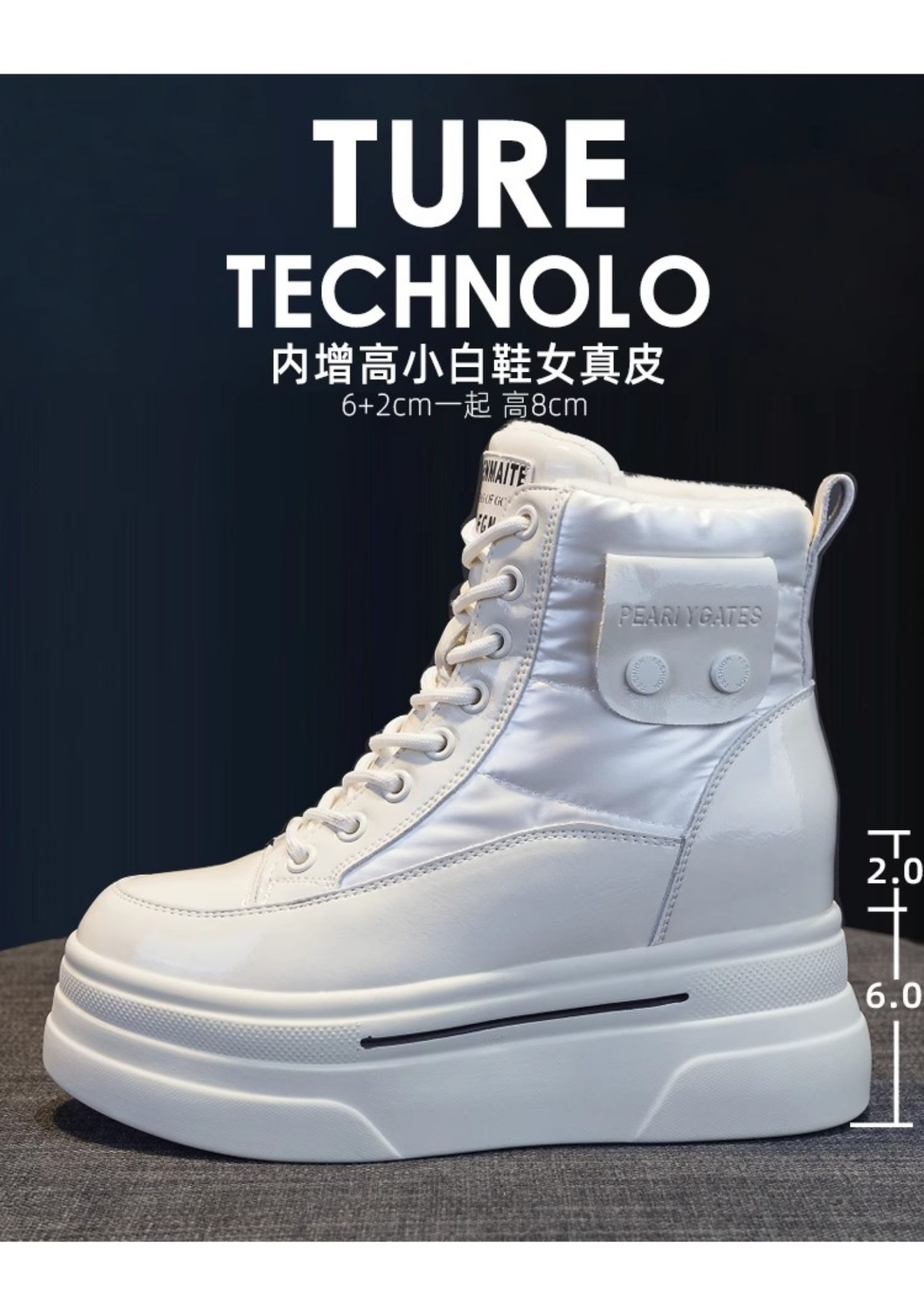 Hong Kong Fleece-Lined White Sneakers for Women with Hidden Height Increase, 2025 Autumn and Winter New Thick-Soled High-Top Cotton Shoes, Versatile Snow Boots