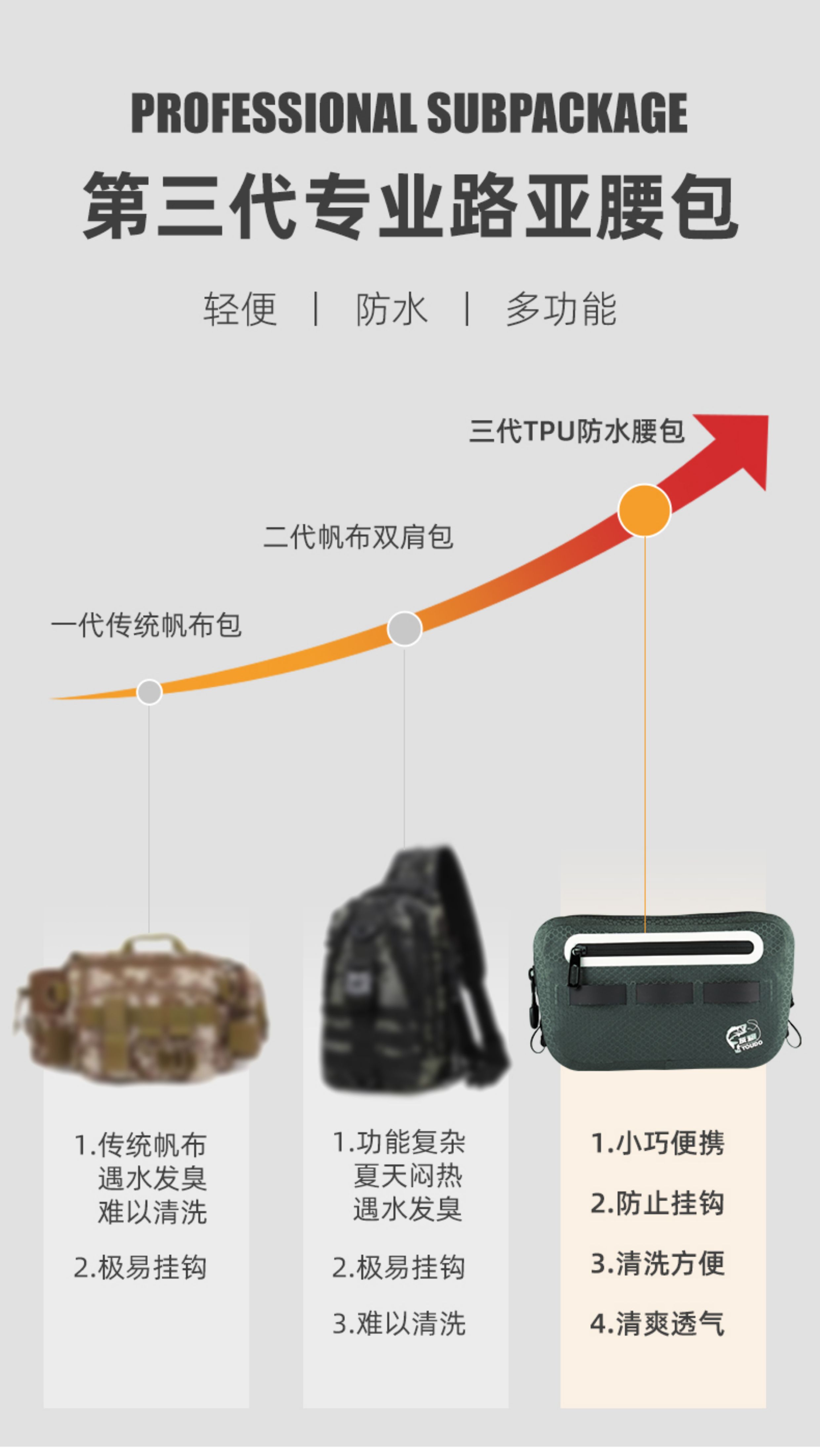 Youdu Luya Waterproof Waist Bag Multi-Functional Fishing Crossbody Backpack Fishing Gear Bag Airtight Floating Bag