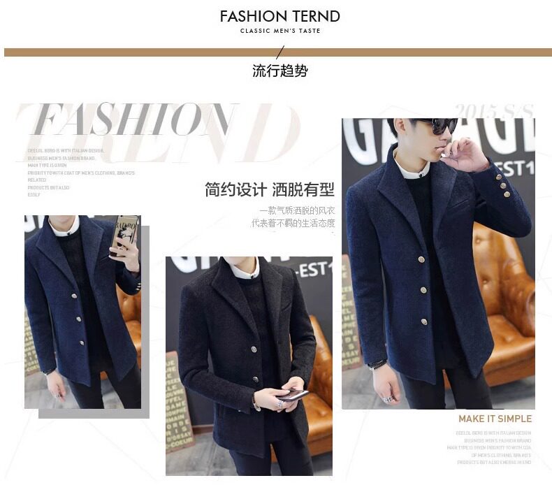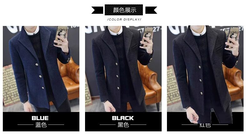 Short Trench Coat for Men, Autumn and Winter 2025 New Stylish Woolen Coat, Fleece-Lined and Thickened Casual Jacket, Woolen Suit