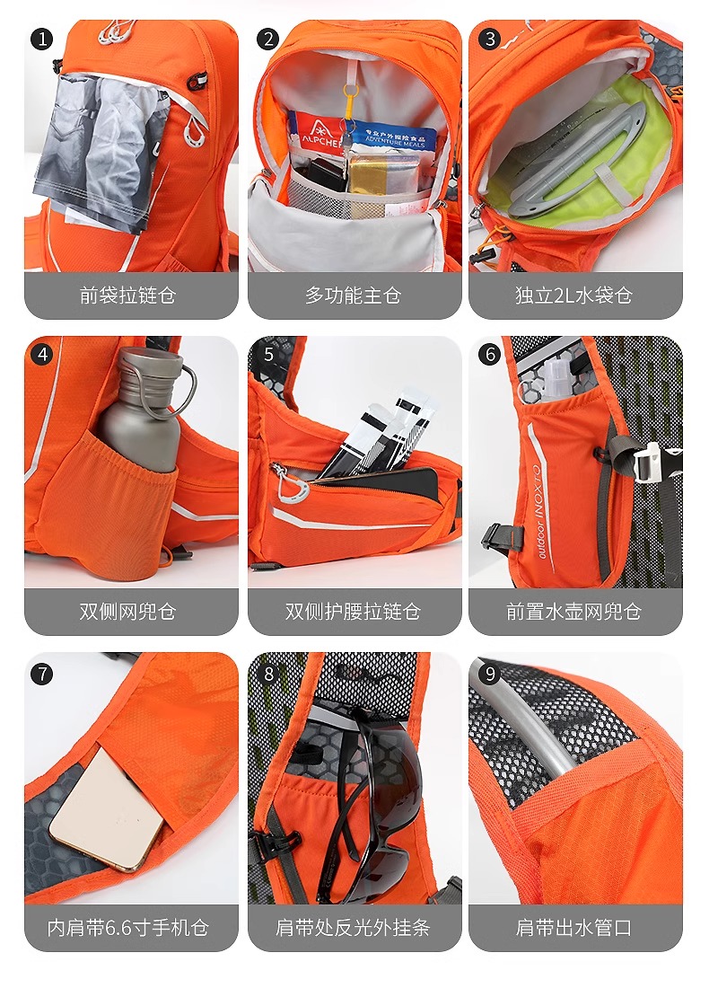 Inoxto Eagle Pattern Outdoor Hiking Bag 16L Trekking Bag Cycling Bag Ultra-Light Unisex Cross-Country Backpack Breathable
