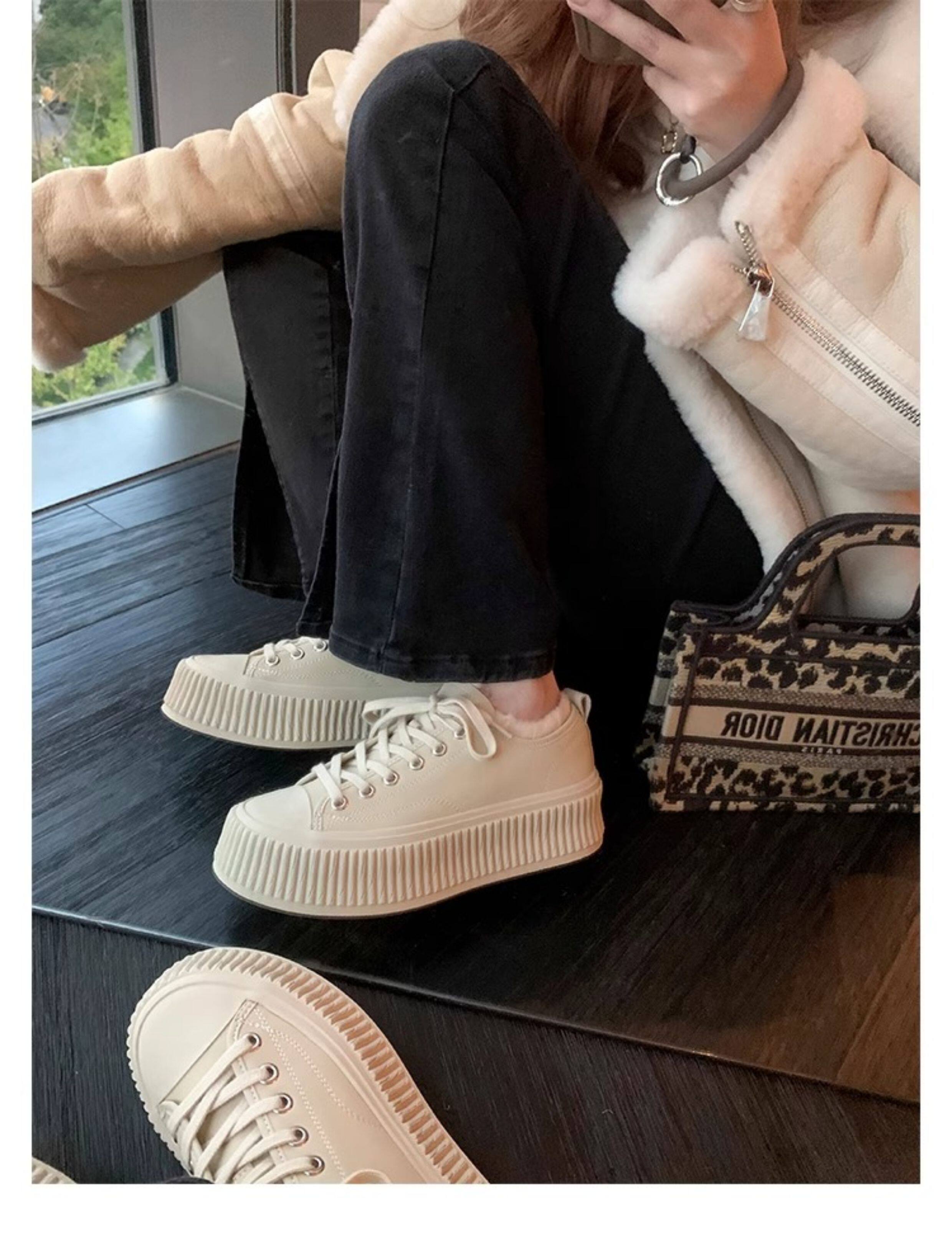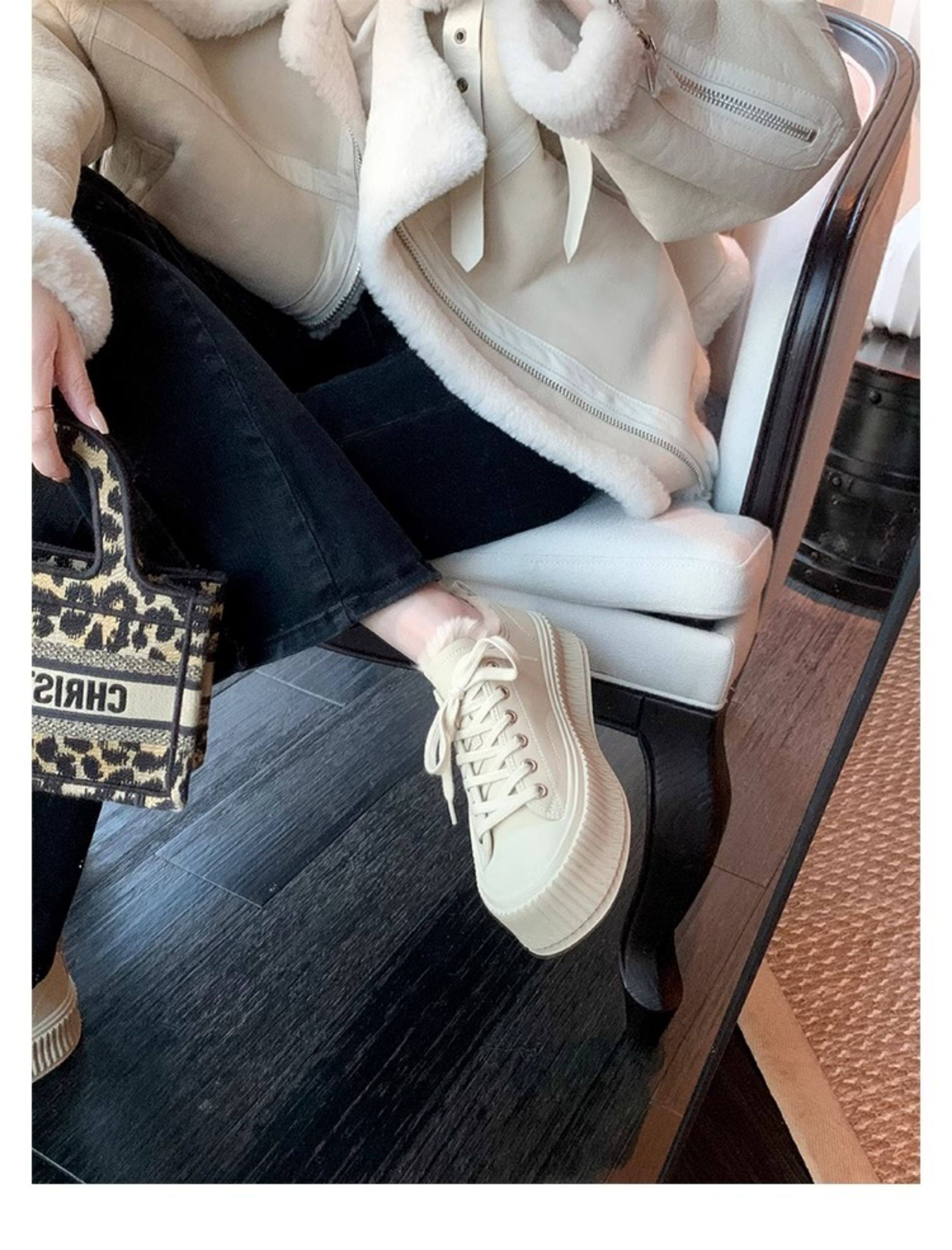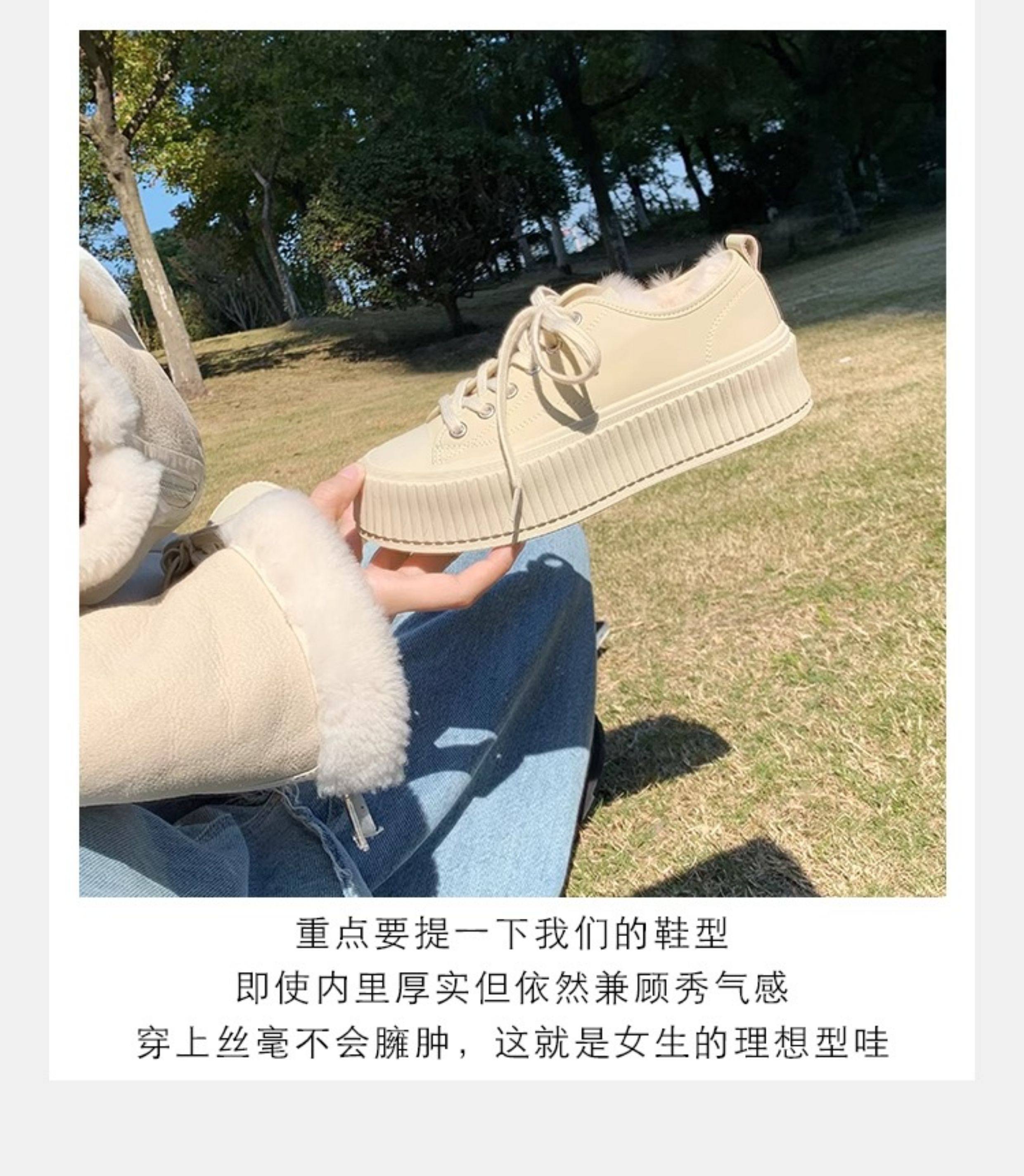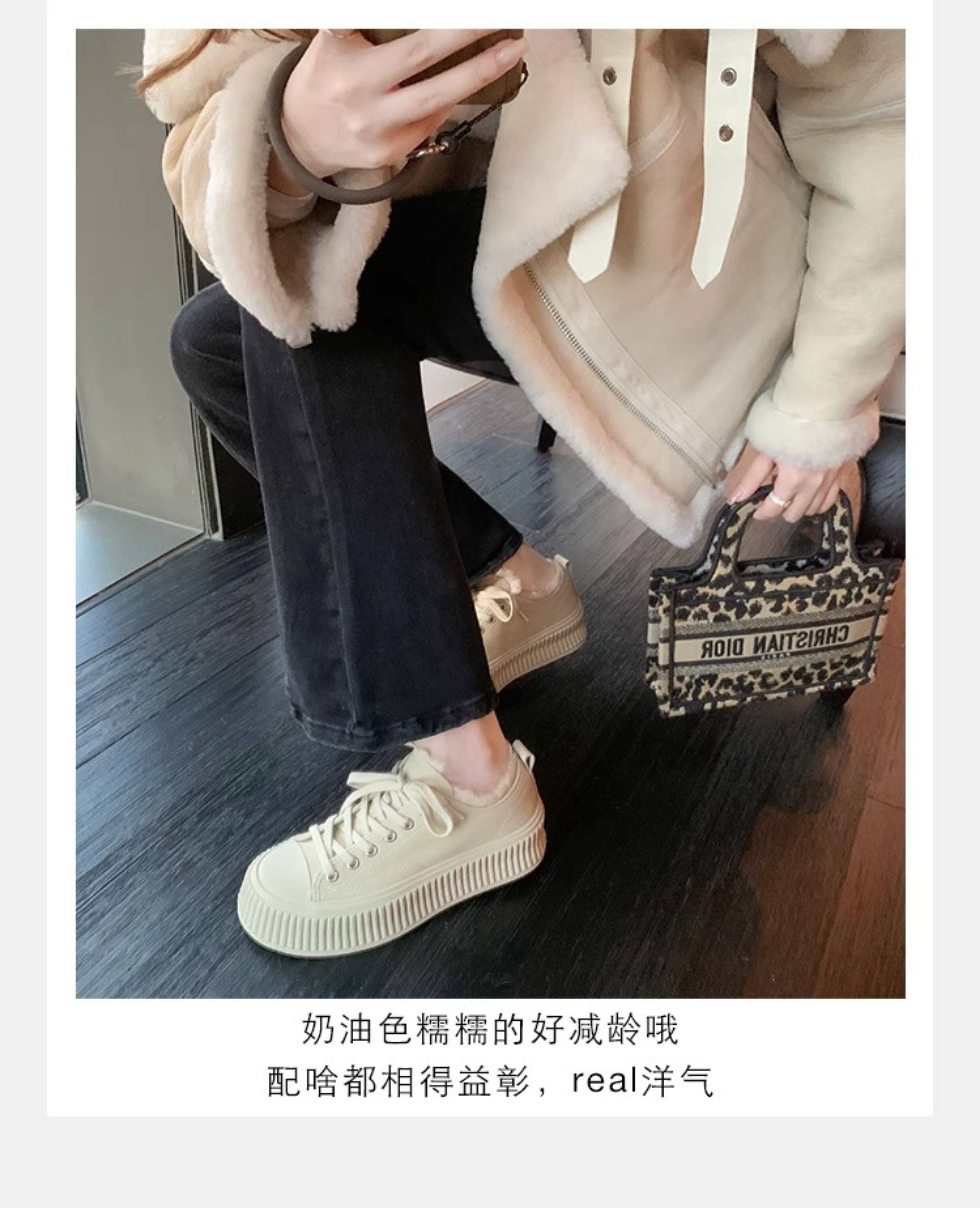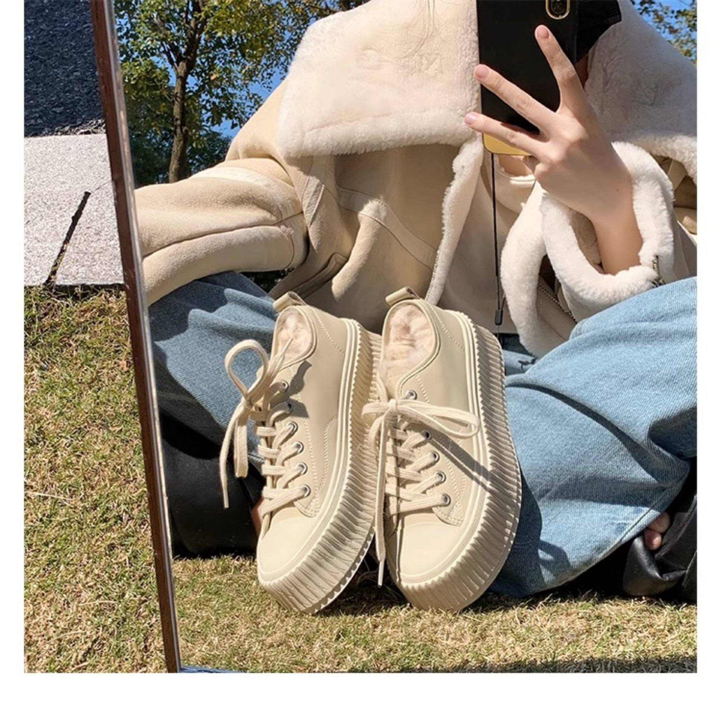 Hong Kong College Style Thick-Soled Furry Shoes for Women 2025 Autumn Fleece-Lined Height-Increasing Casual Sports Biscuit Shoes Genuine Leather Sneakers for Women