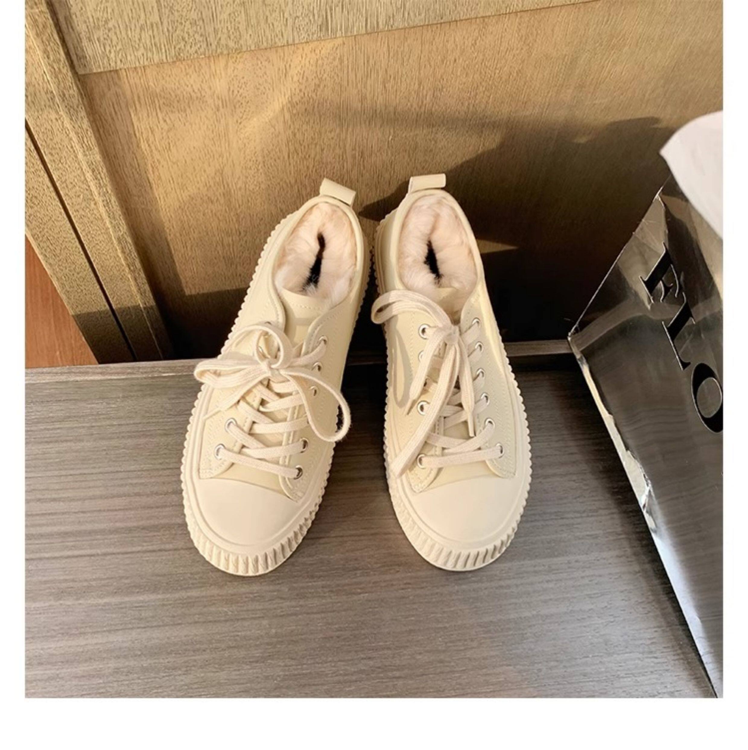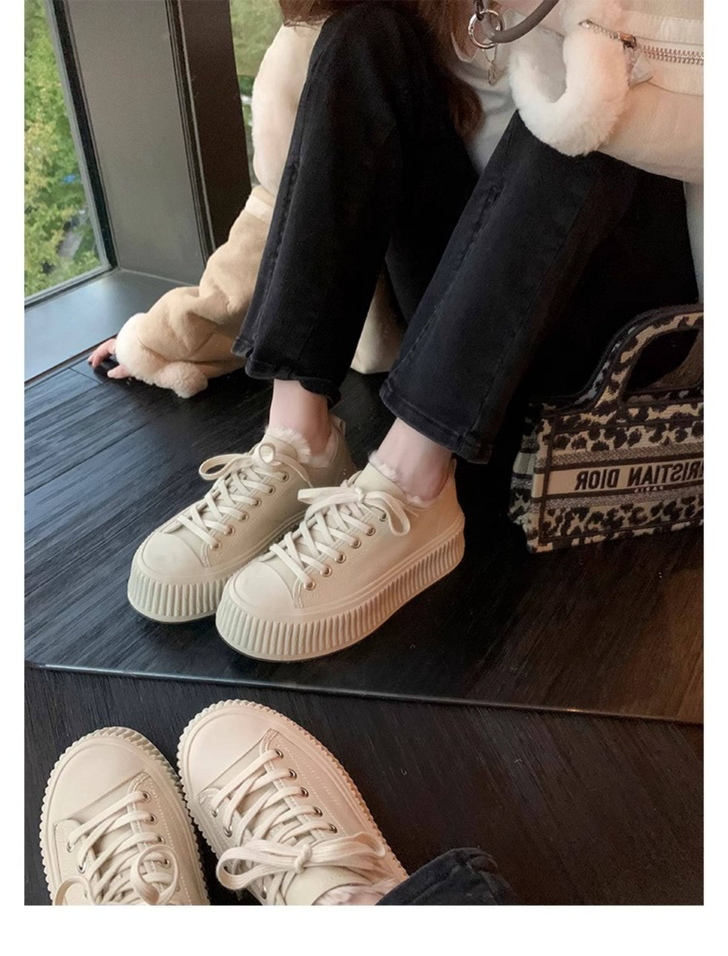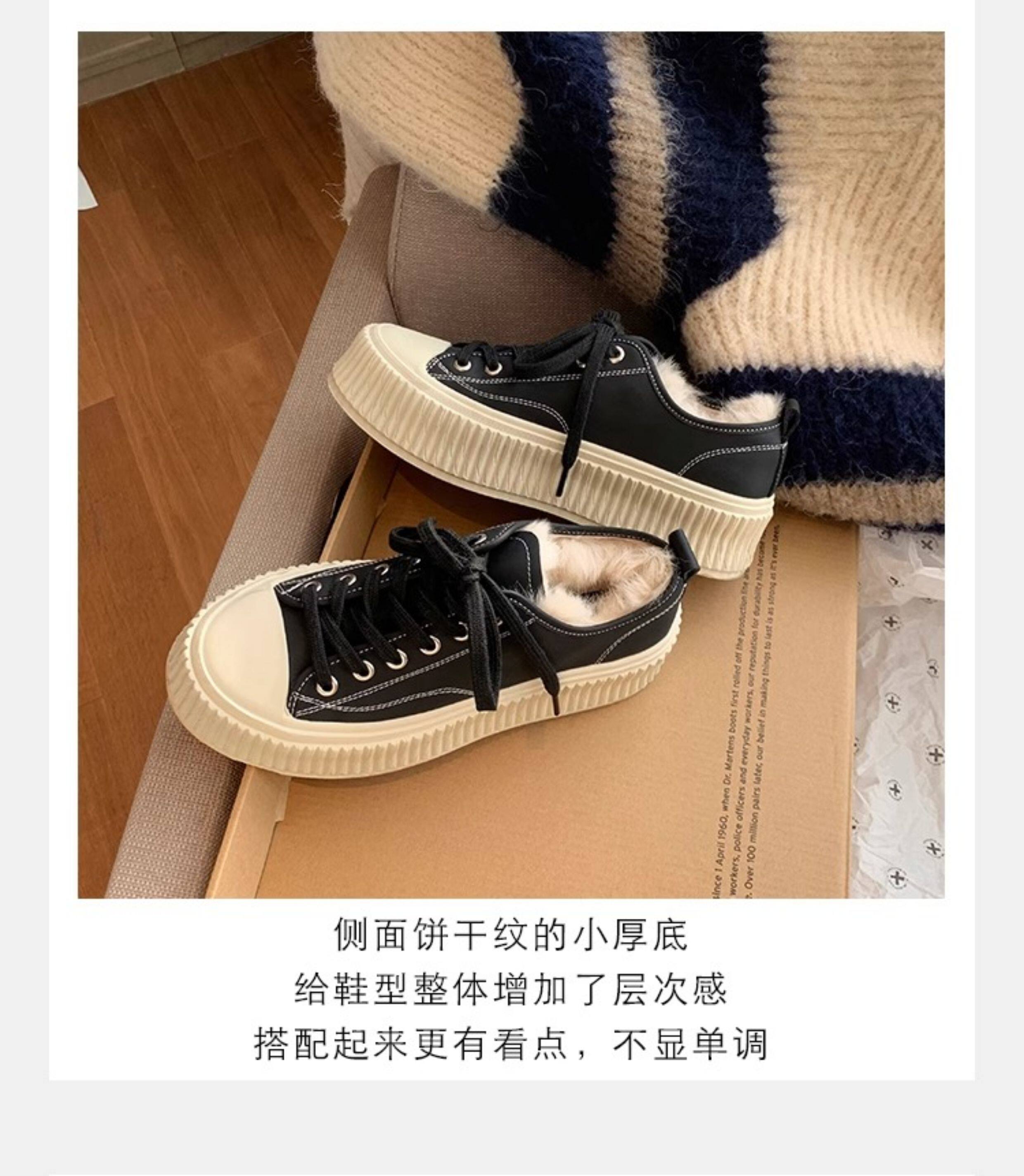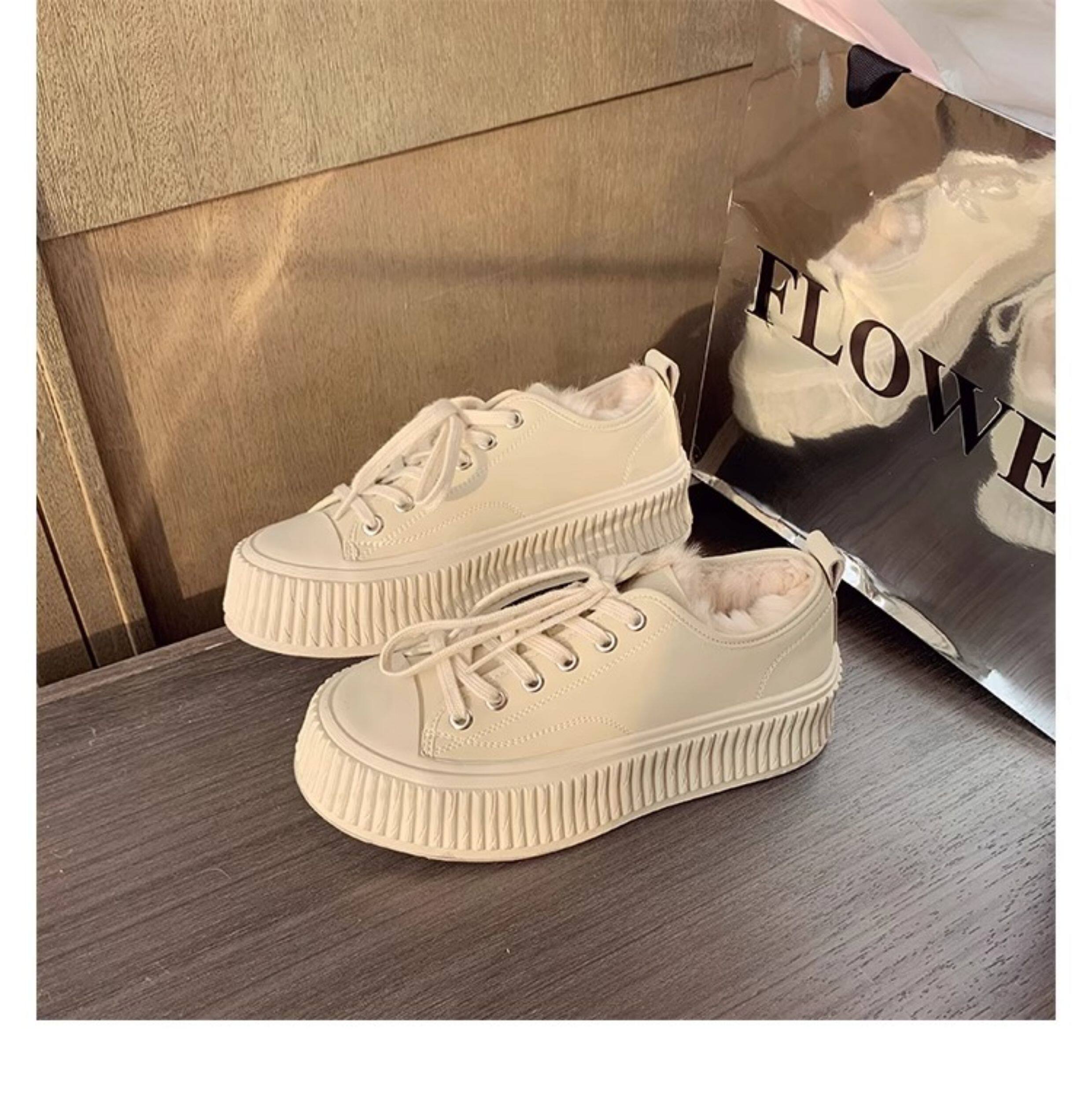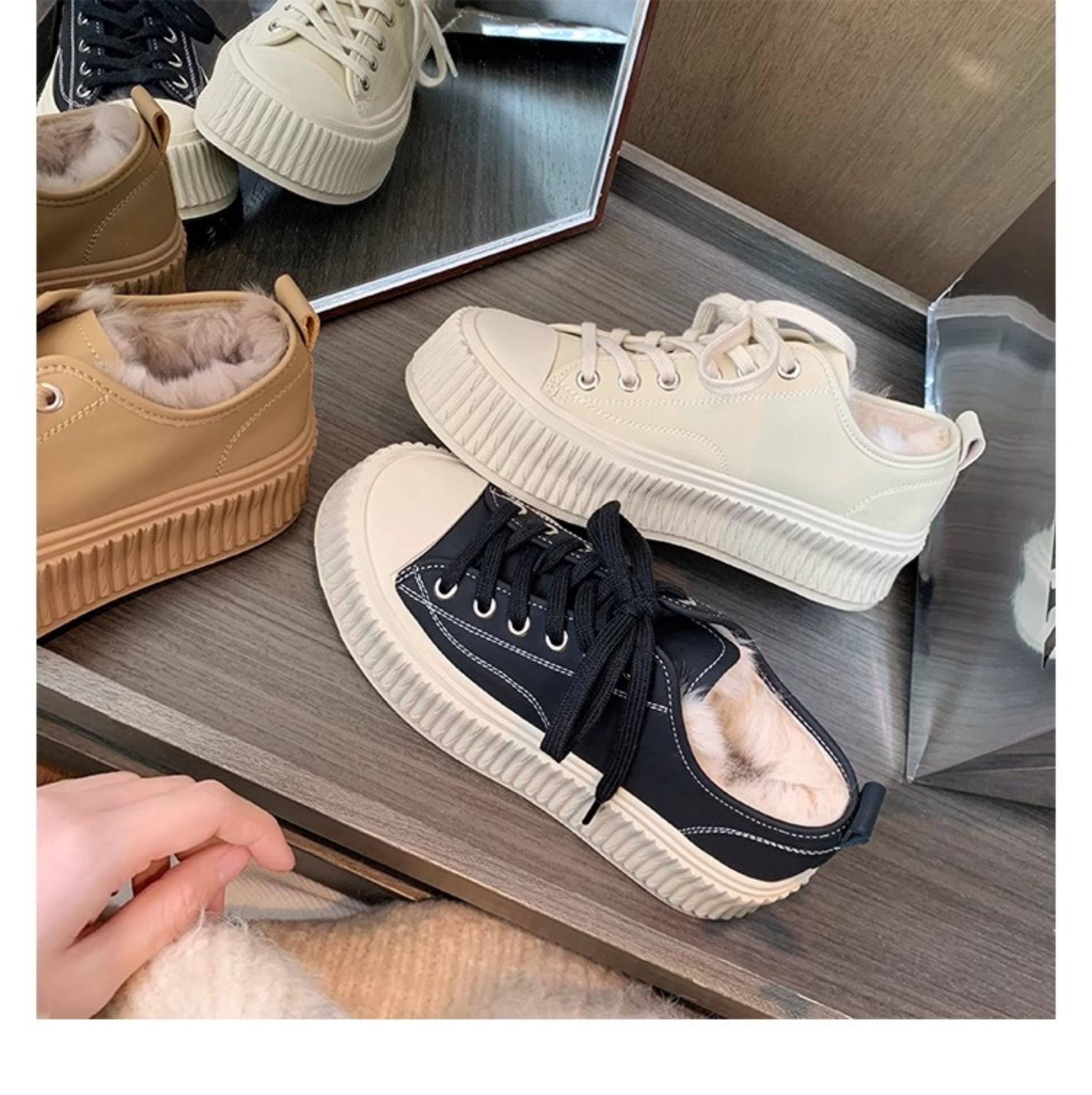 Hong Kong College Style Thick-Soled Furry Shoes for Women 2025 Autumn Fleece-Lined Height-Increasing Casual Sports Biscuit Shoes Genuine Leather Sneakers for Women