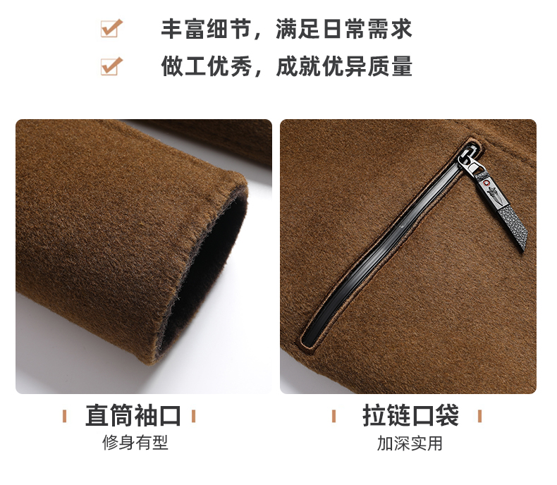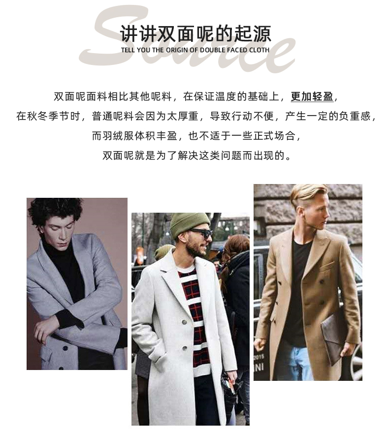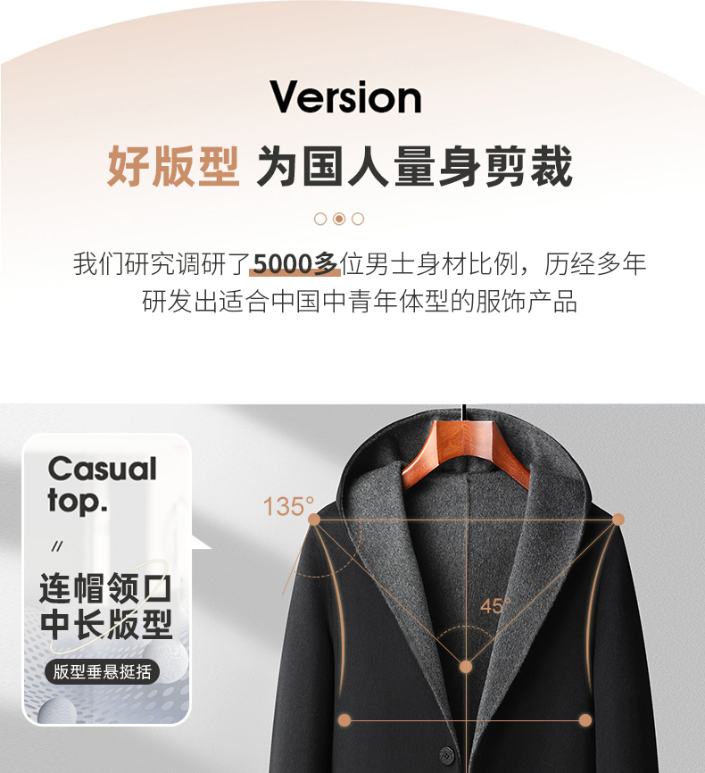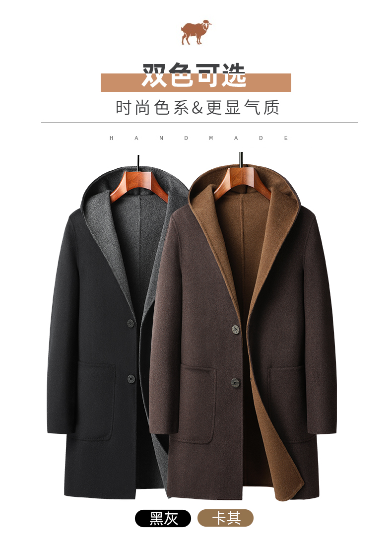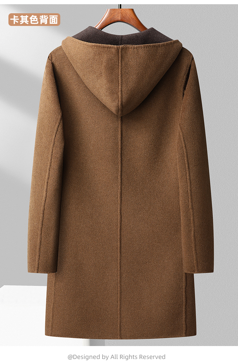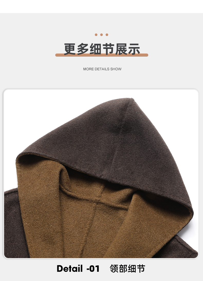 Romon Hooded Woolen Coat for Men, Autumn and Winter Double-Sided Wool Trench Coat, Mid-Length Woolen Casual Reversible Coat