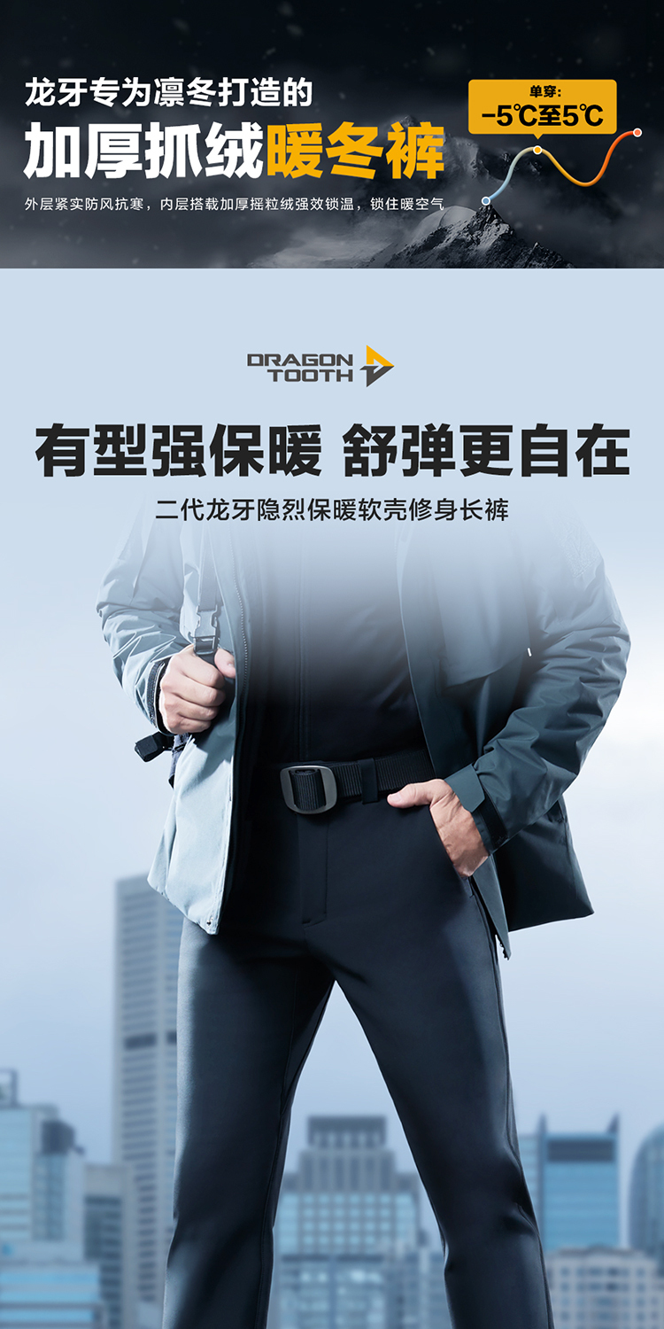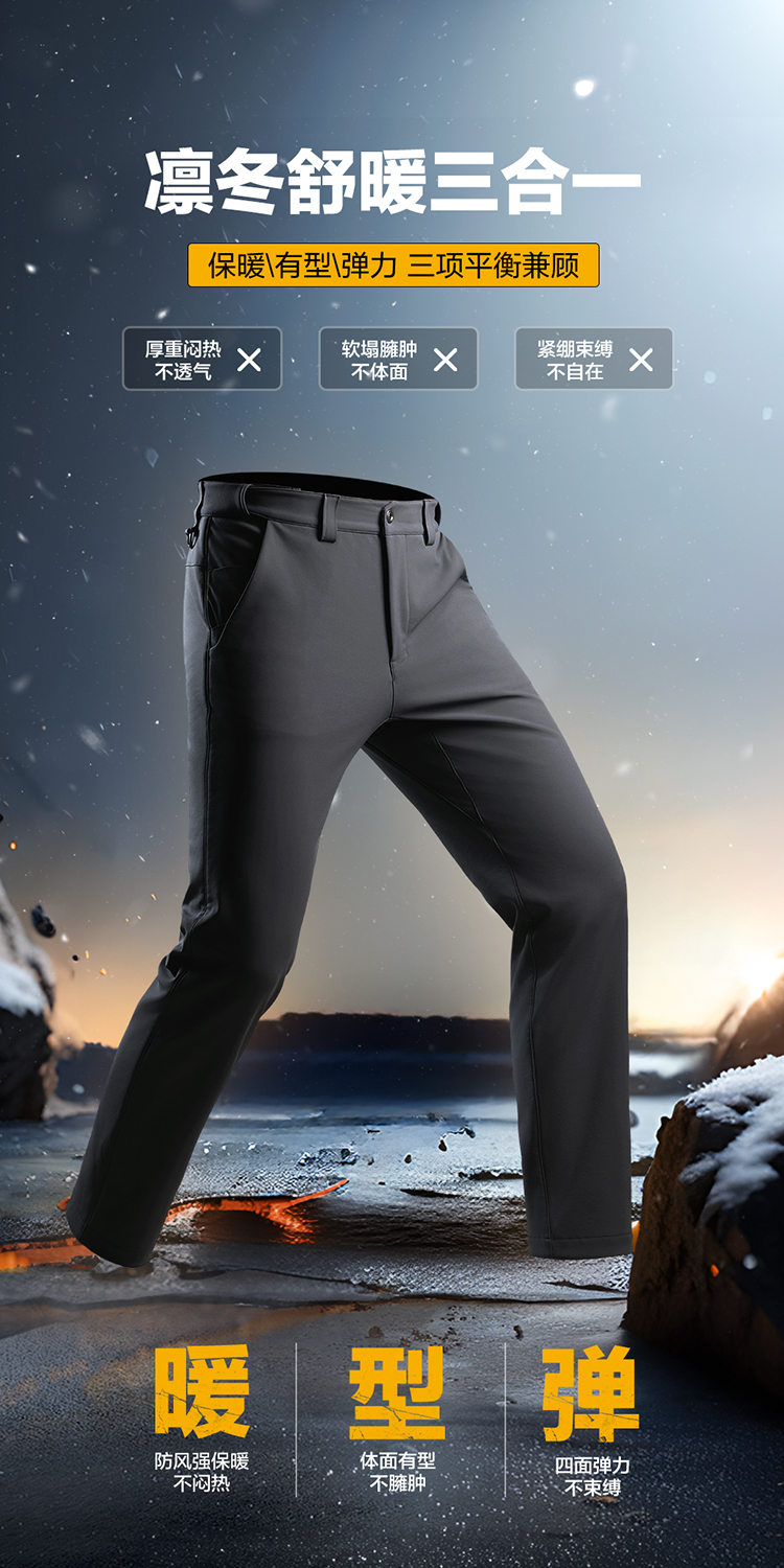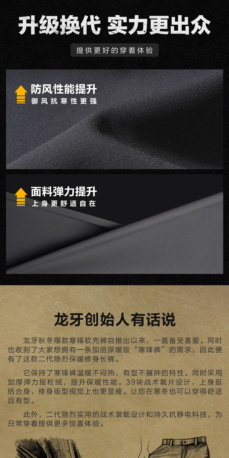 Second-Generation Longya Yinlie Thermal Softshell Pants, Slim-Fit Long Pants, Winter Fleece-Lined, Thickened, Windproof, Warm Pants for Men