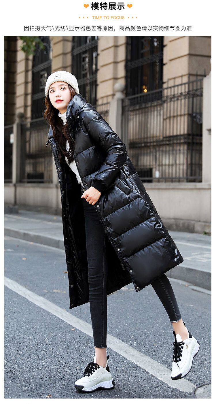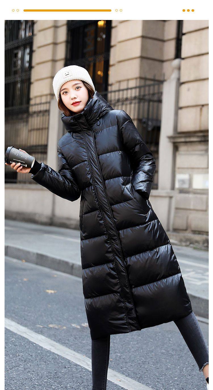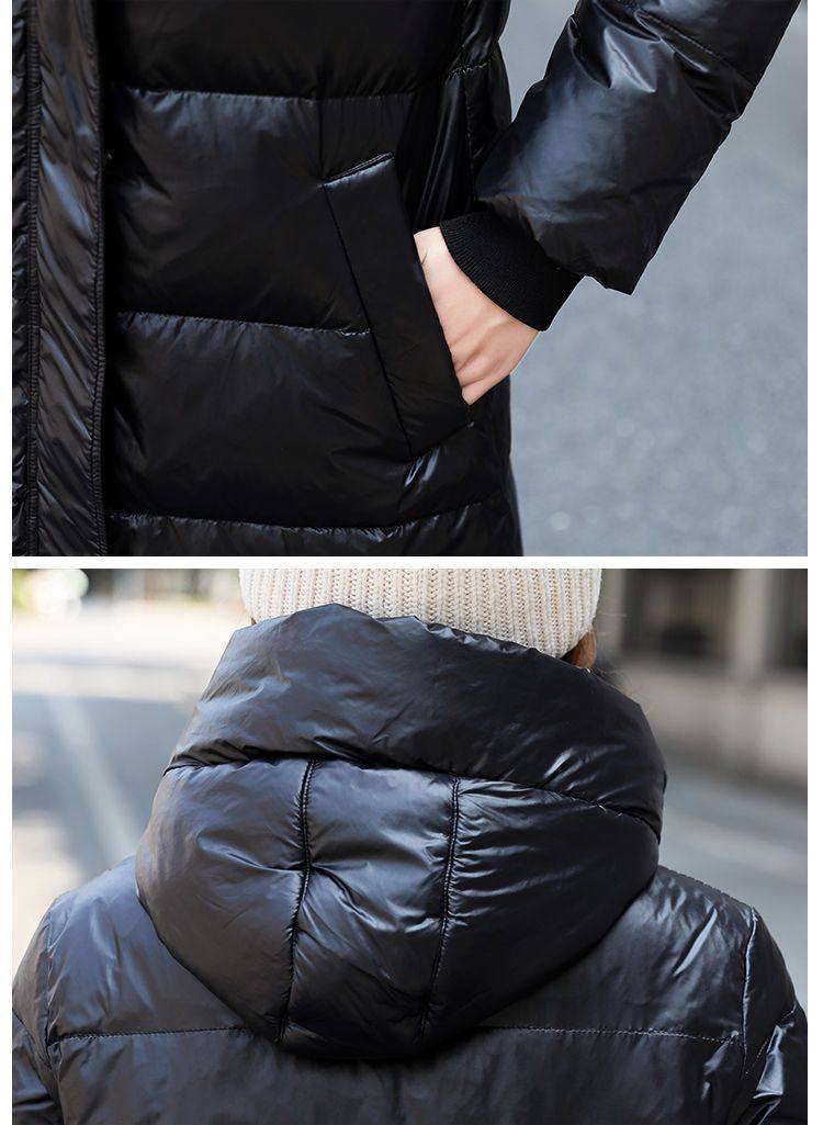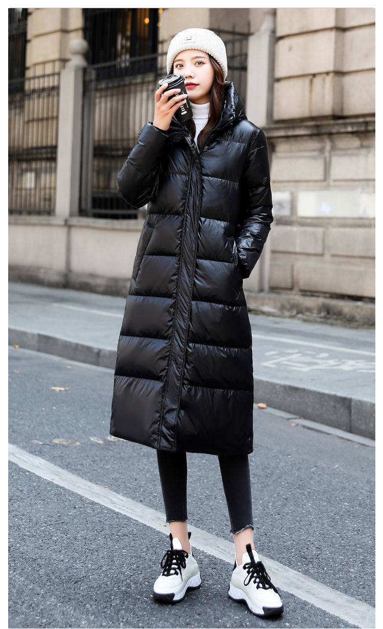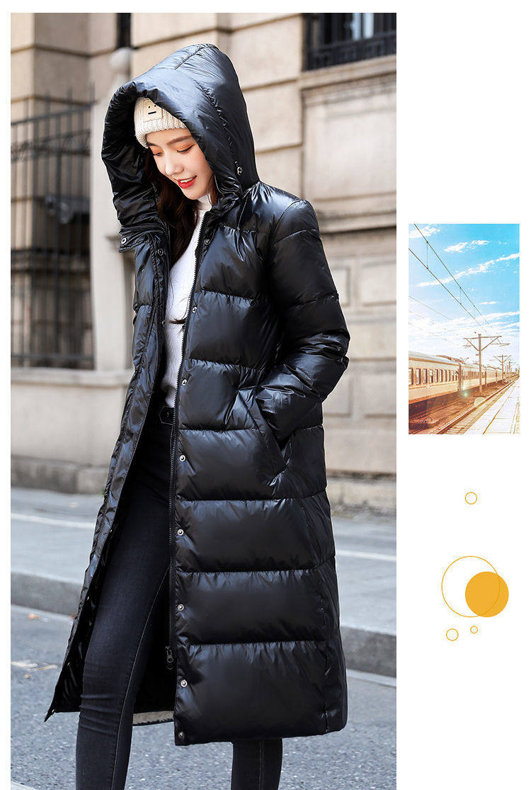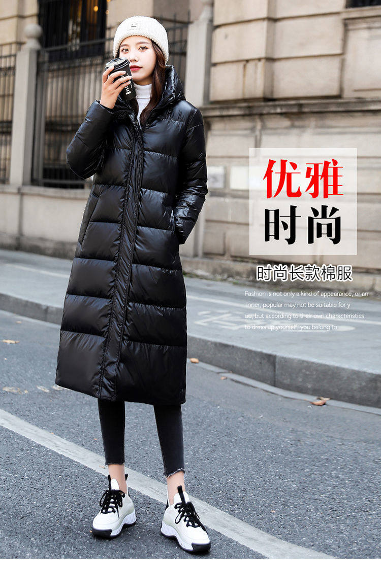 New Winter Black Long Cotton Coat for Women, Thickened, Trendy Glossy Style, ins Trendy Korean Version, Loose Hooded Jacket