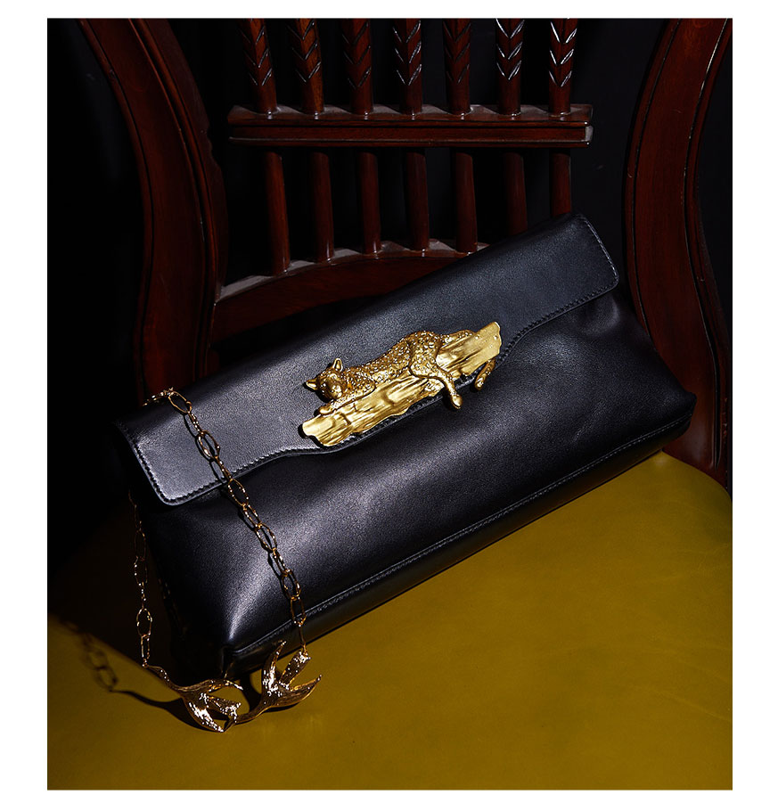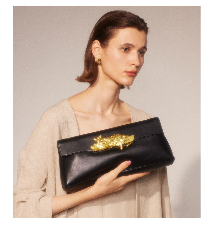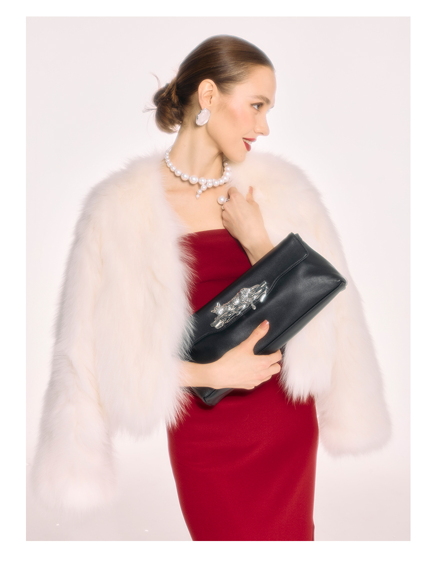 Pinkdrizzle Sheepskin Underarm Bag, Countess Cheetah Clutch, Niche Designer Style