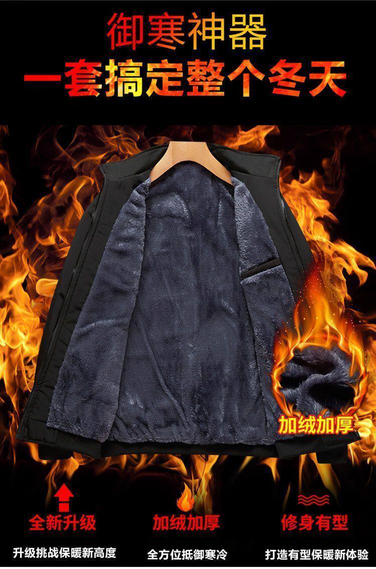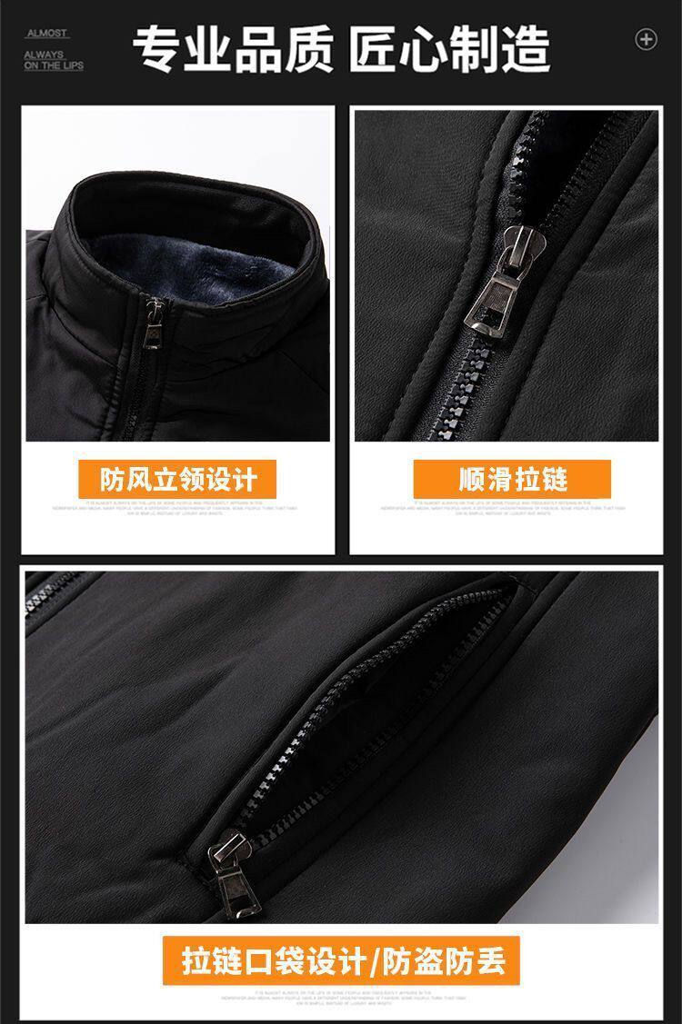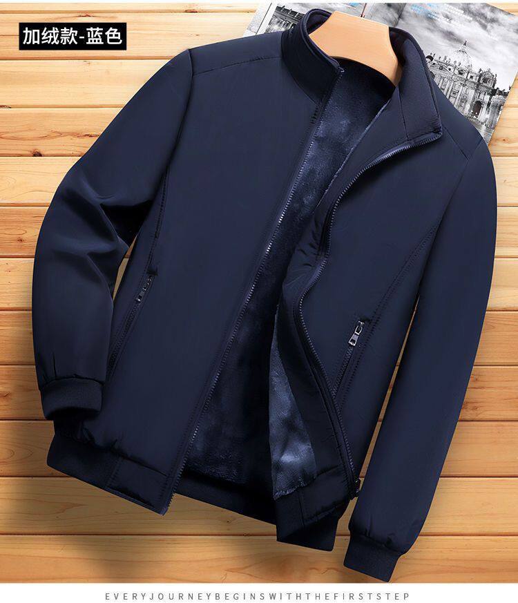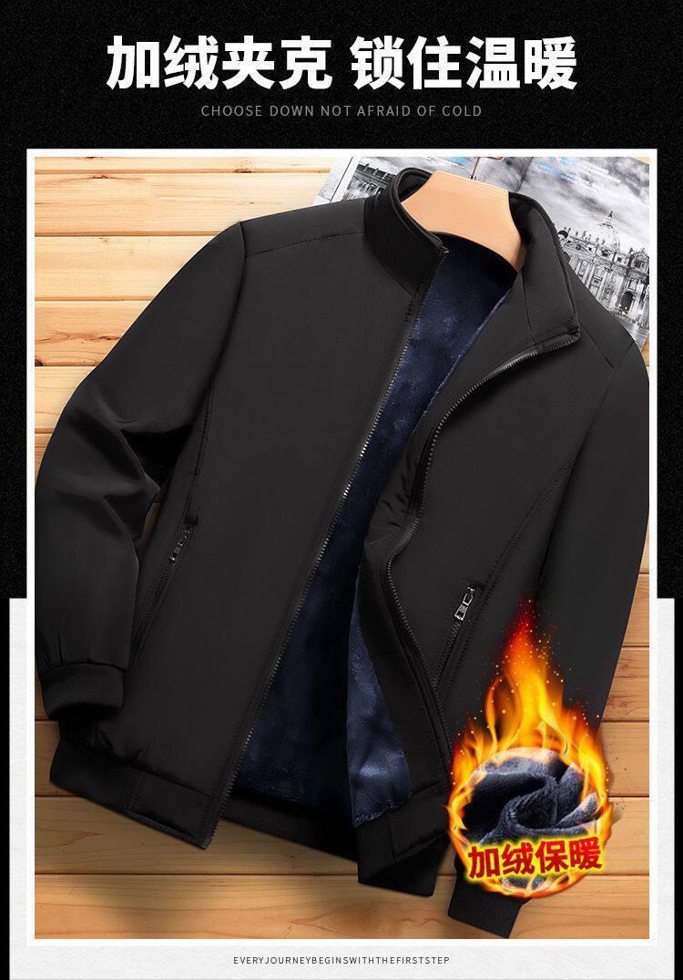 Autumn and Winter Men's Fleece-Lined Thickened Stand-Up Collar Jacket, Middle-Aged and Elderly Dad's Trendy Casual Simple Coat, Warm Clothing