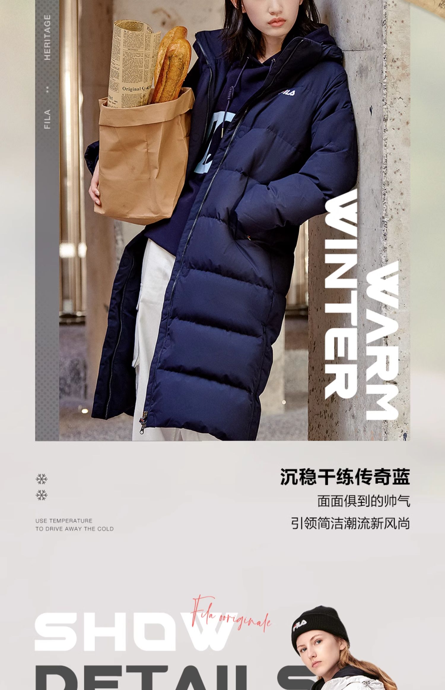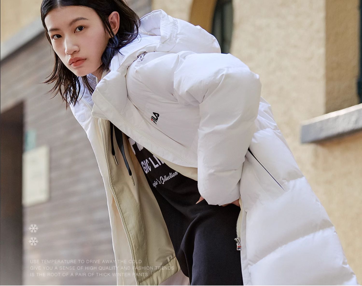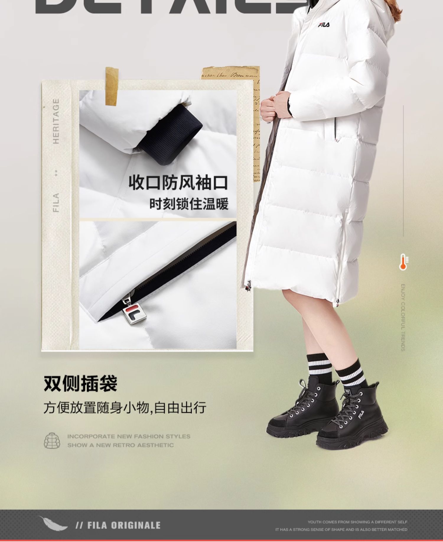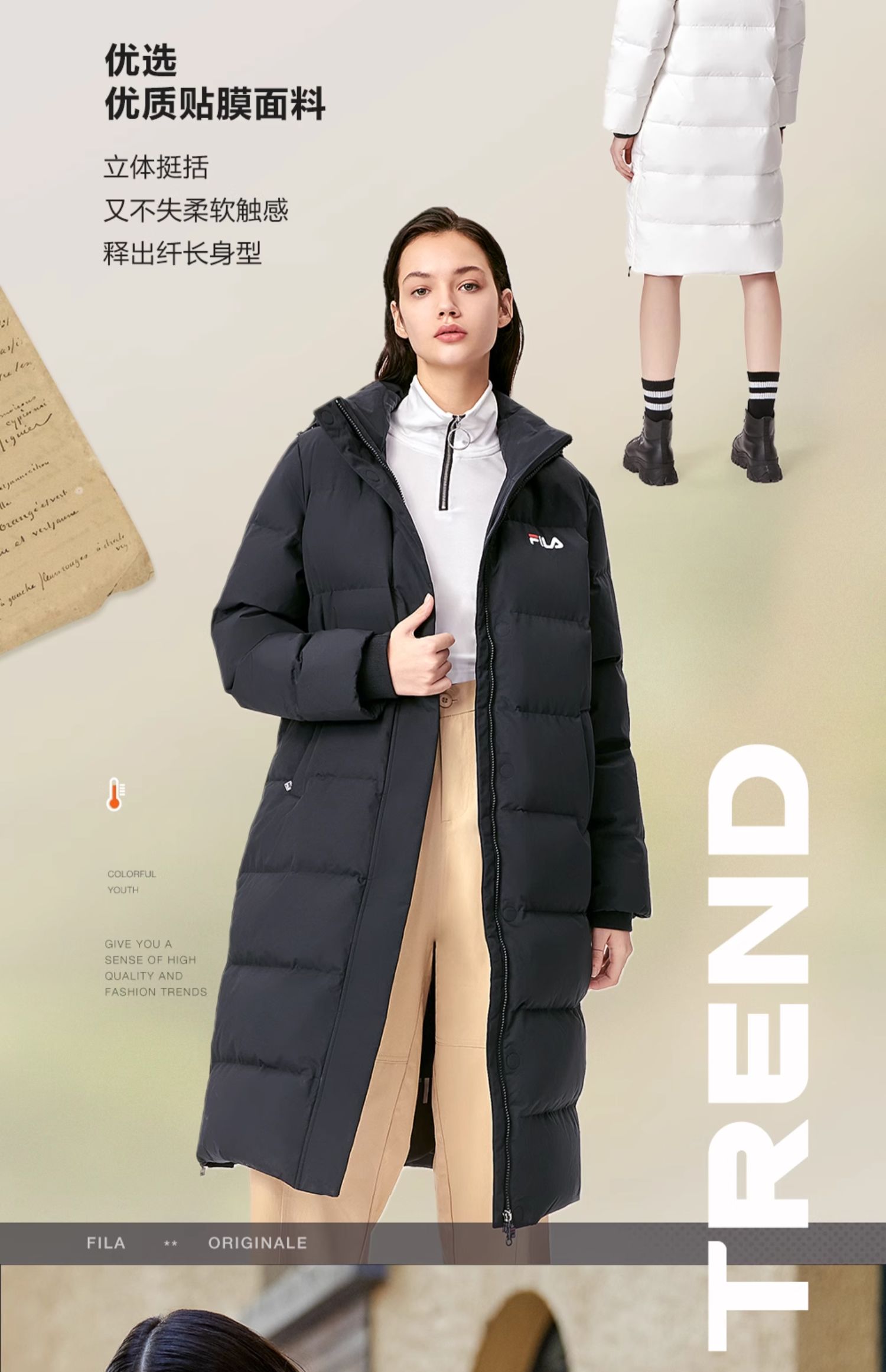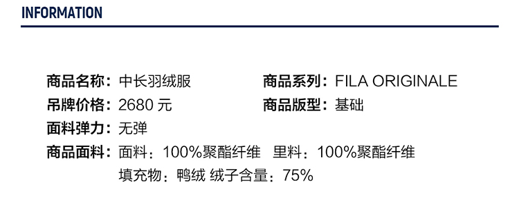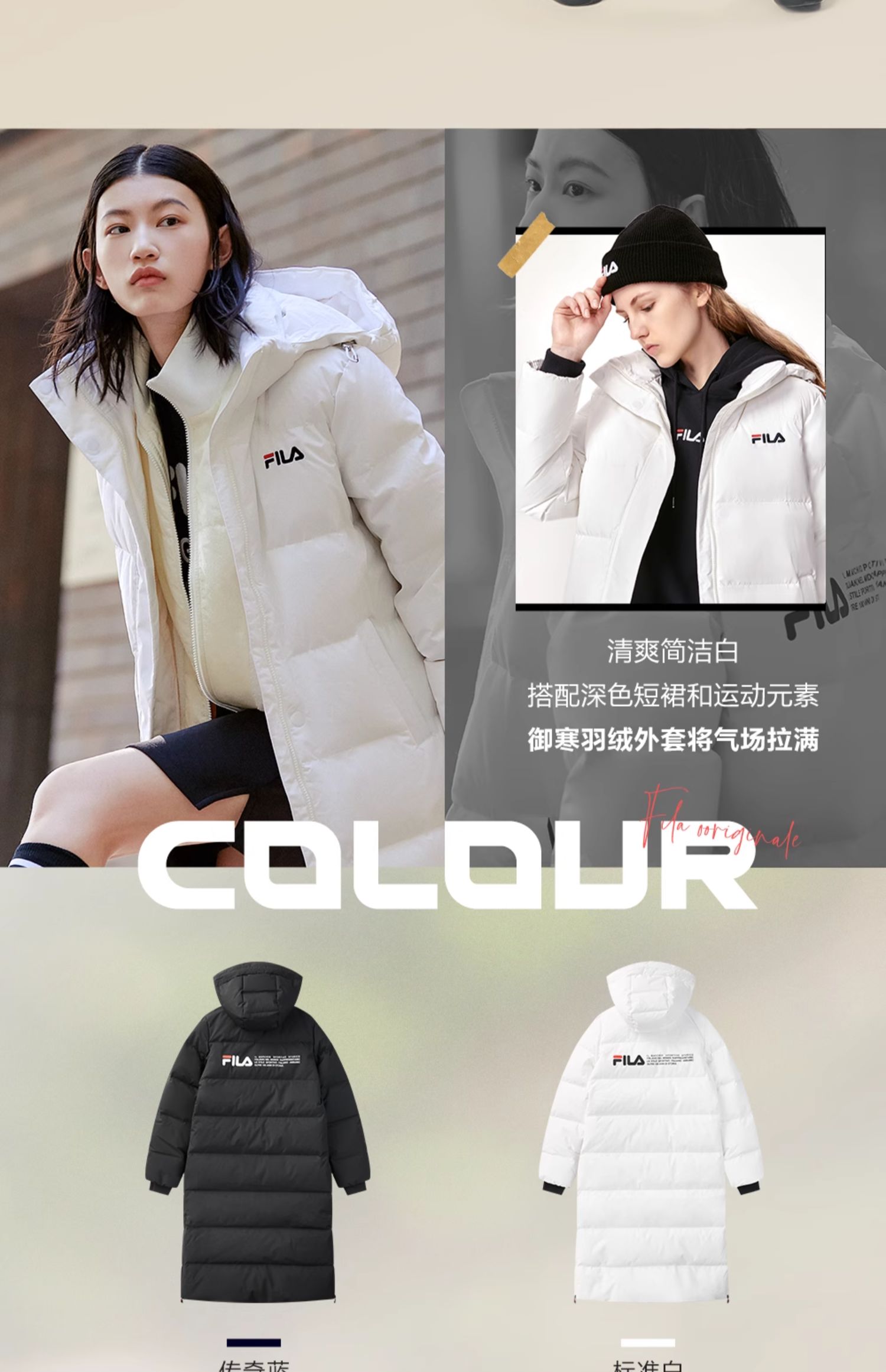 Fila Official Women's down Jacket Winter Sports Fashion Warm Duck down Mid-Length Cotton down Hooded Jacket