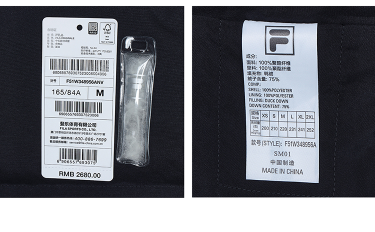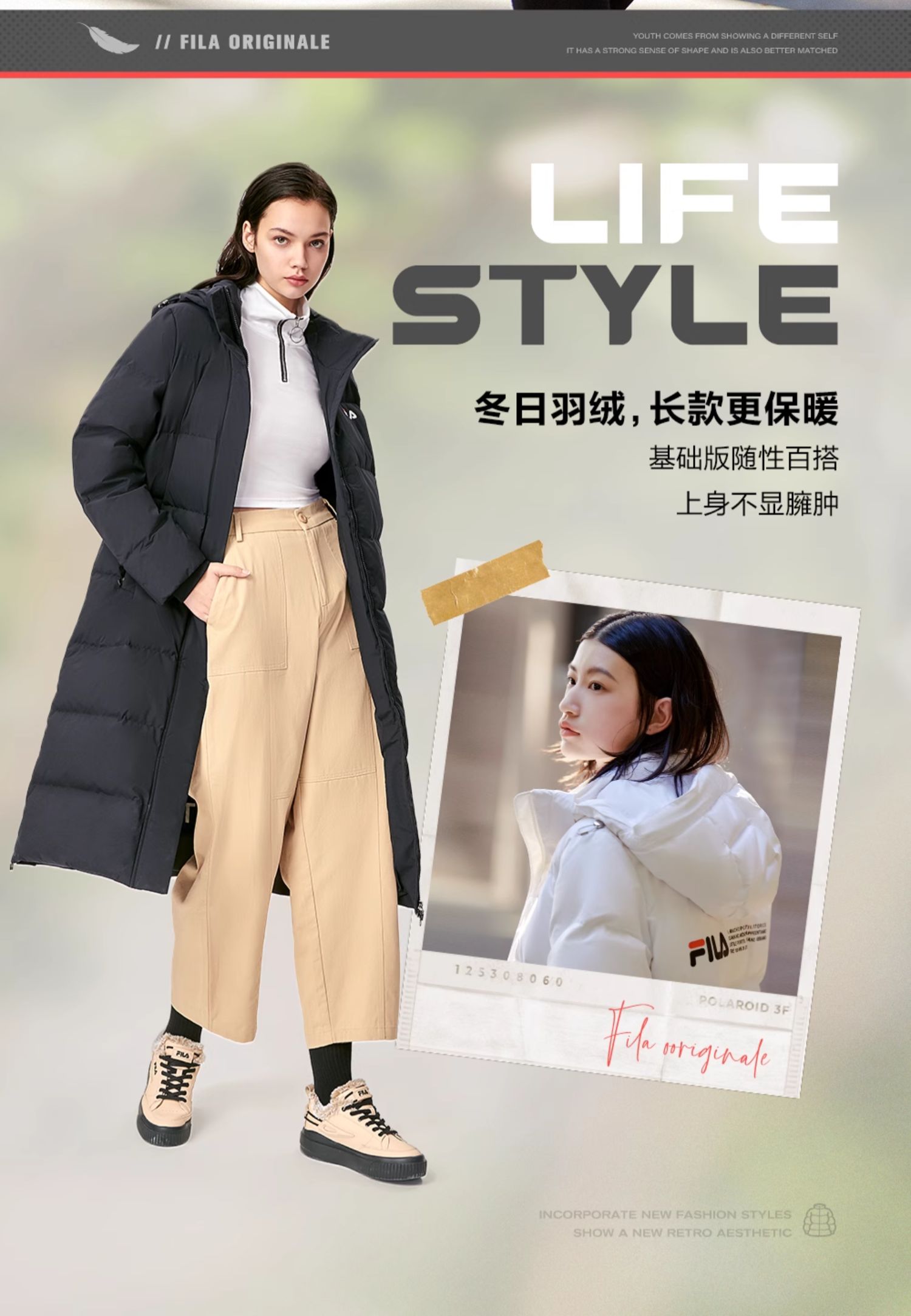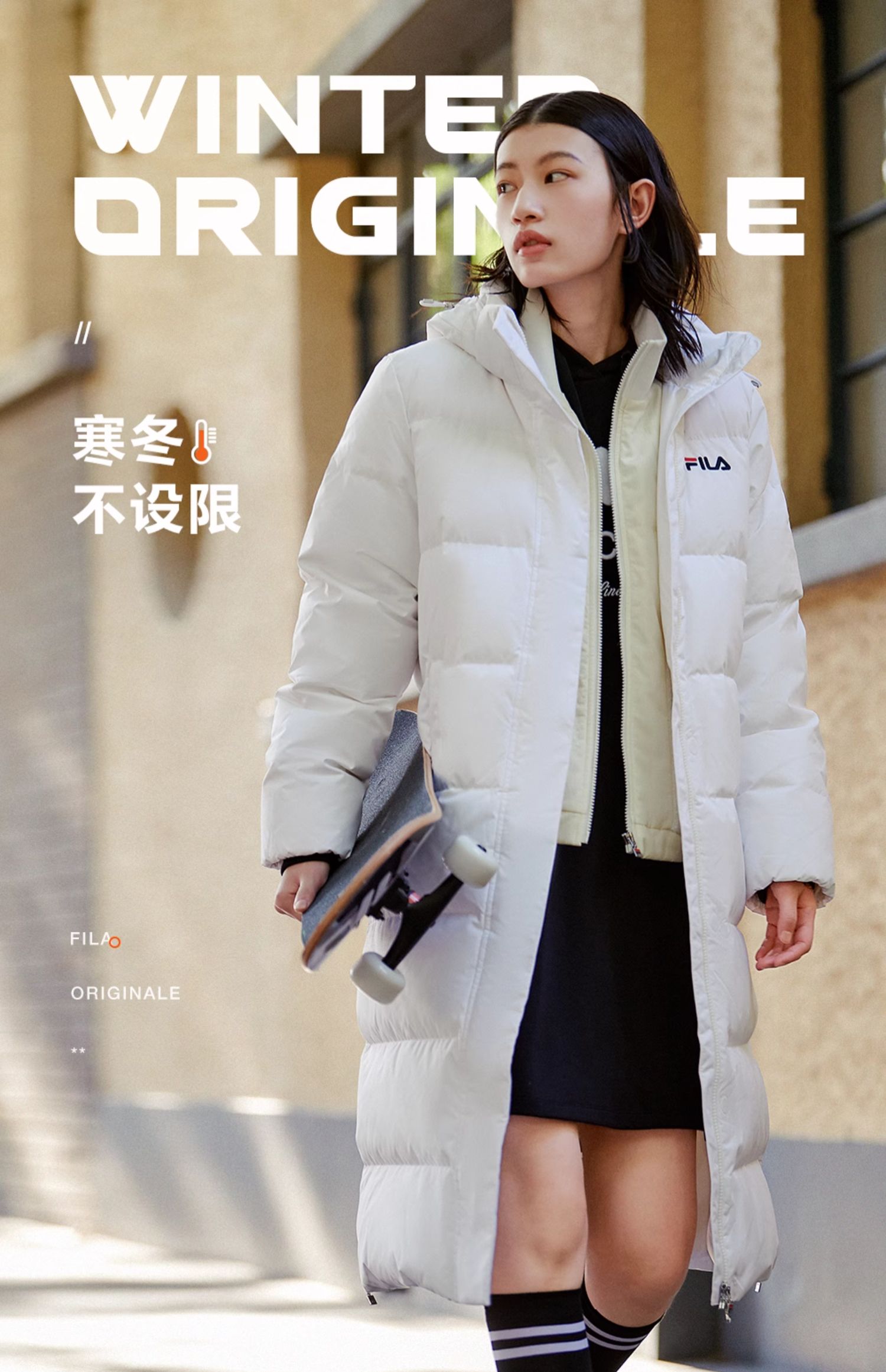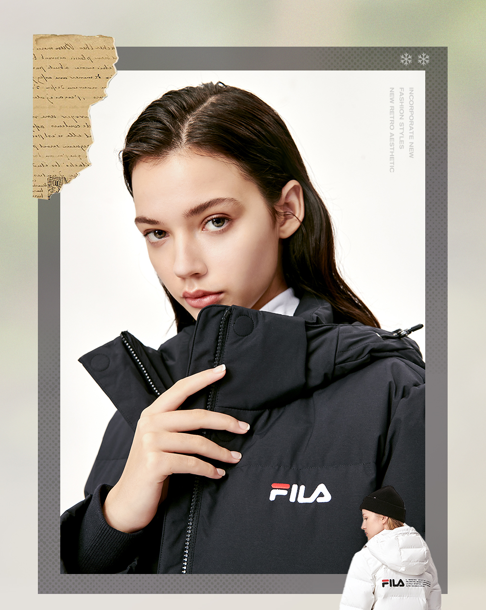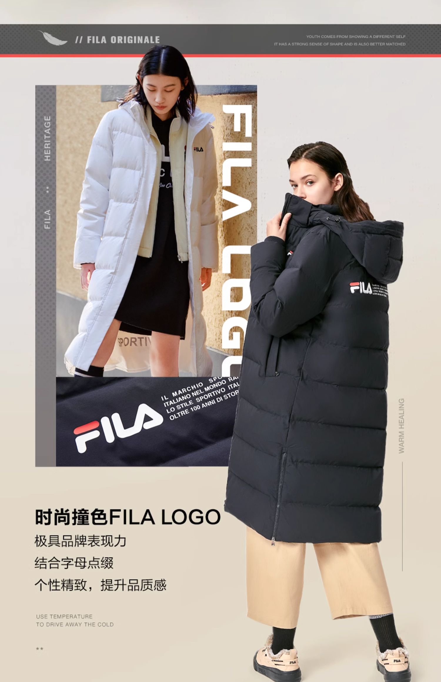 Fila Official Women's down Jacket Winter Sports Fashion Warm Duck down Mid-Length Cotton down Hooded Jacket