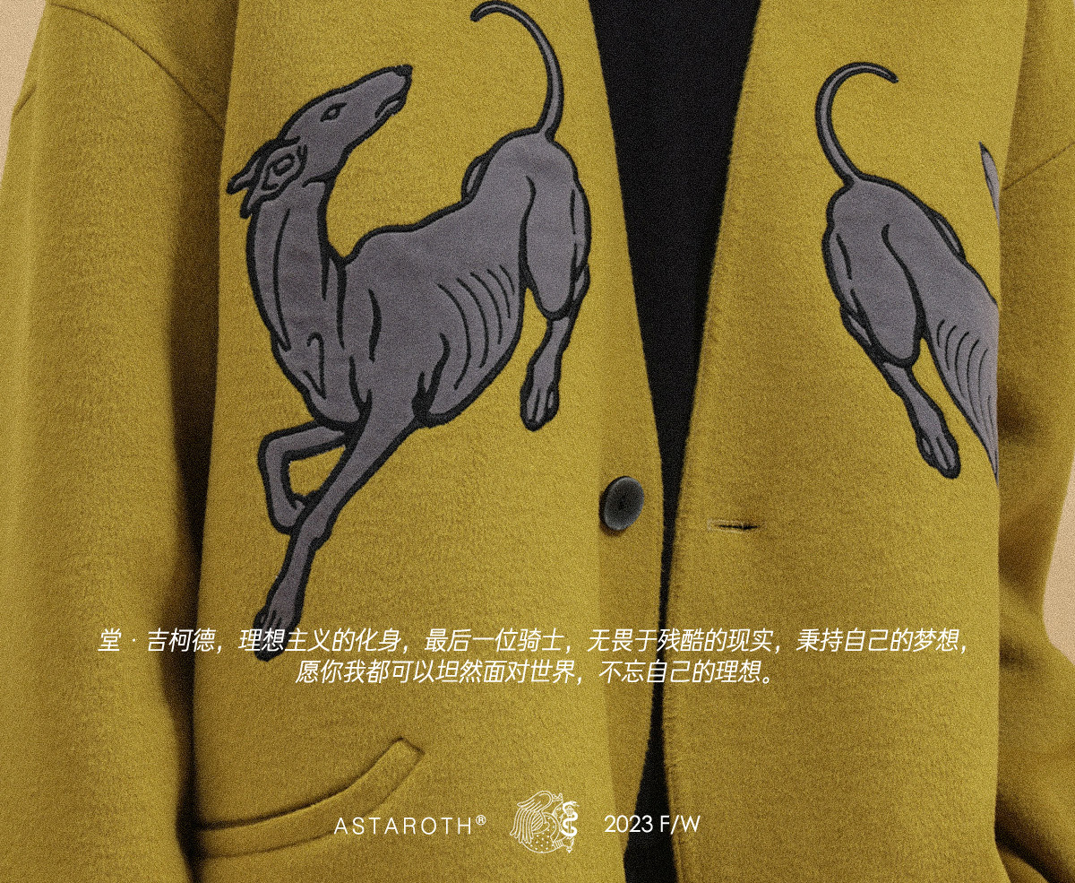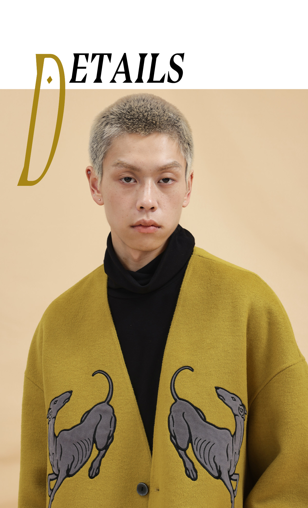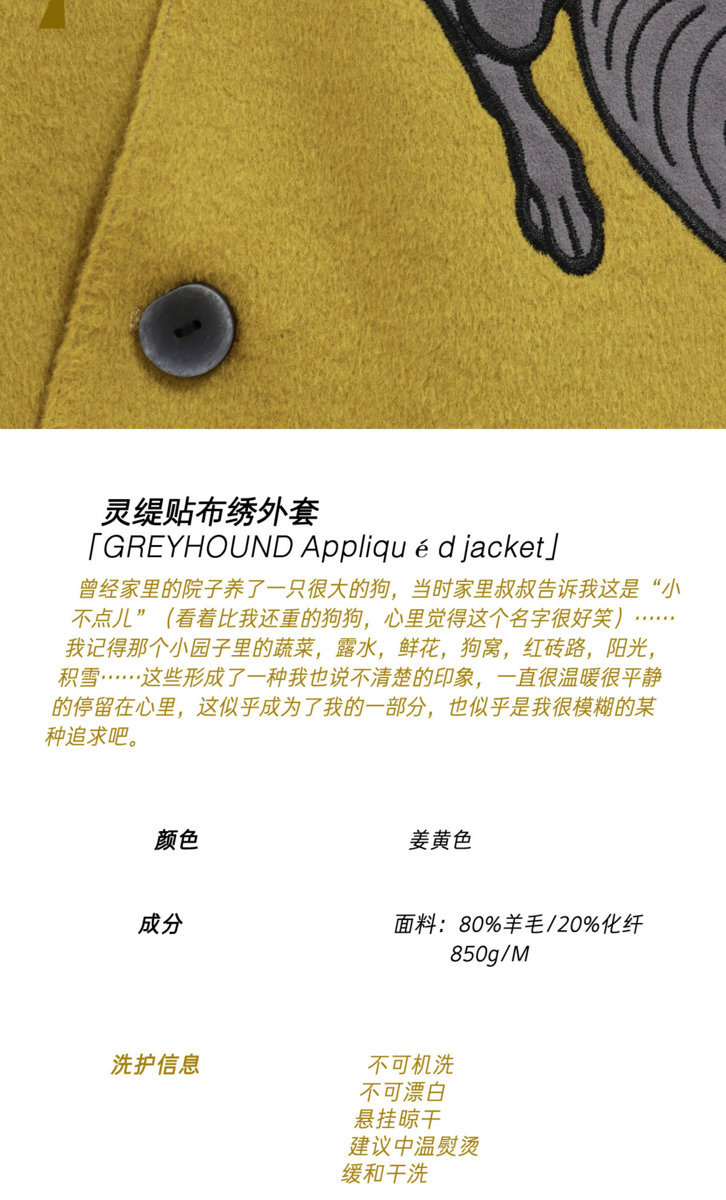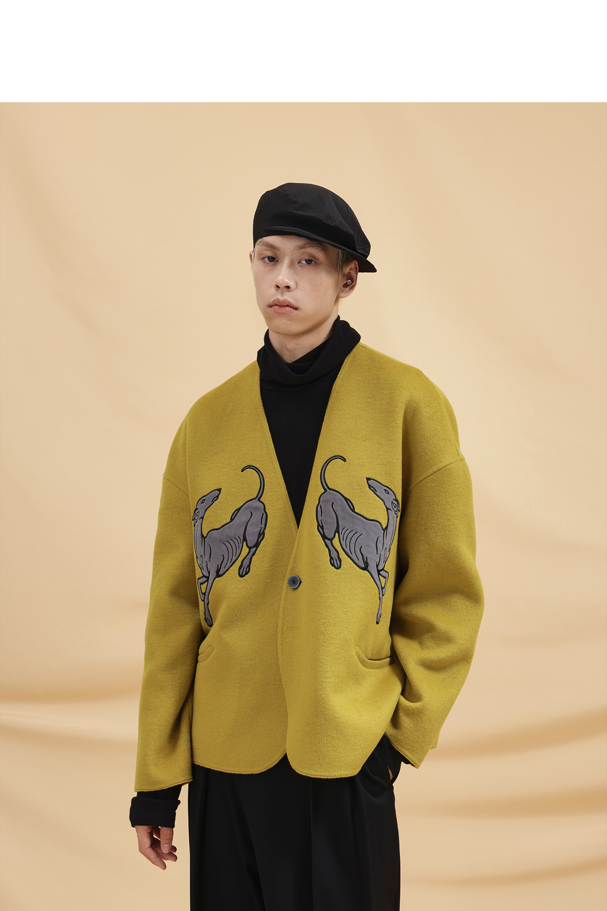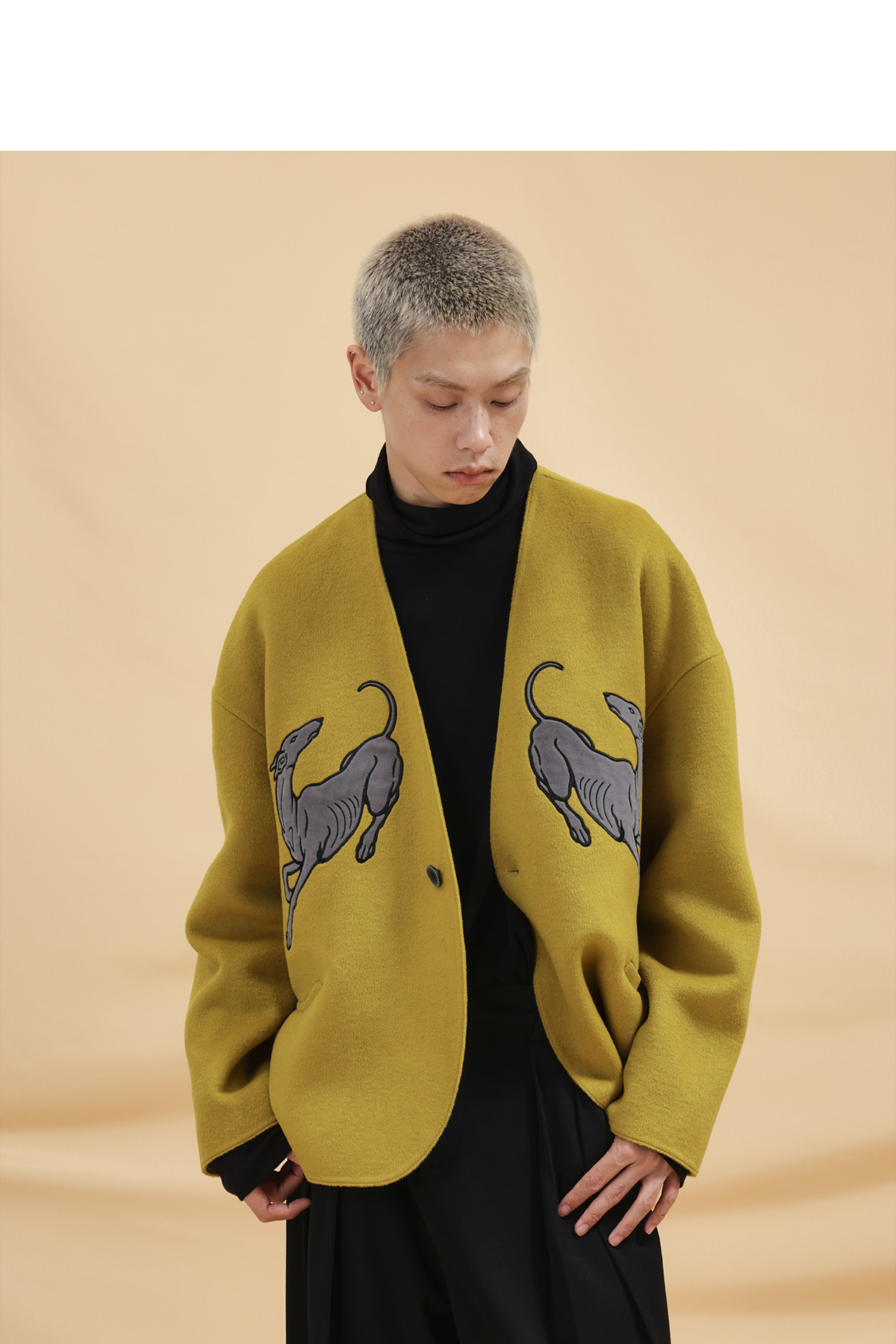 Astaroth Woolen Short Coat Ginger Yellow Dog Embroidery Collarless Coat Double-Sided Wool Retro Original Designer