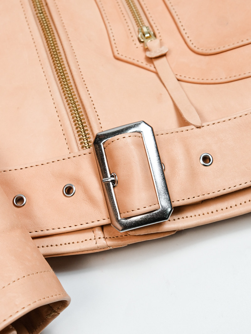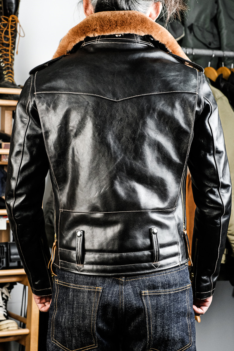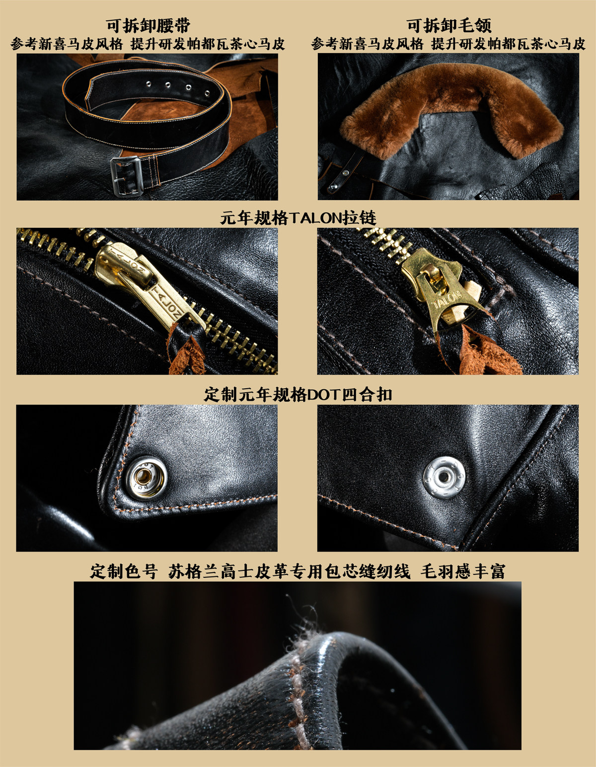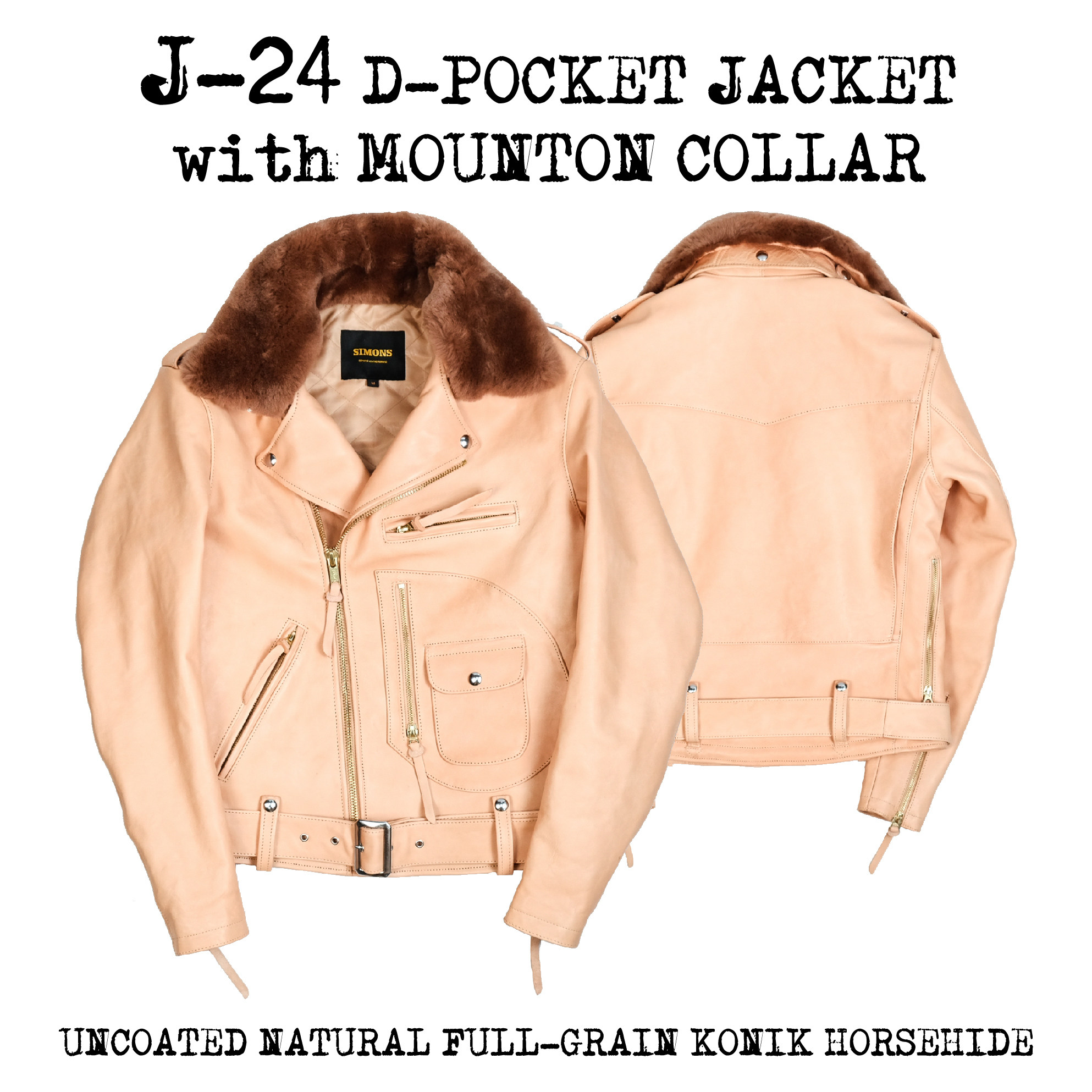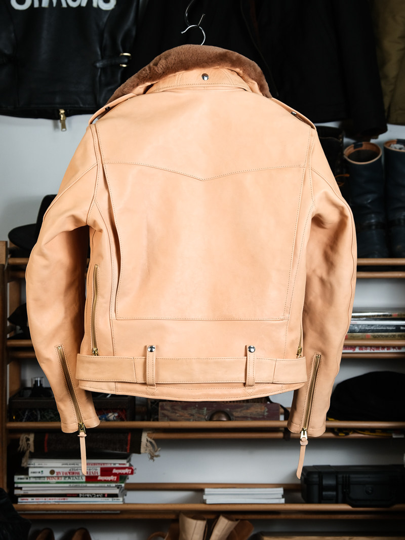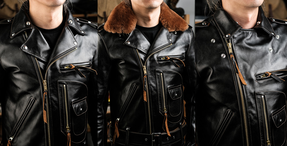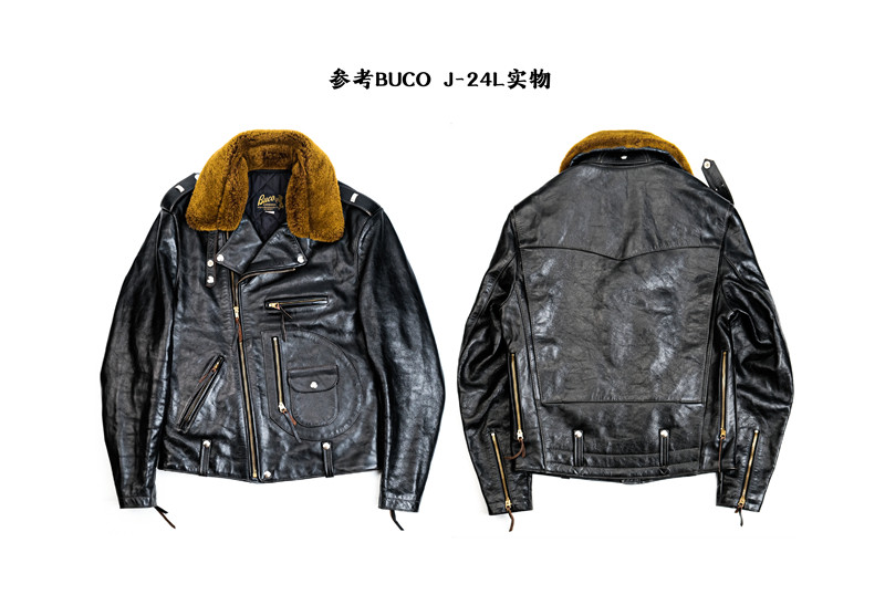 J24L Detachable Fur Collar Belt Complete Set, Parado Oil-Waxed Tea-Colored Horse Leather, Soft and Thick, Talon Zipper, Buco