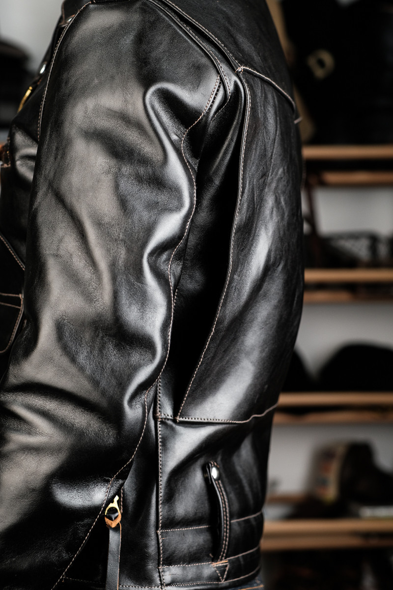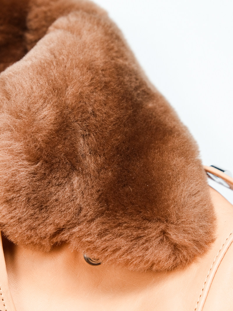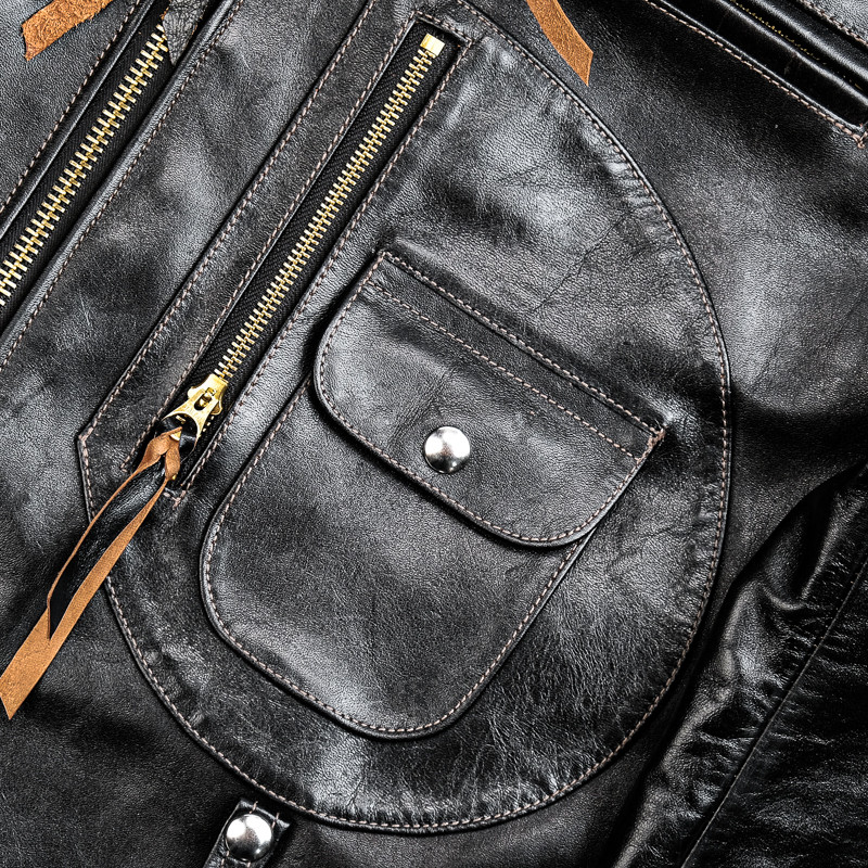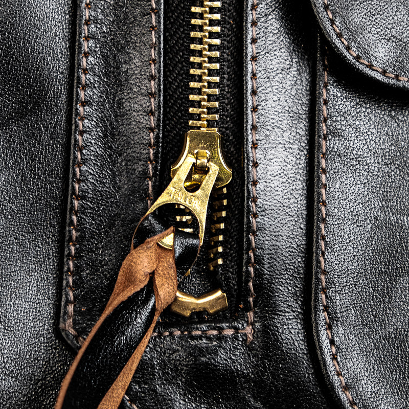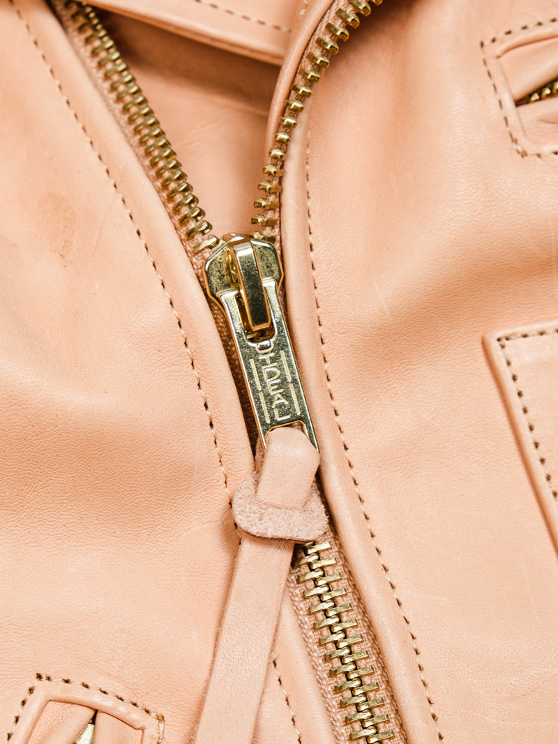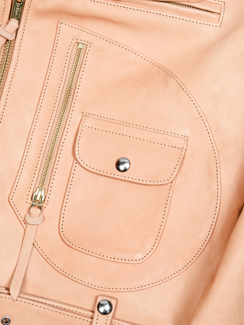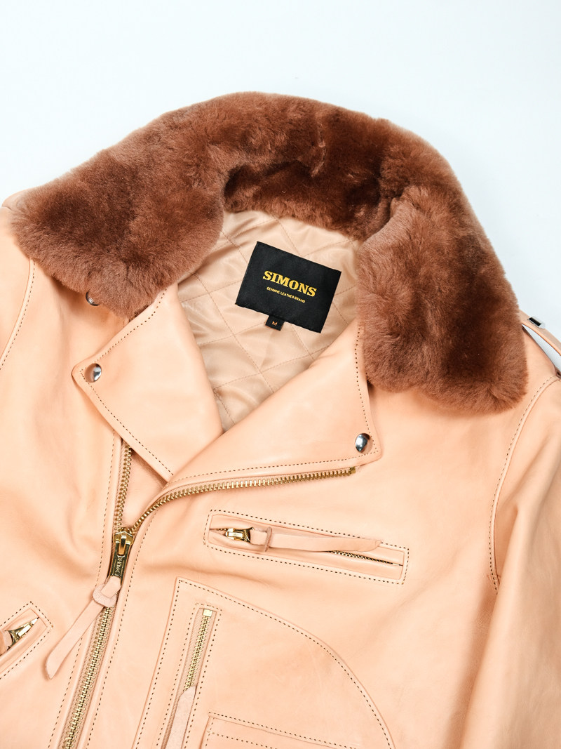 J24L Detachable Fur Collar Belt Complete Set, Parado Oil-Waxed Tea-Colored Horse Leather, Soft and Thick, Talon Zipper, Buco