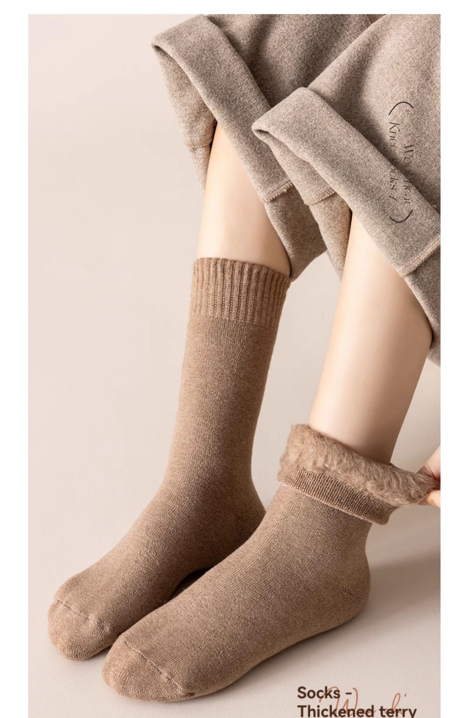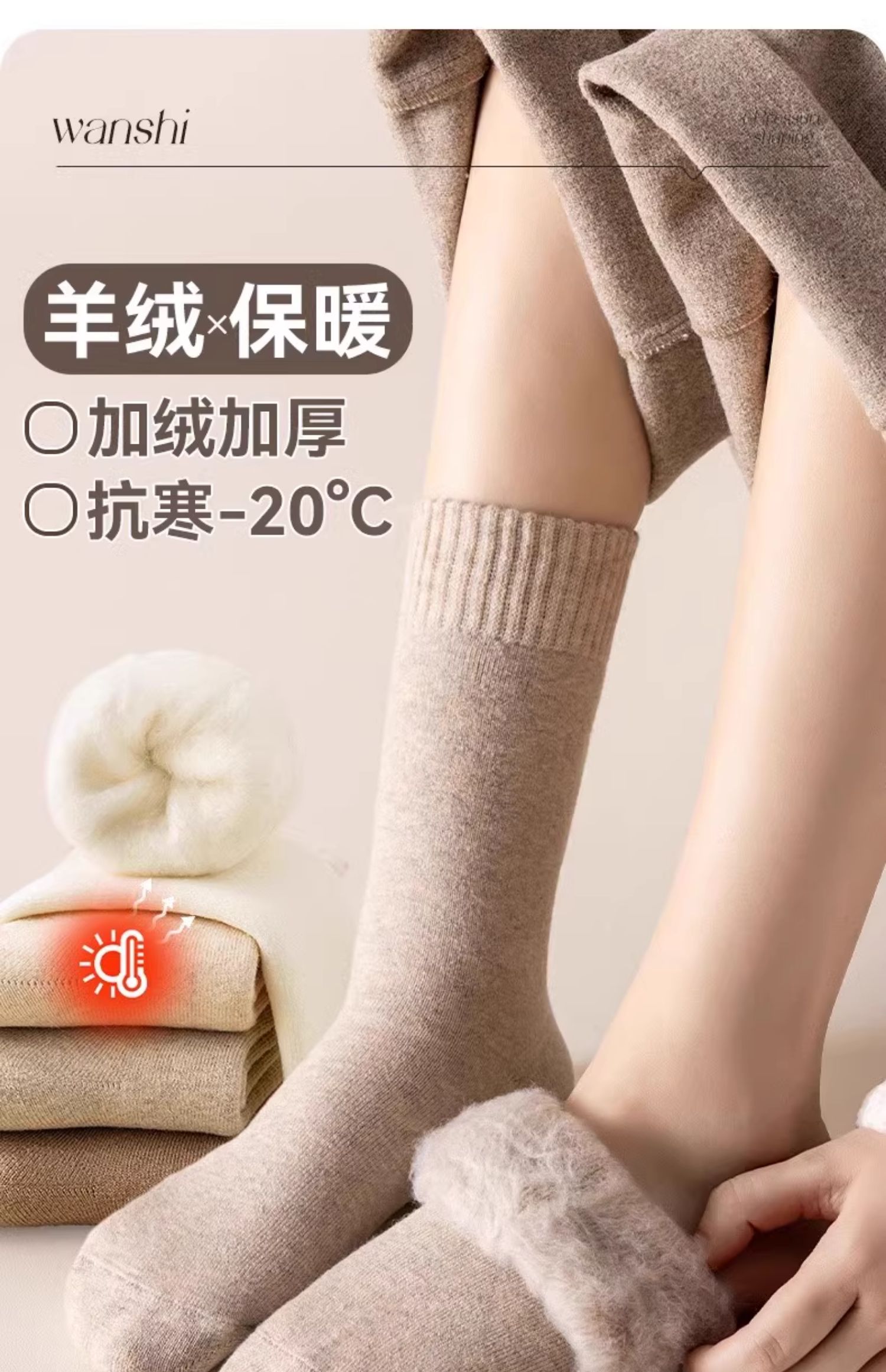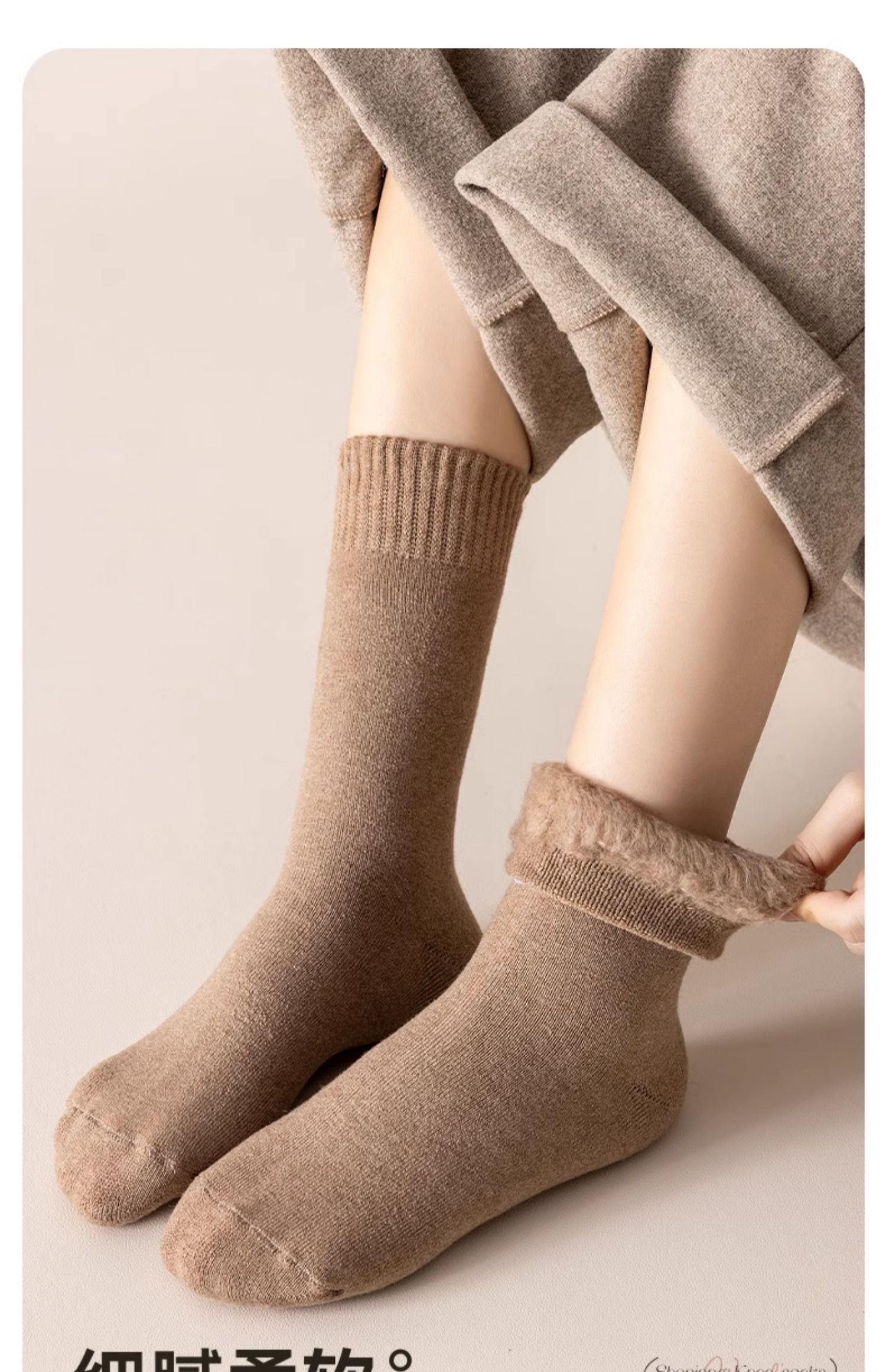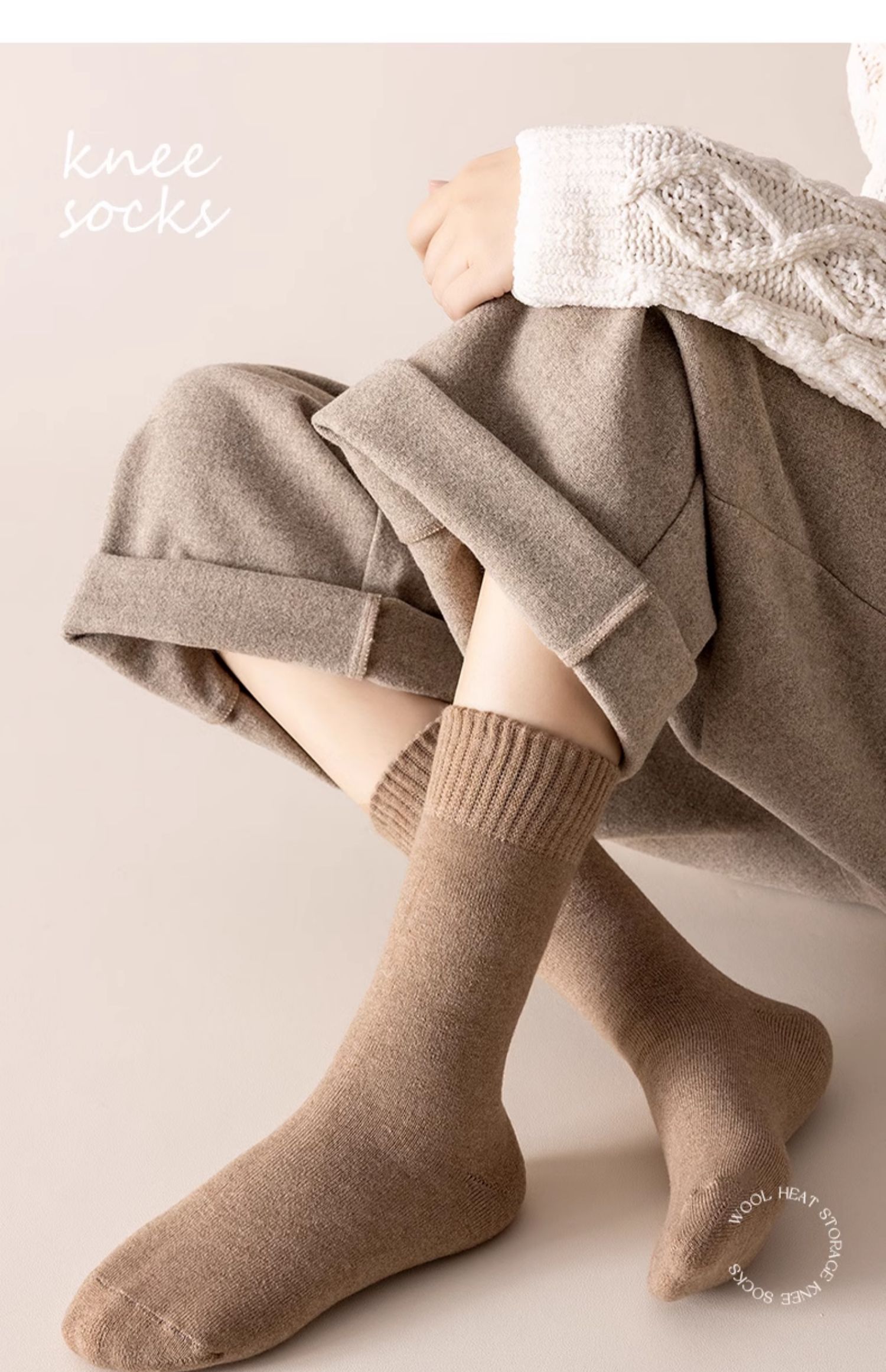 Wool Mid-Calf Socks for Women, Autumn and Winter, Fleece-Lined, Thickened, Warm Sleep Socks, Postpartum Socks, Extra Thick Winter Snow Long Socks