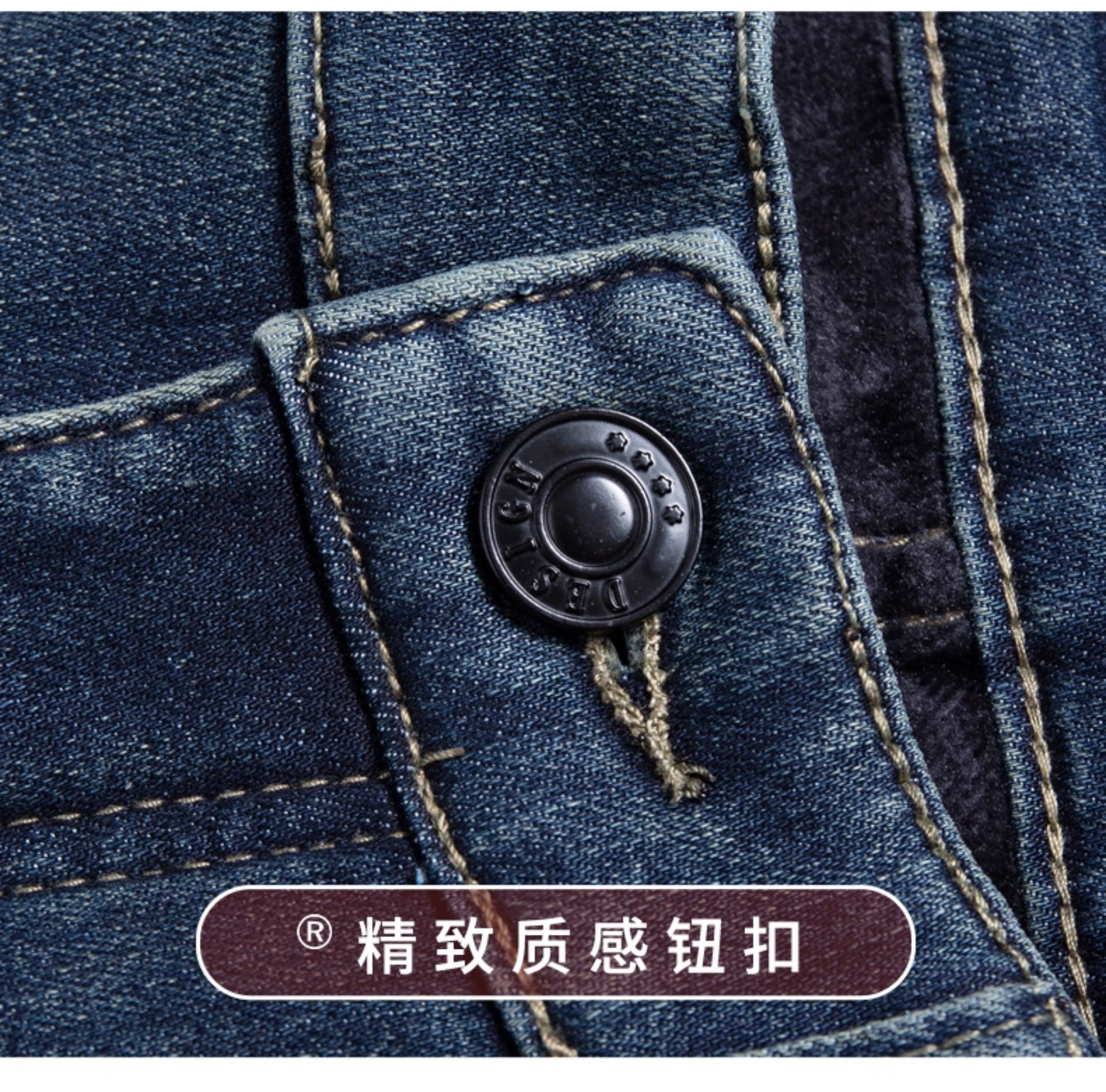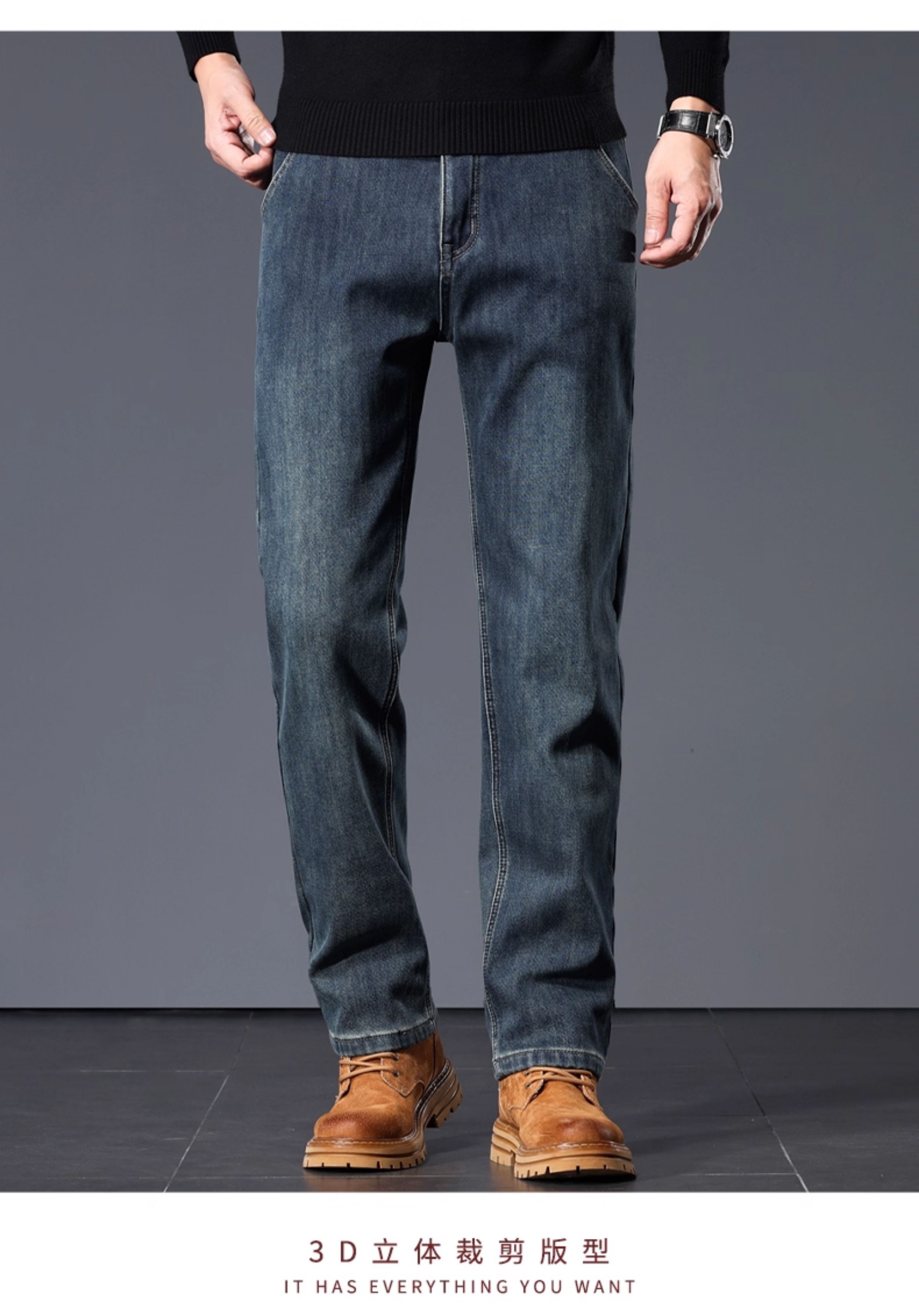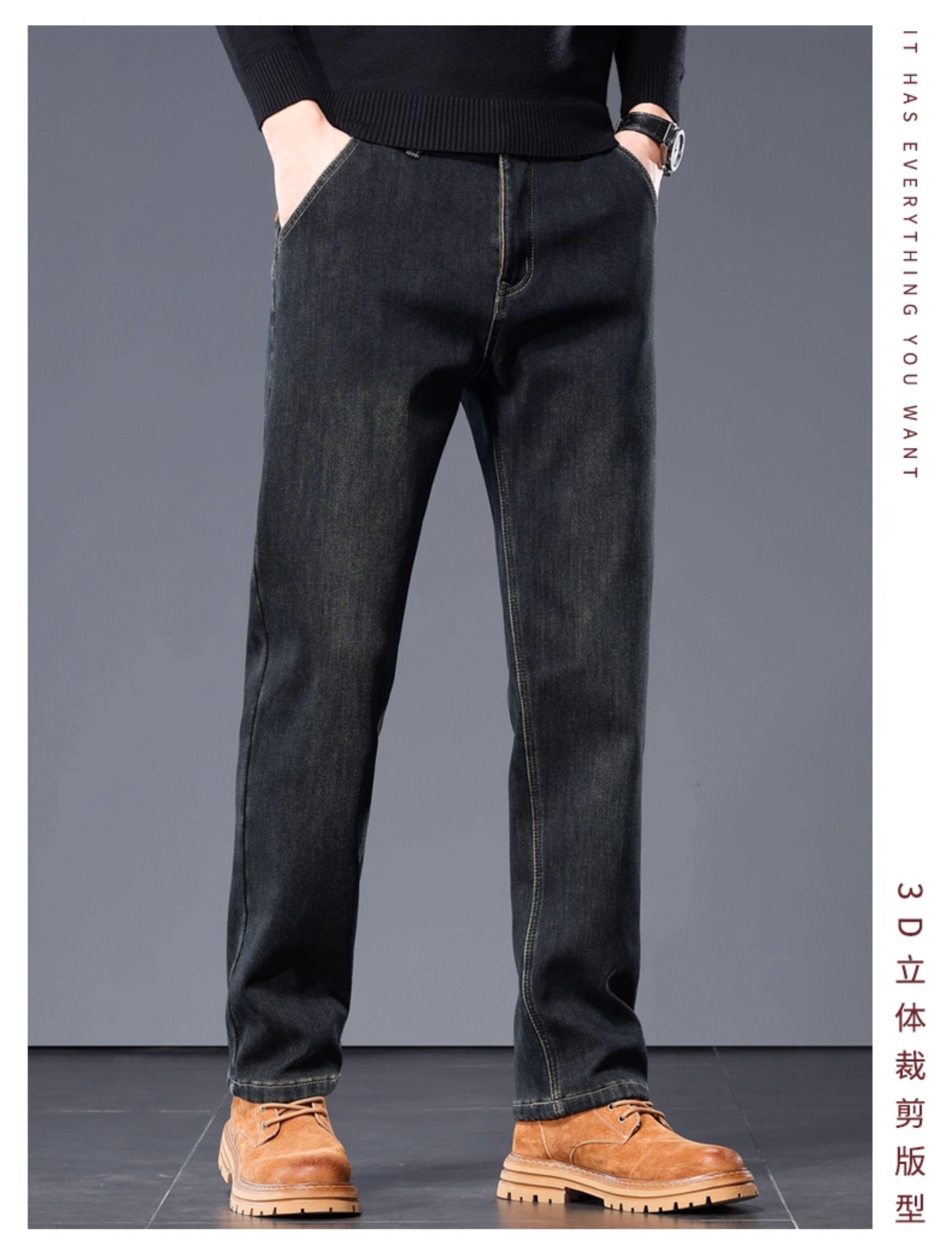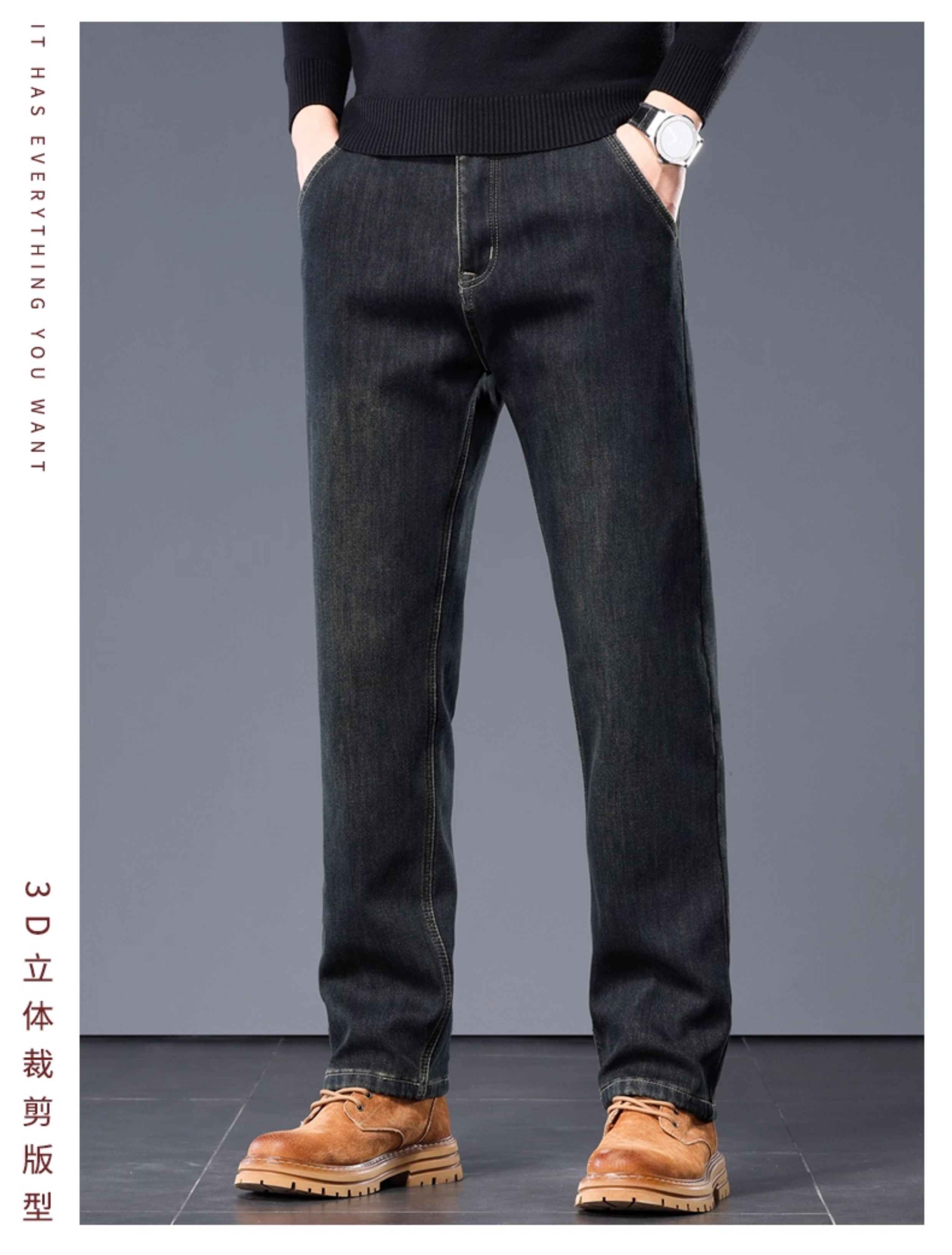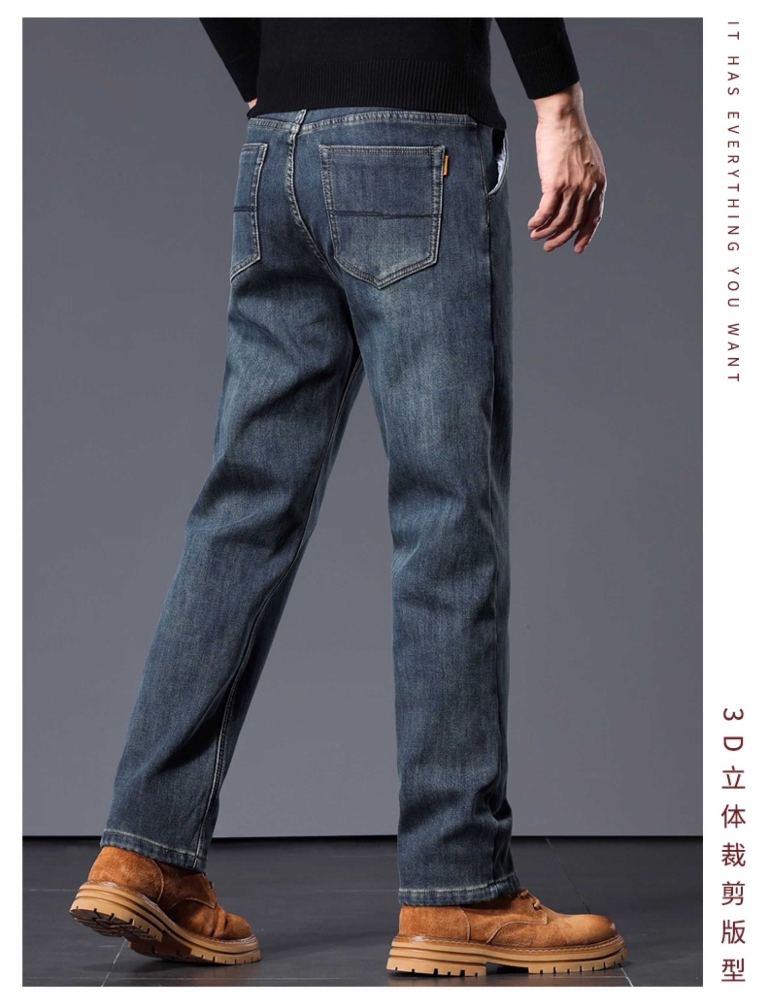 Winter Blue-Gray Fleece-Lined Thickened Jeans for Men, Loose Straight-Leg Trousers, Middle-Aged Autumn and Winter Style, Warm and Extra Thick Pants