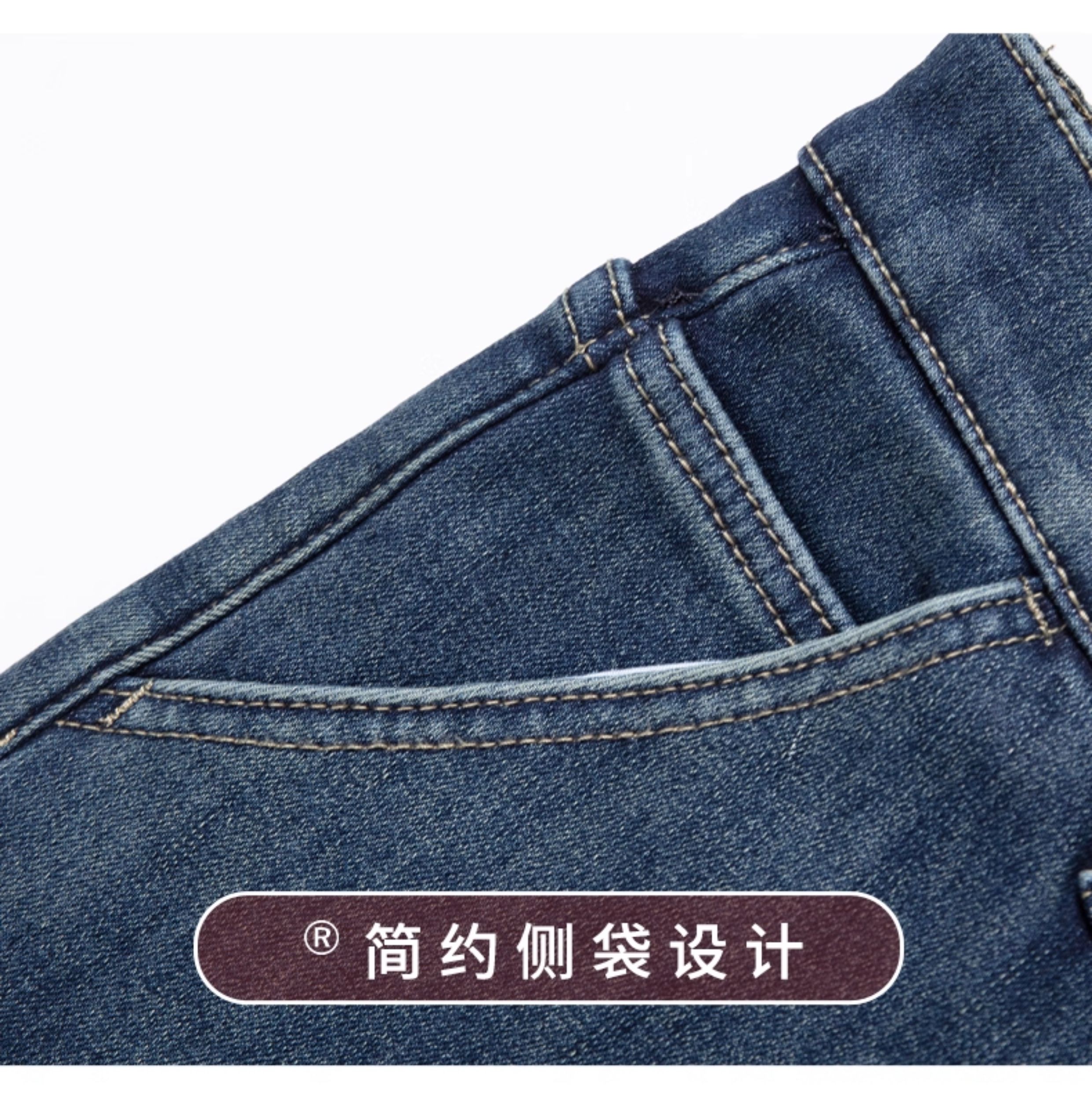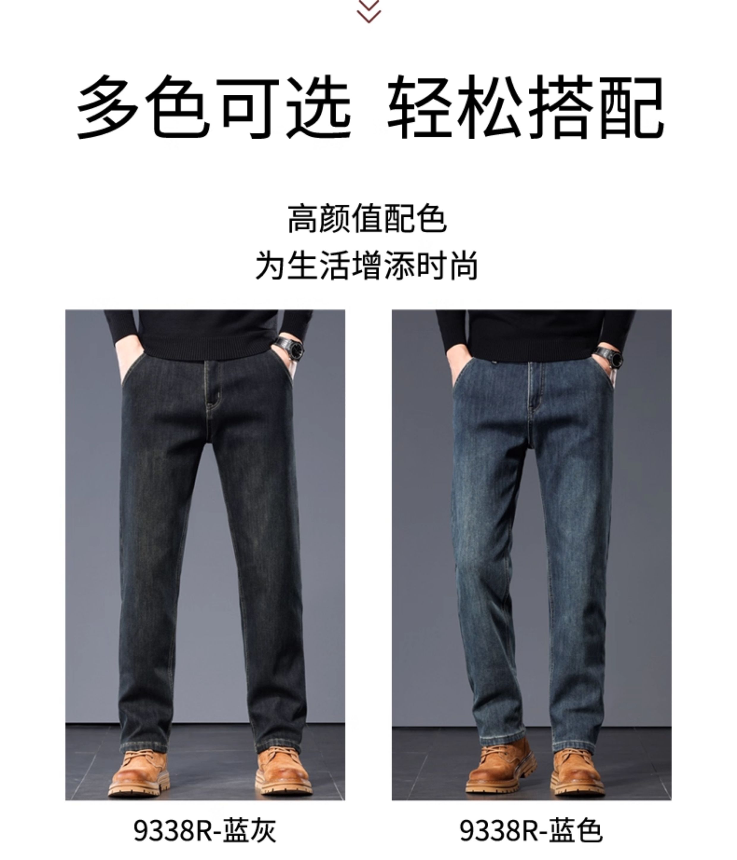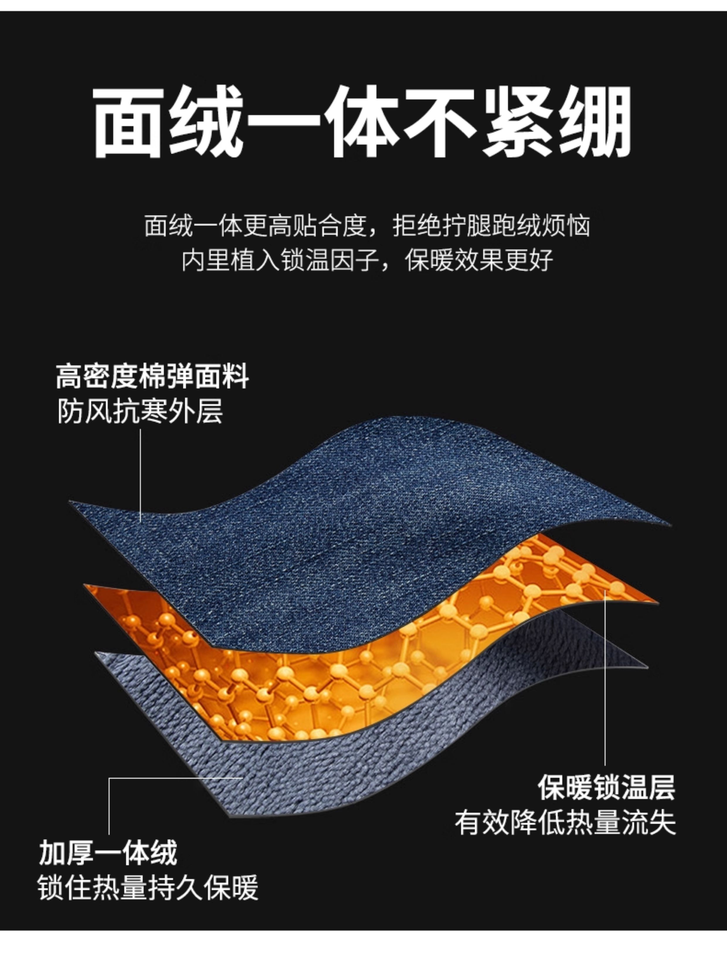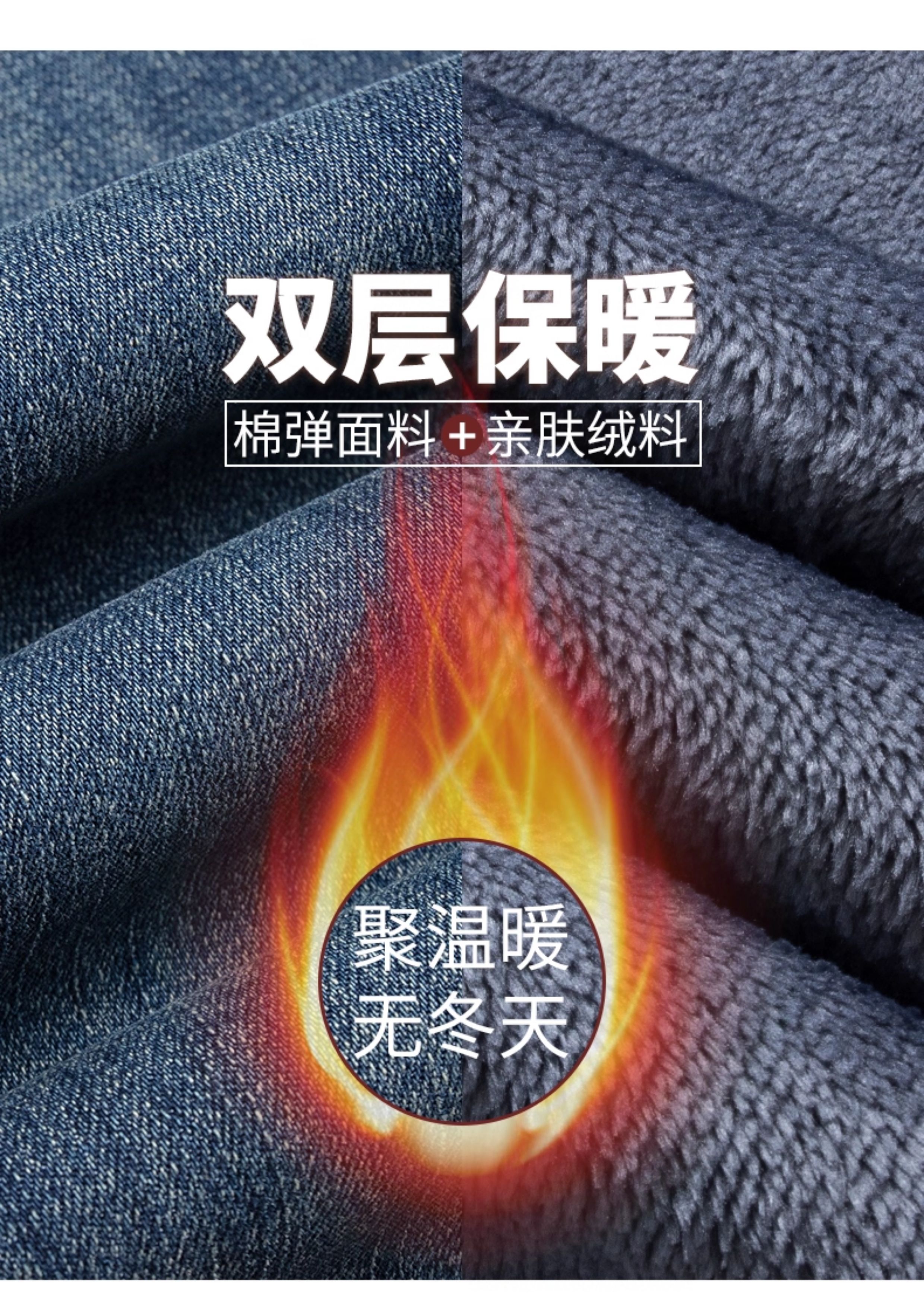 Winter Blue-Gray Fleece-Lined Thickened Jeans for Men, Loose Straight-Leg Trousers, Middle-Aged Autumn and Winter Style, Warm and Extra Thick Pants