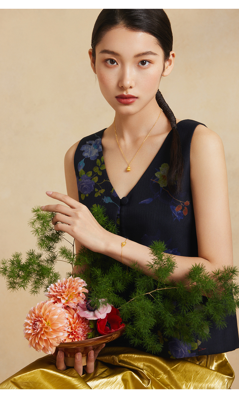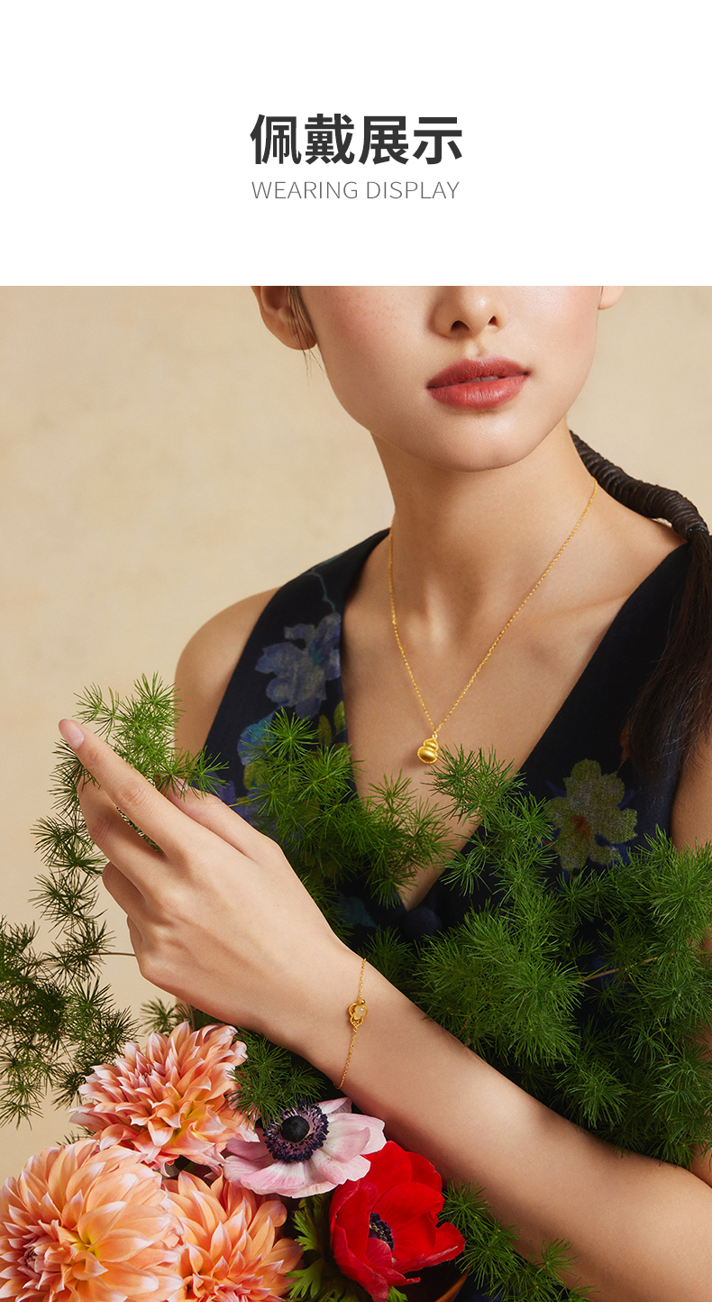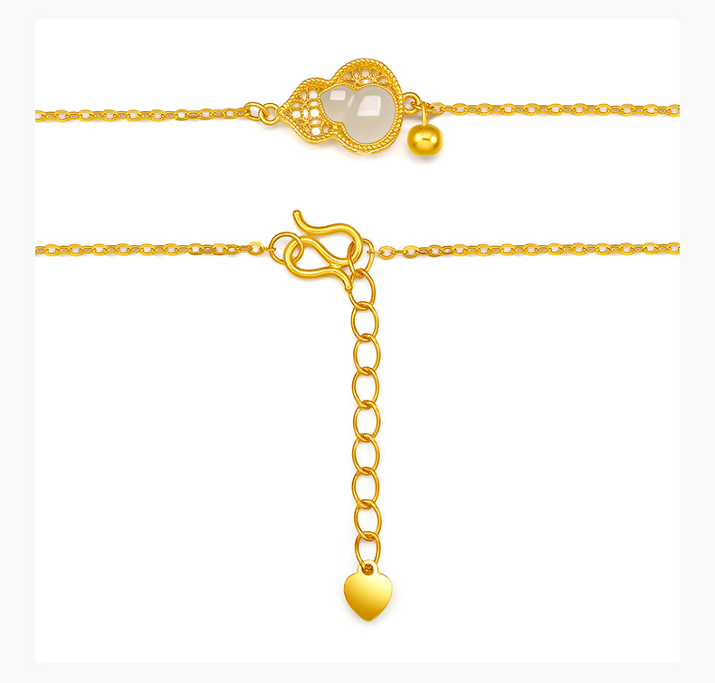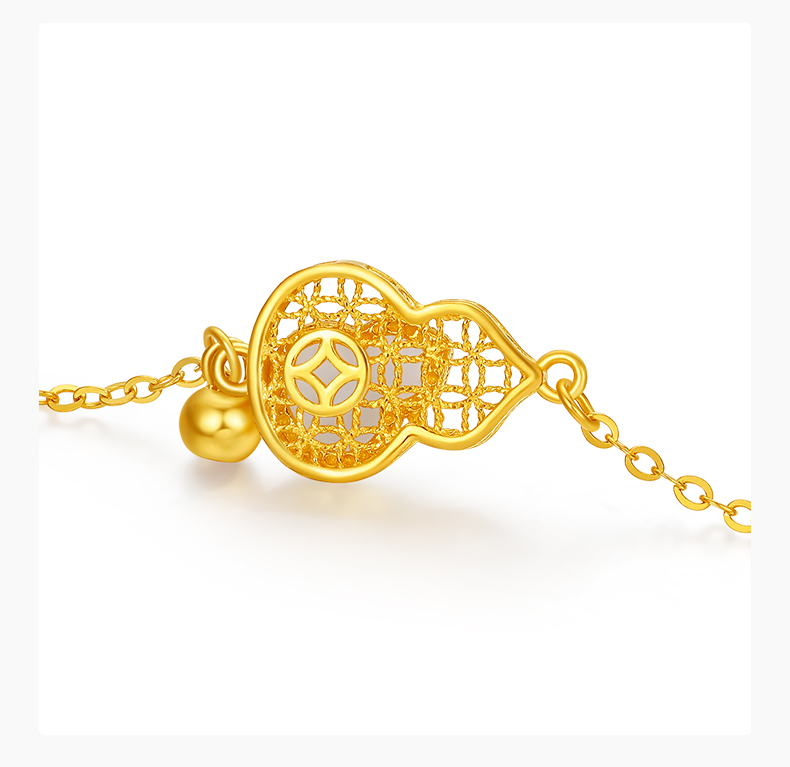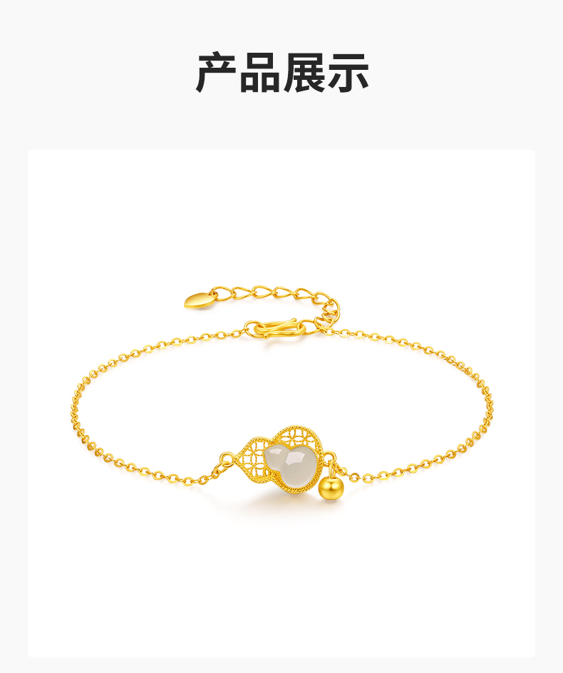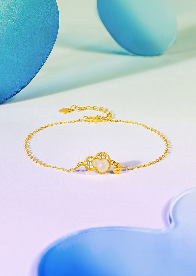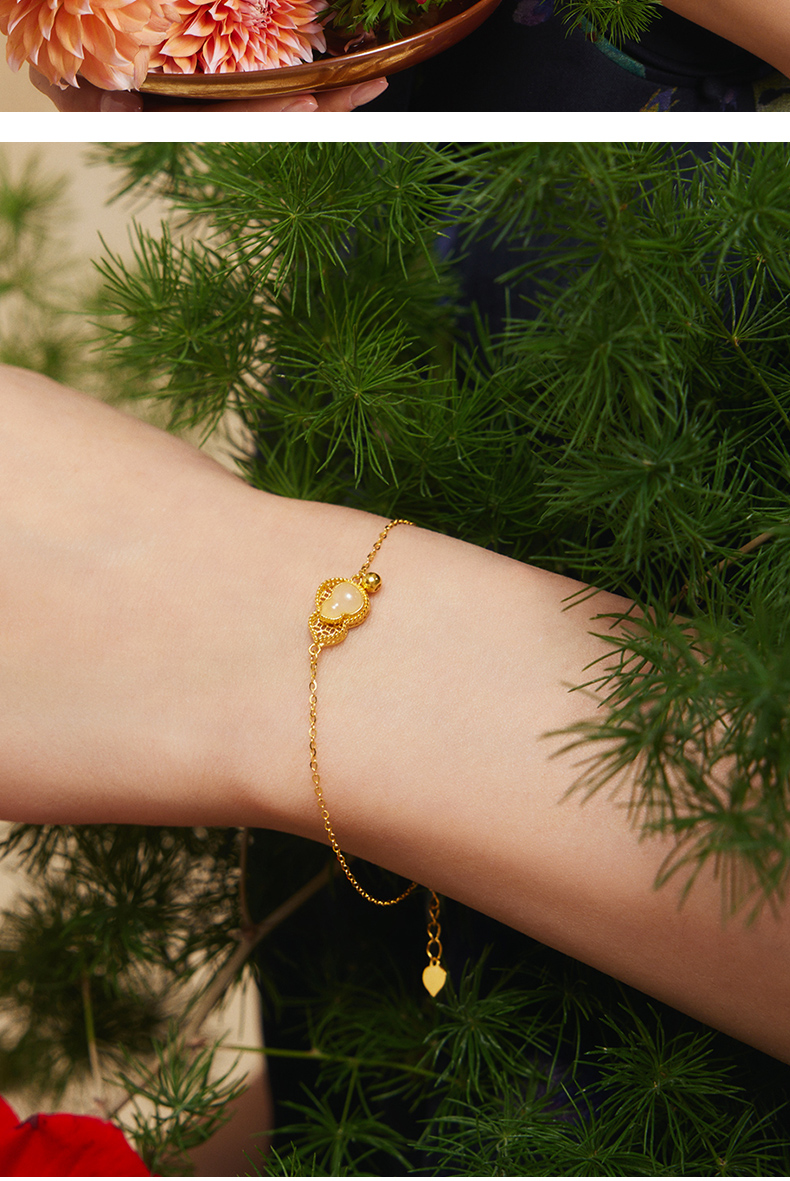TSL Xie Ruilin Gold Bracelet Inlaid with Hetian Jade Gourd Foot Gold Bracelet Meaning Female X5130