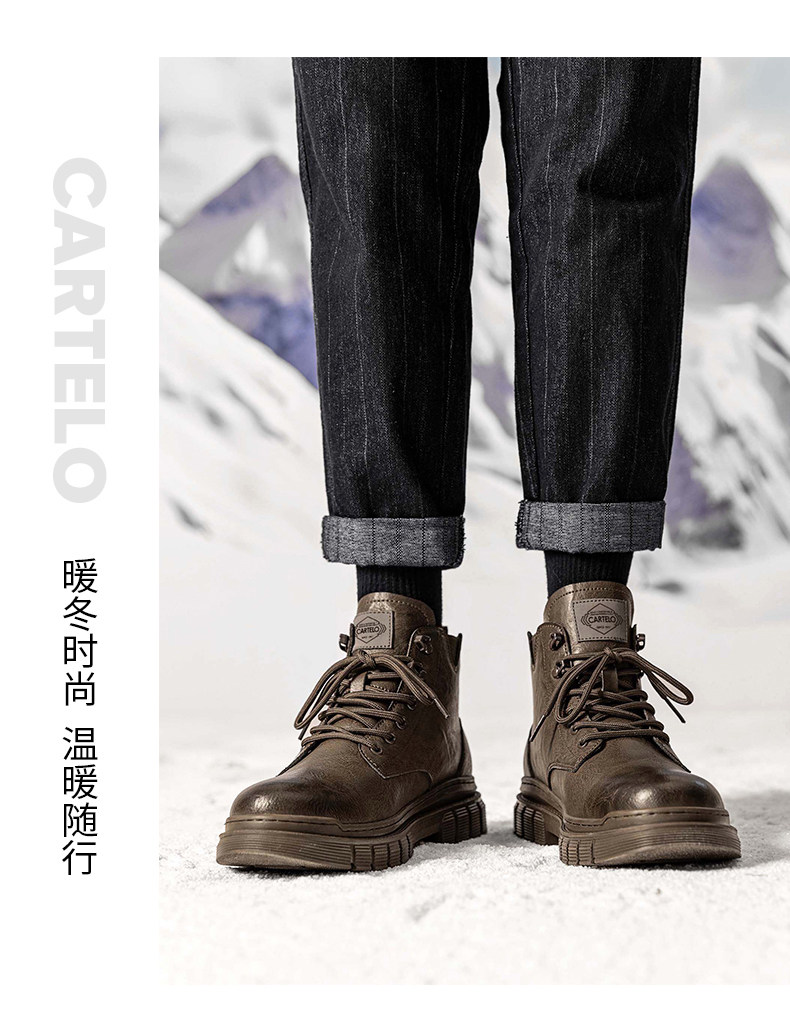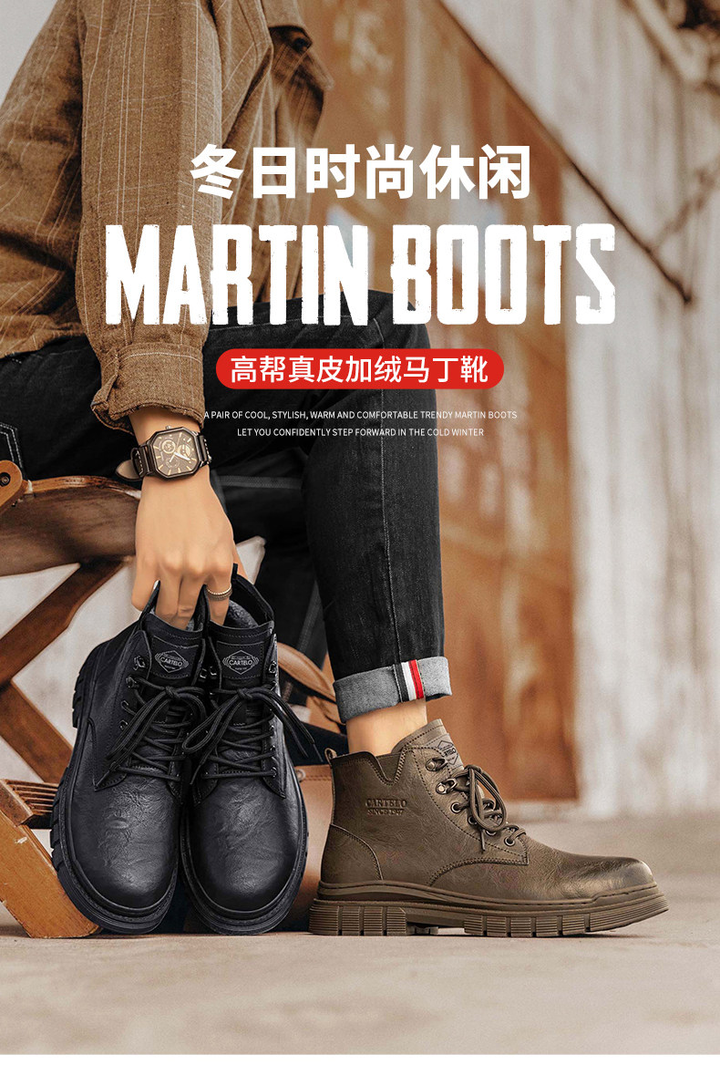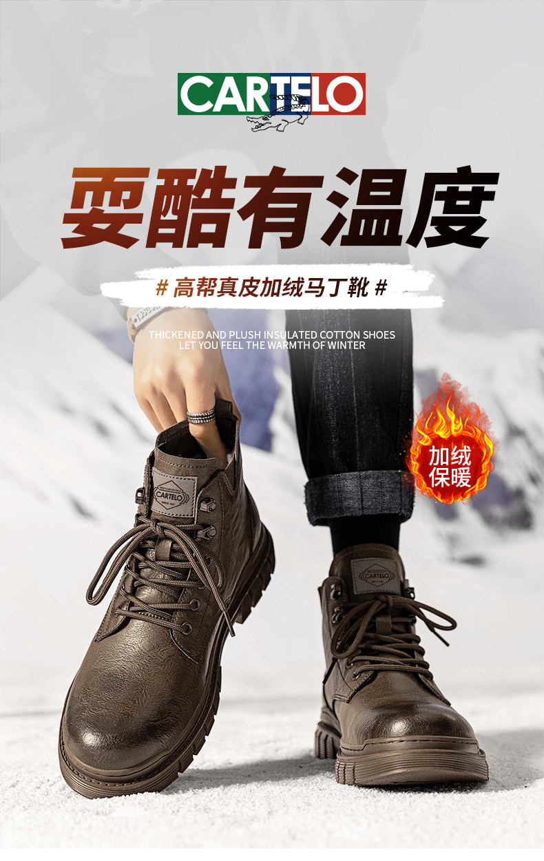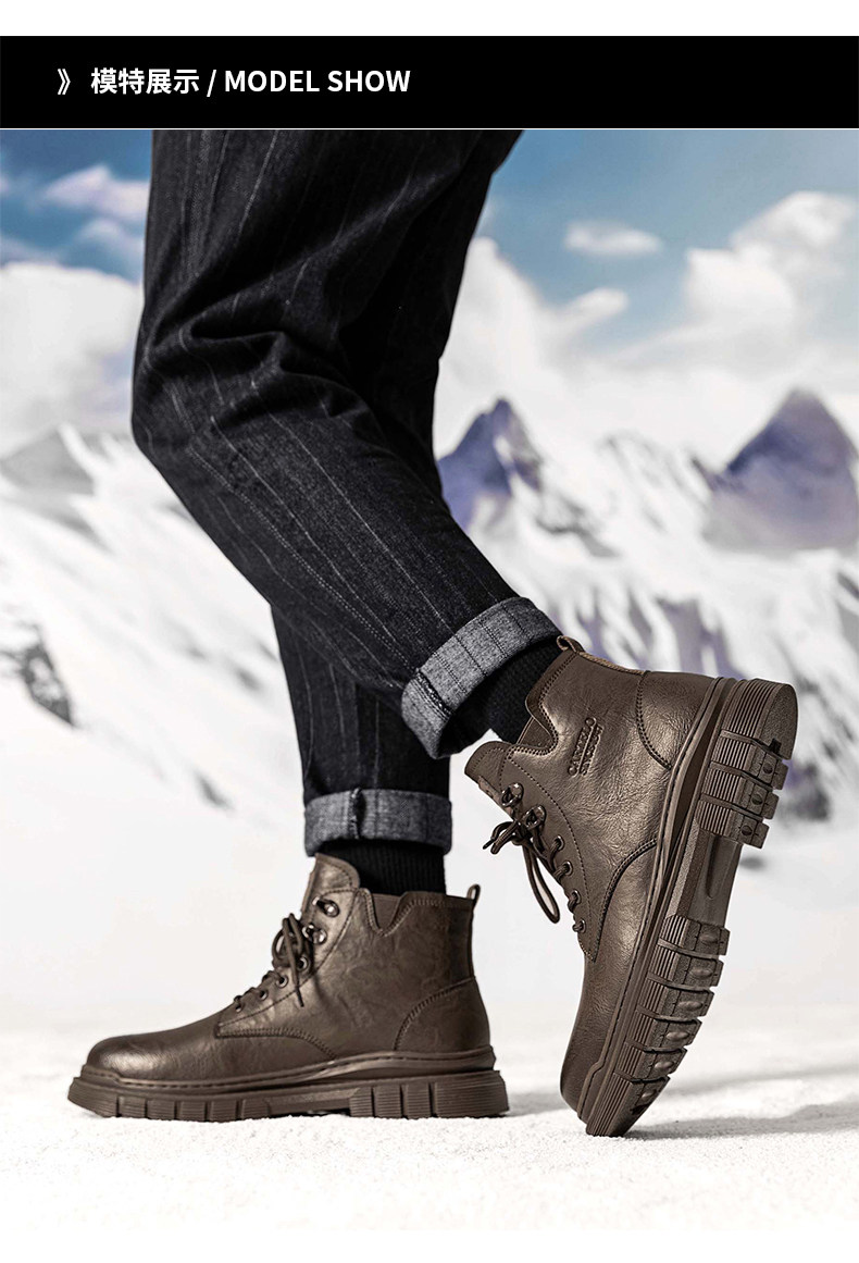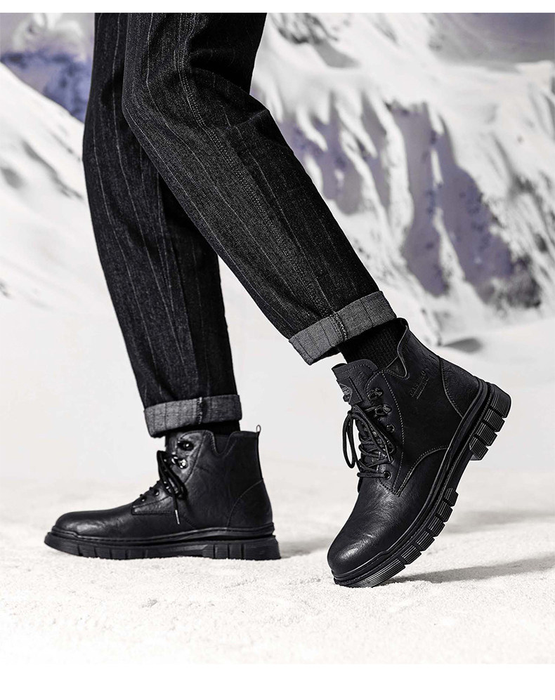 Cardile Crocodile Martin Boots for Men, Winter Fleece-Lined Warm Cotton Shoes, Mid-Top Thickened Snow Boots, Men's Genuine Leather Work Boots
