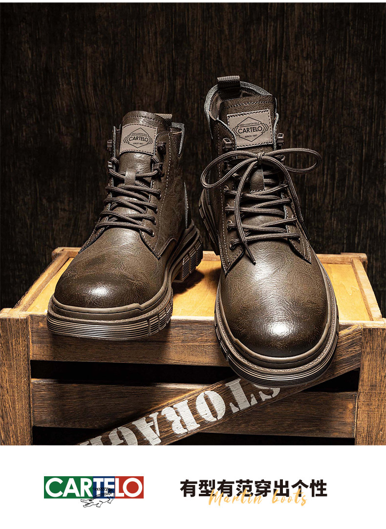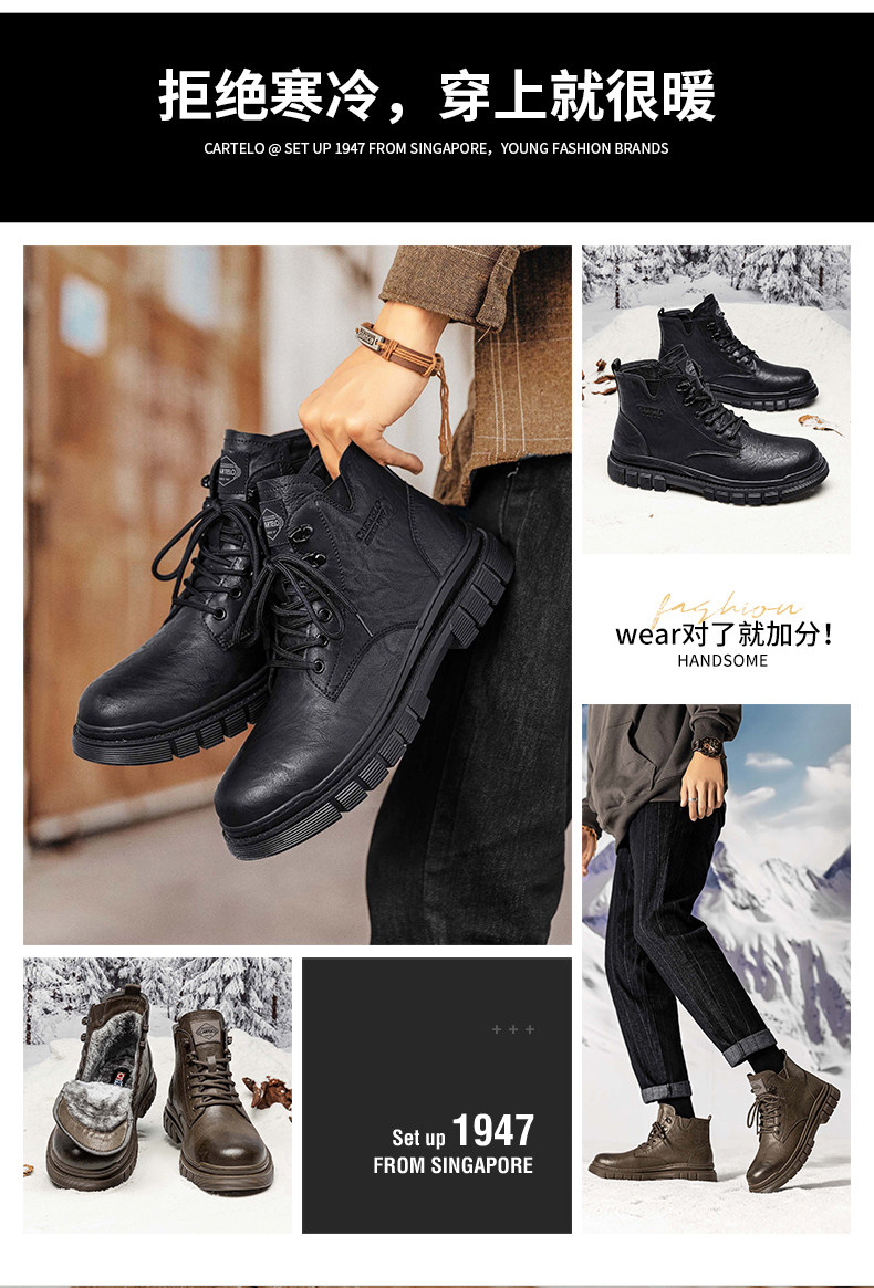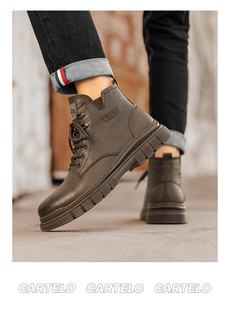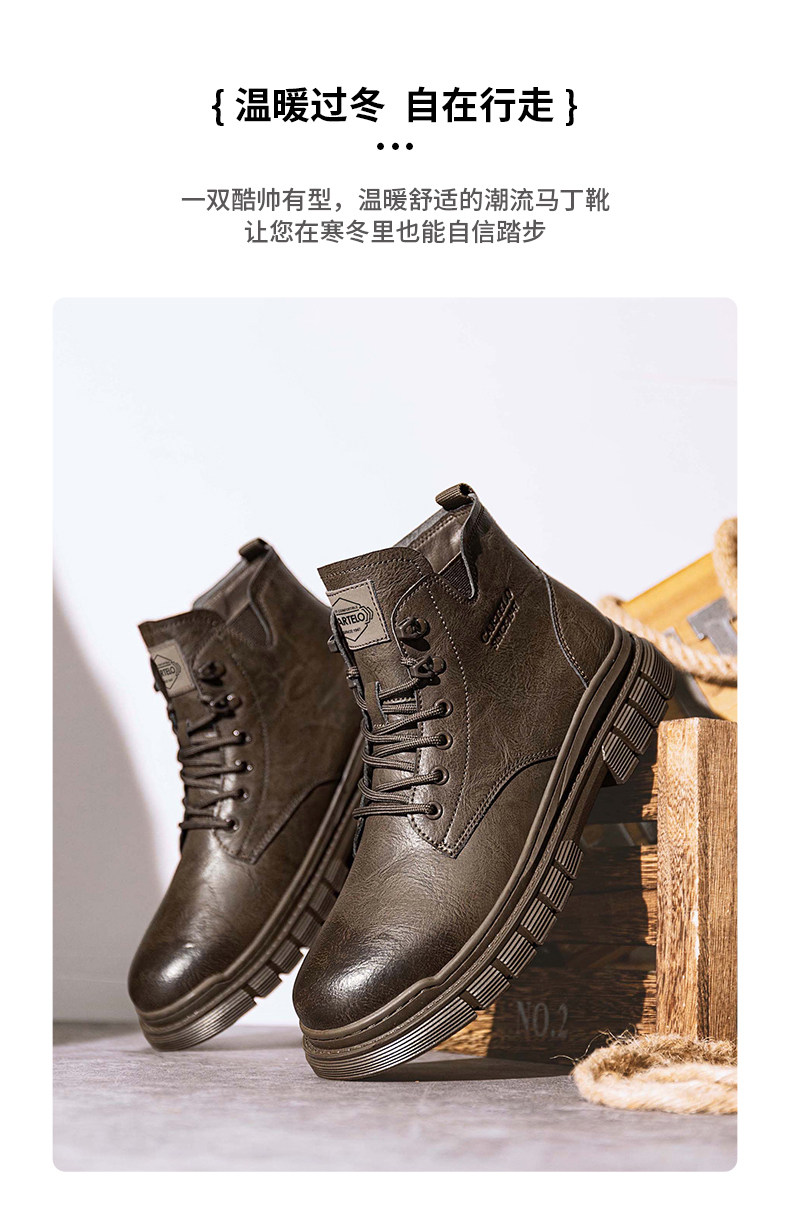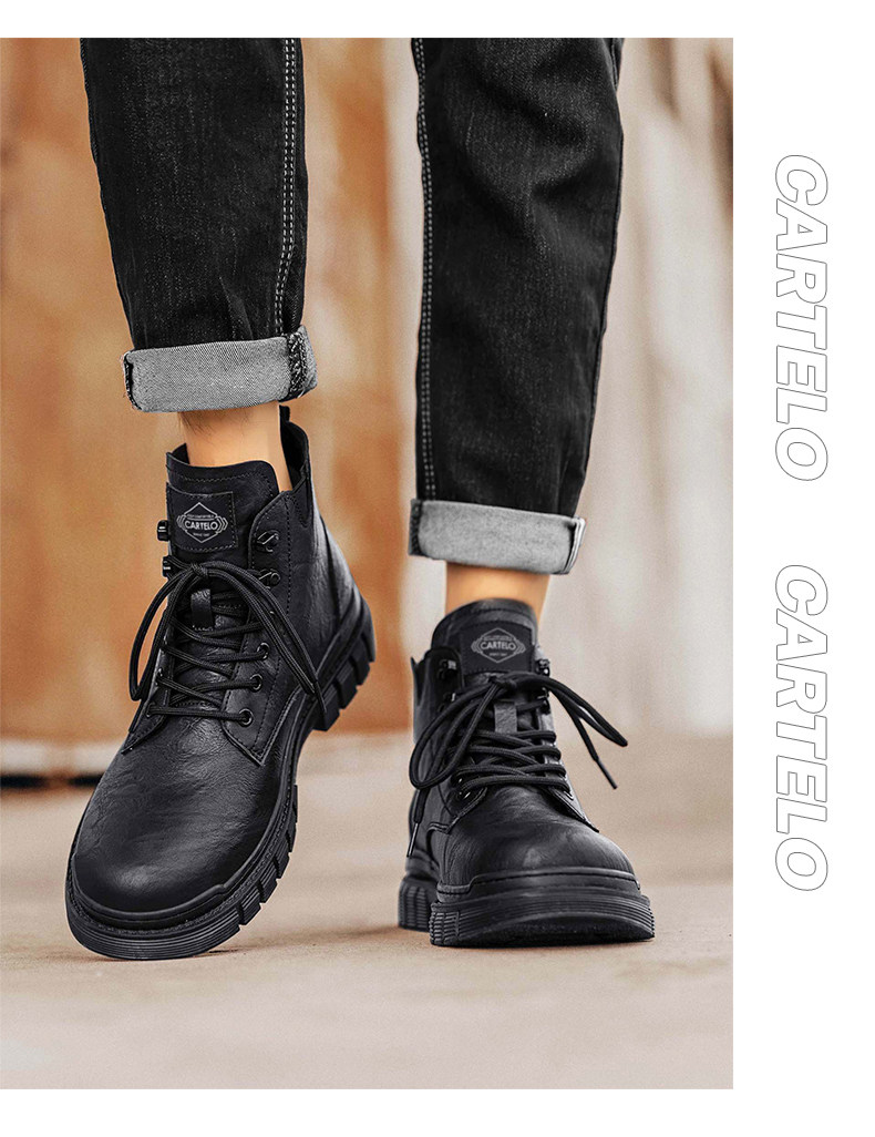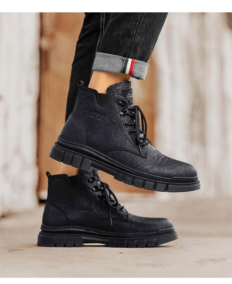 Cardile Crocodile Martin Boots for Men, Winter Fleece-Lined Warm Cotton Shoes, Mid-Top Thickened Snow Boots, Men's Genuine Leather Work Boots