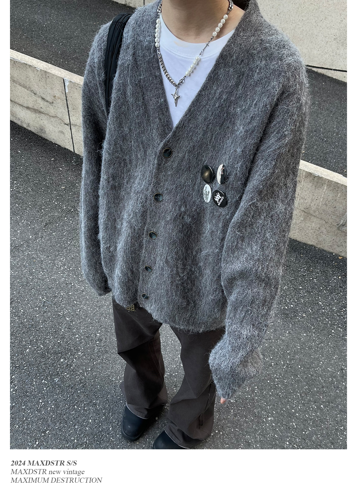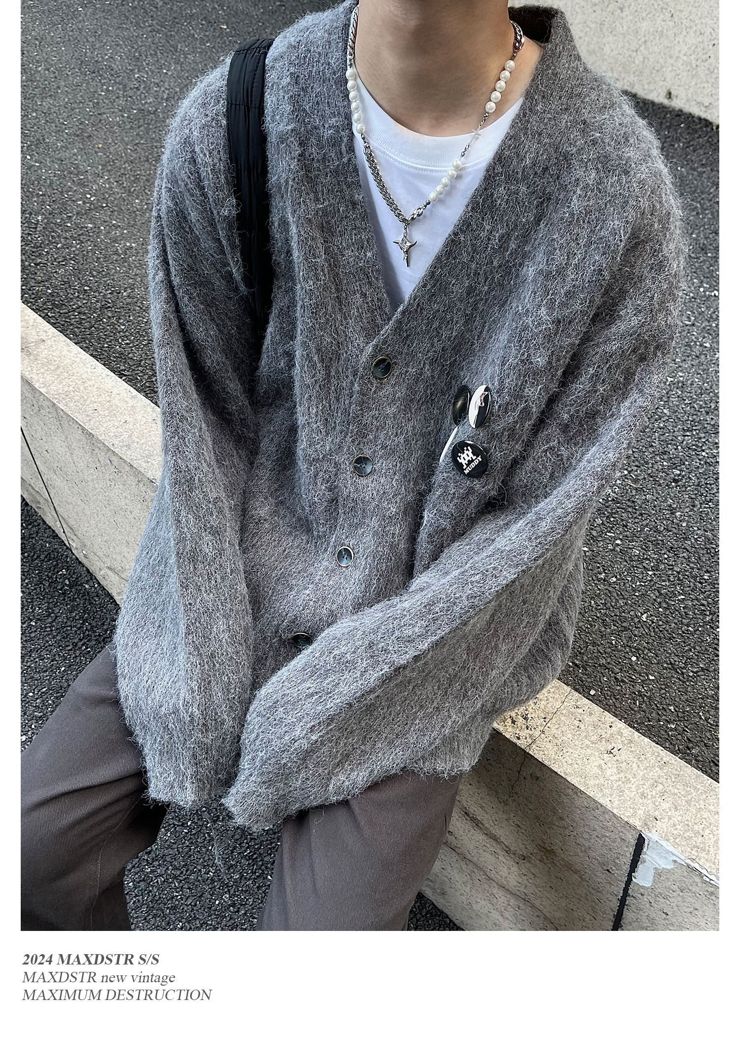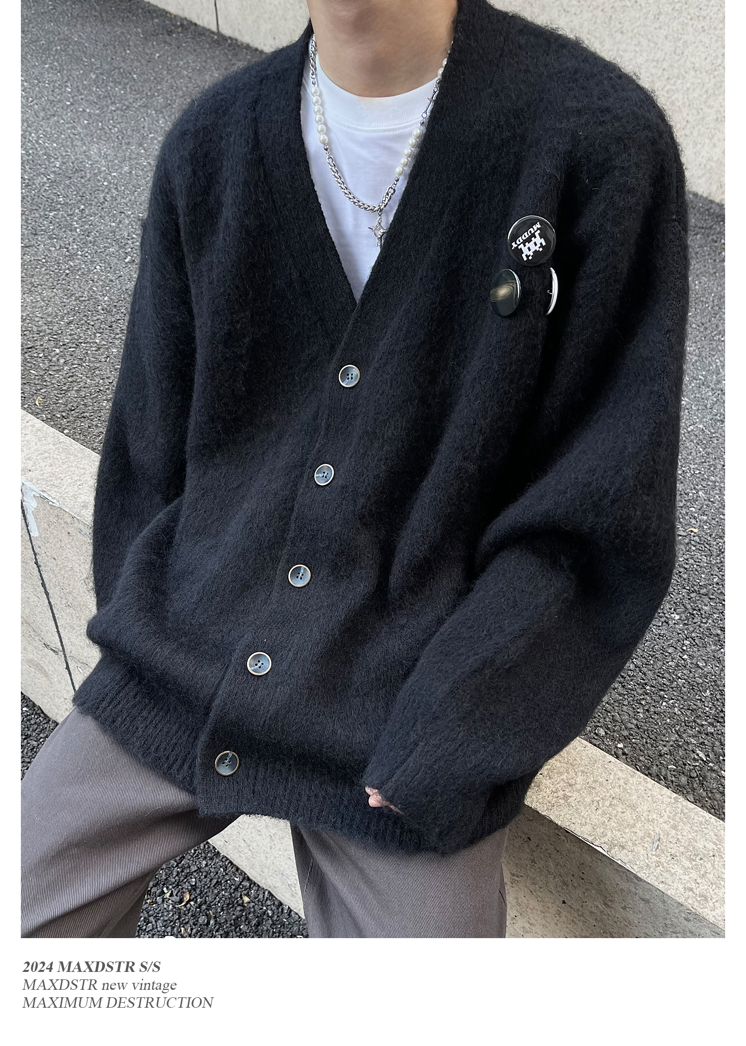 Maxdstr Brooch Badge Button Cardigan Sweater Knitwear Unisex Lazy Style Solid Color Autumn and Winter Wool Coat