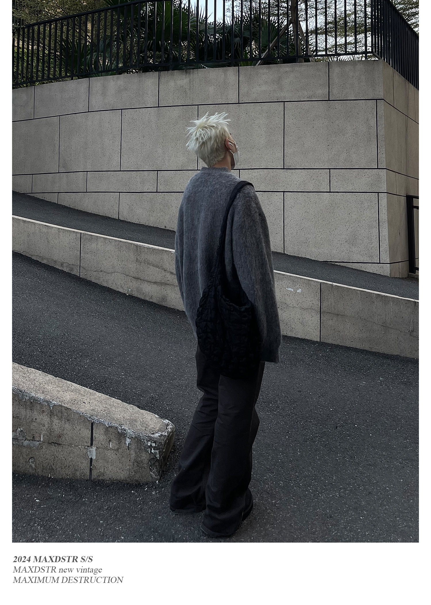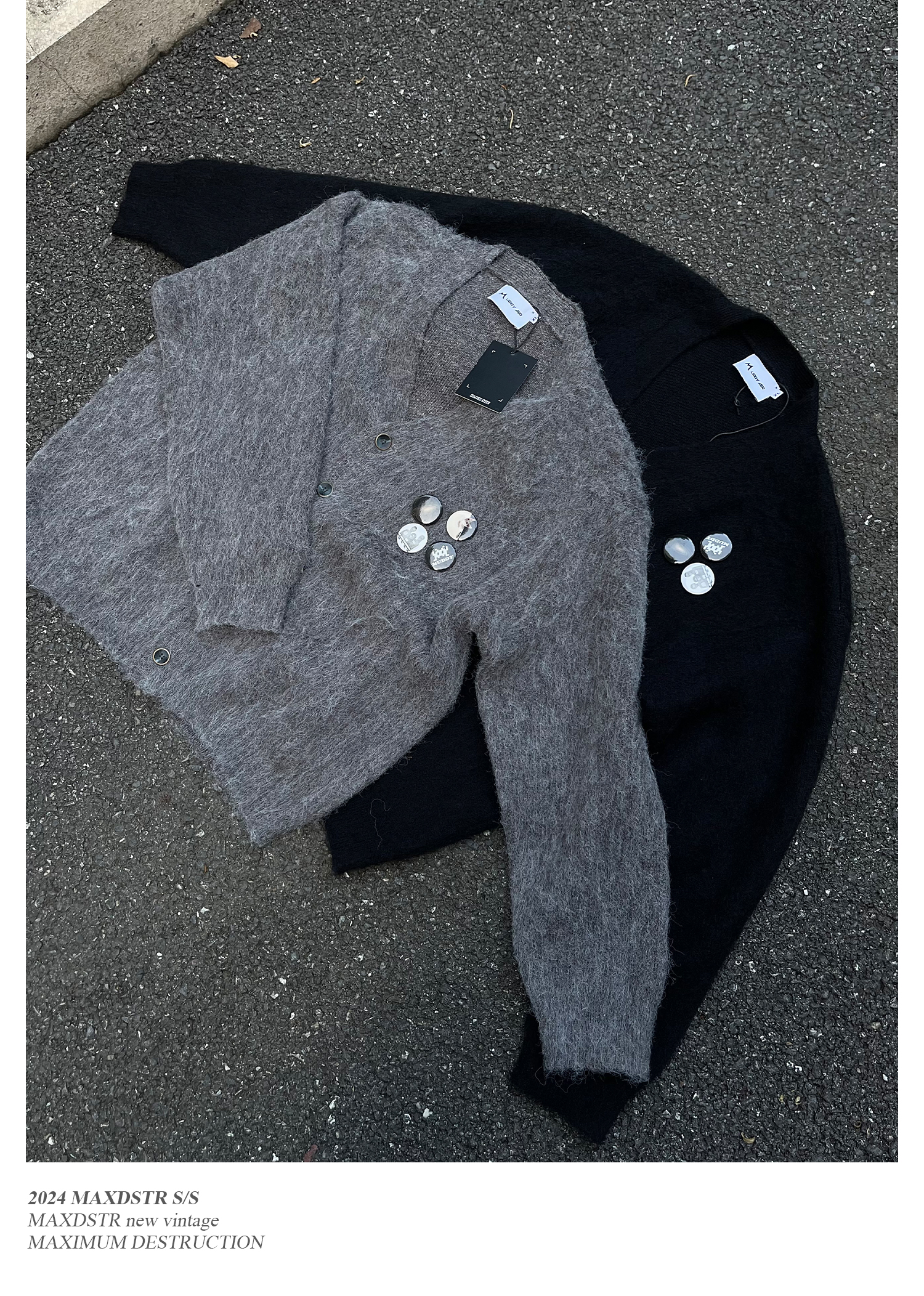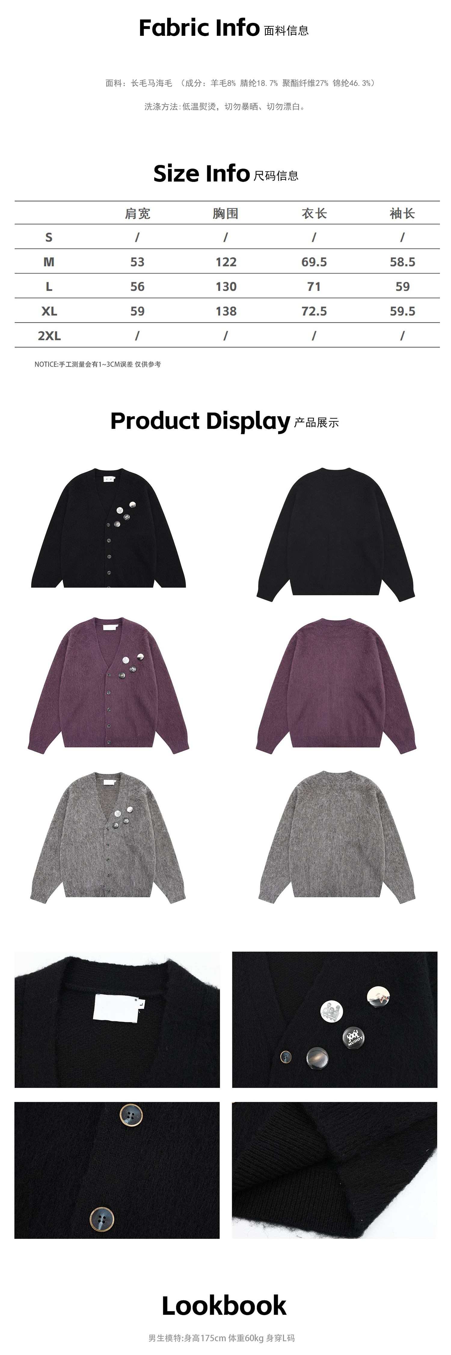 Maxdstr Brooch Badge Button Cardigan Sweater Knitwear Unisex Lazy Style Solid Color Autumn and Winter Wool Coat
