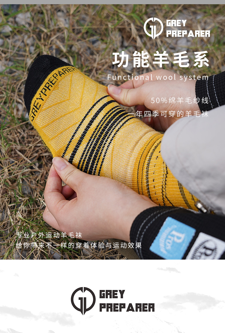 Gray Shell Outdoor Men's and Women's Merino Wool Socks for Hiking, Skiing, Sweat-Absorbent, Merino Deodorant, Quick-Drying Sports Socks