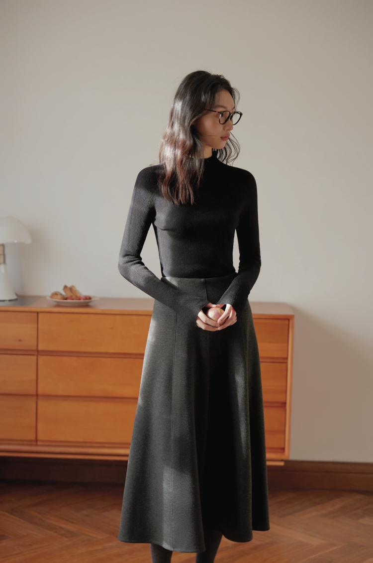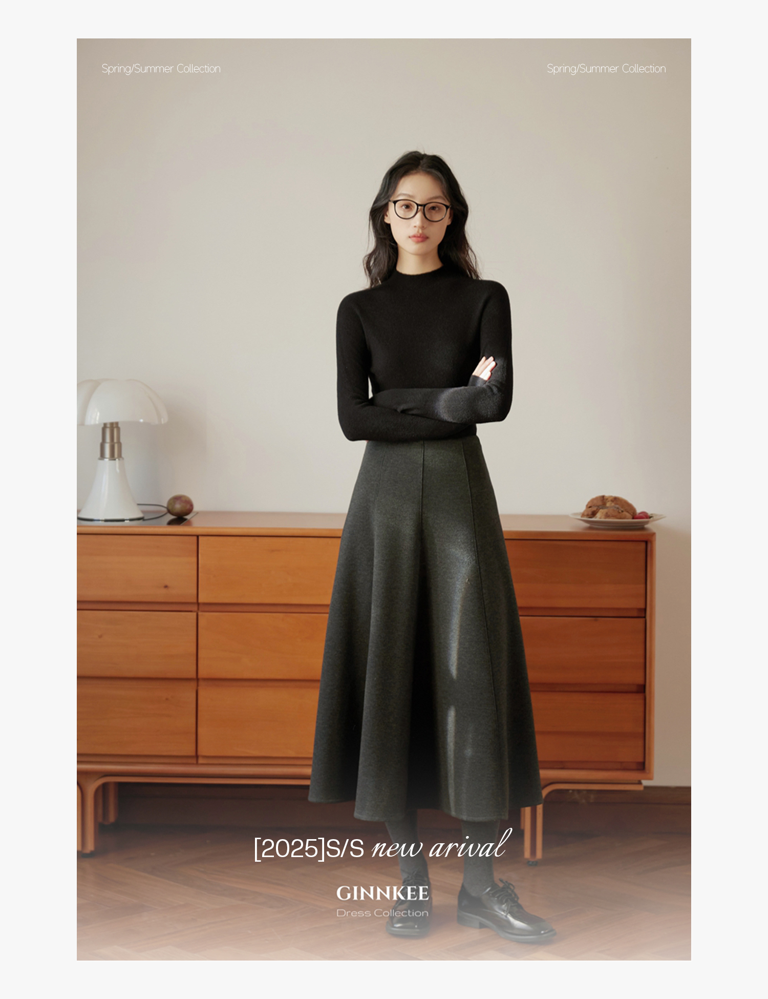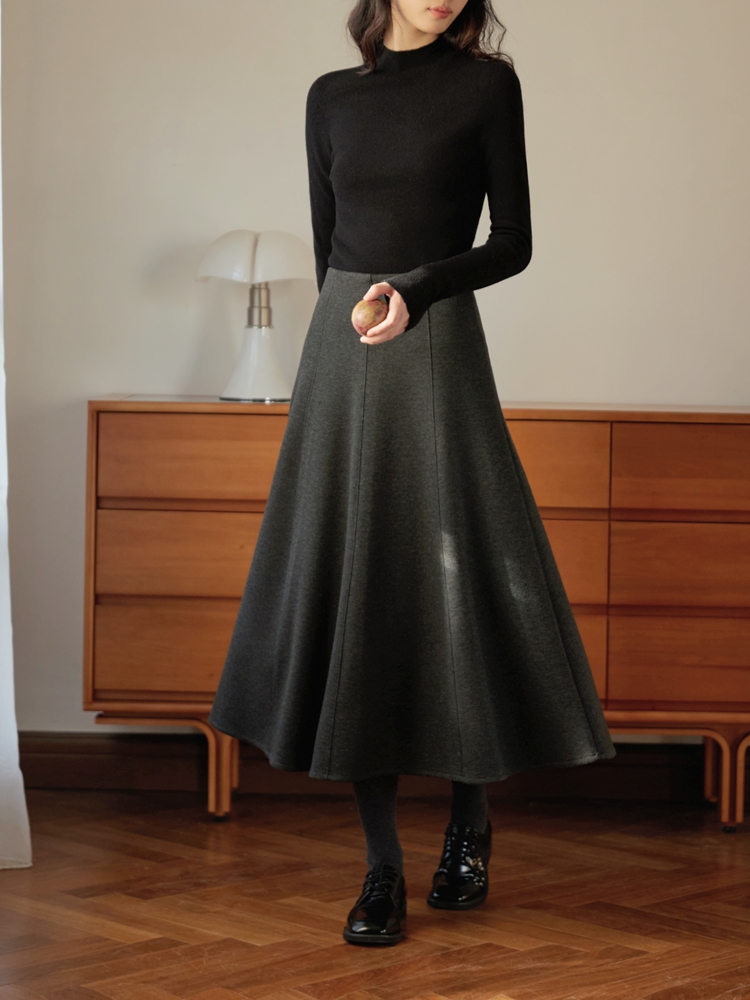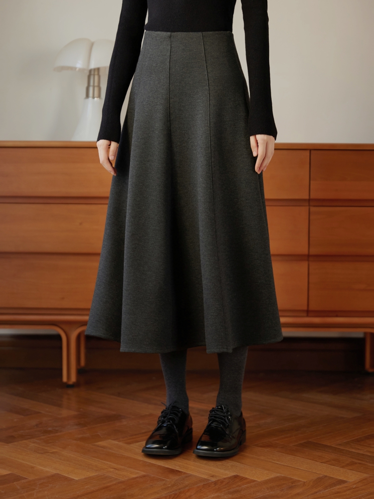 Ginnkee Acetate Wool Knitted Woolen Skirt A-Line Skirt Umbrella Skirt Women's Autumn and Winter Retro Gray Fishtail Long Skirt