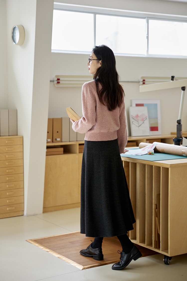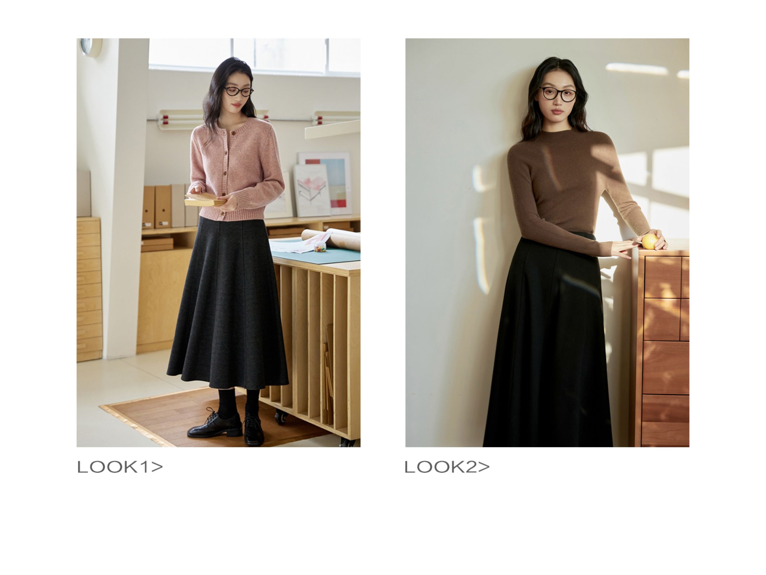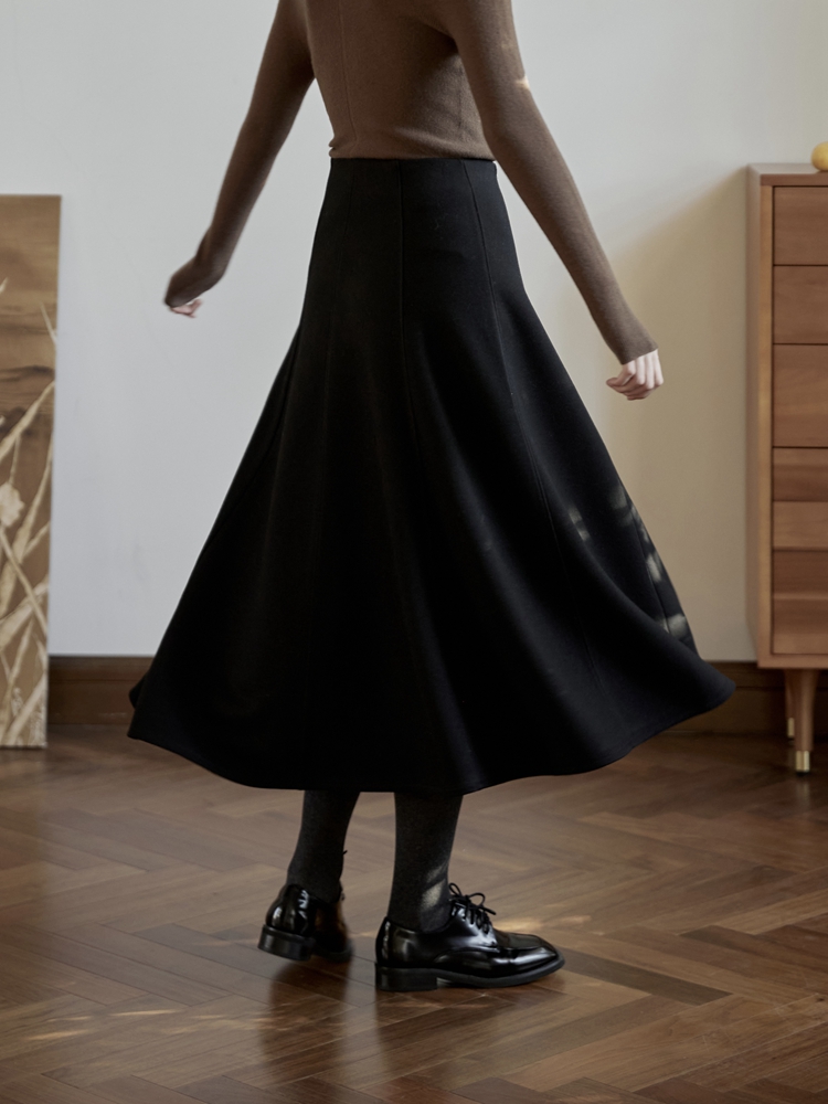 Ginnkee Acetate Wool Knitted Woolen Skirt A-Line Skirt Umbrella Skirt Women's Autumn and Winter Retro Gray Fishtail Long Skirt