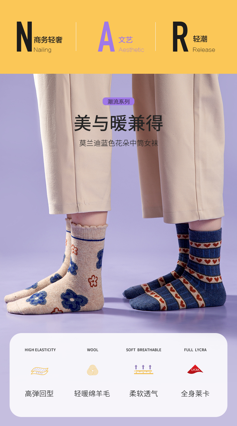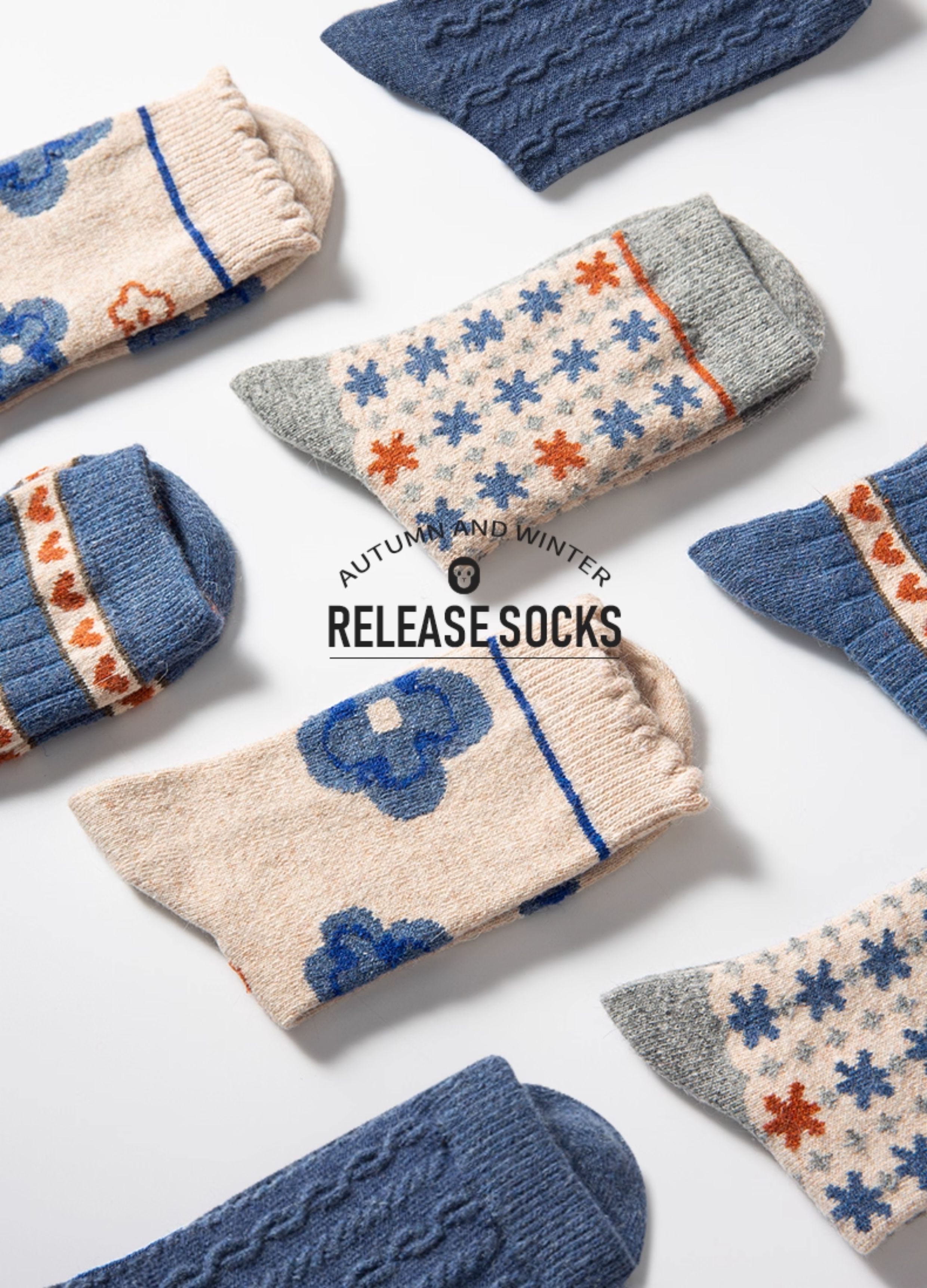 Nair Sheep Wool Socks for Women, Autumn and Winter Long Socks, Thickened, Warm, Vintage, Versatile Mid-Calf Socks, ins Trendy Slouch Socks