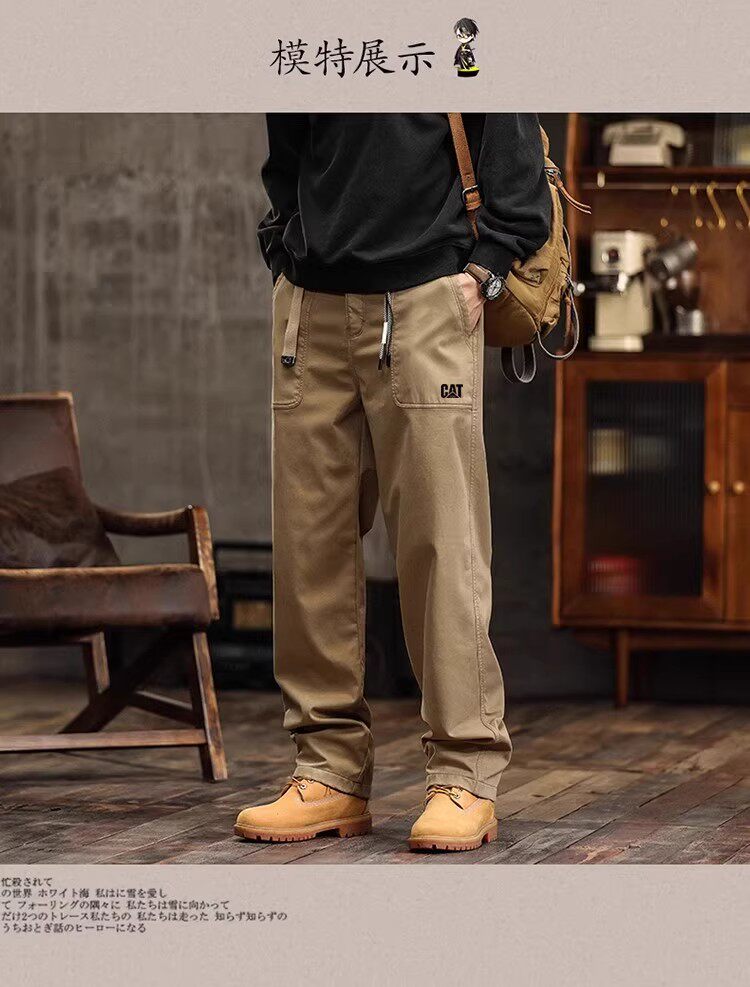 Outdoor Wear-Resistant Loose Cargo Pants for Men Cat.Com/Carter American Style Pure Cotton All-Season Casual Versatile Straight-Leg Pants