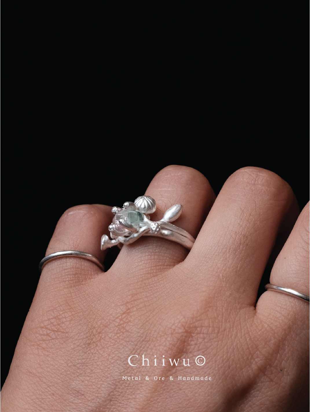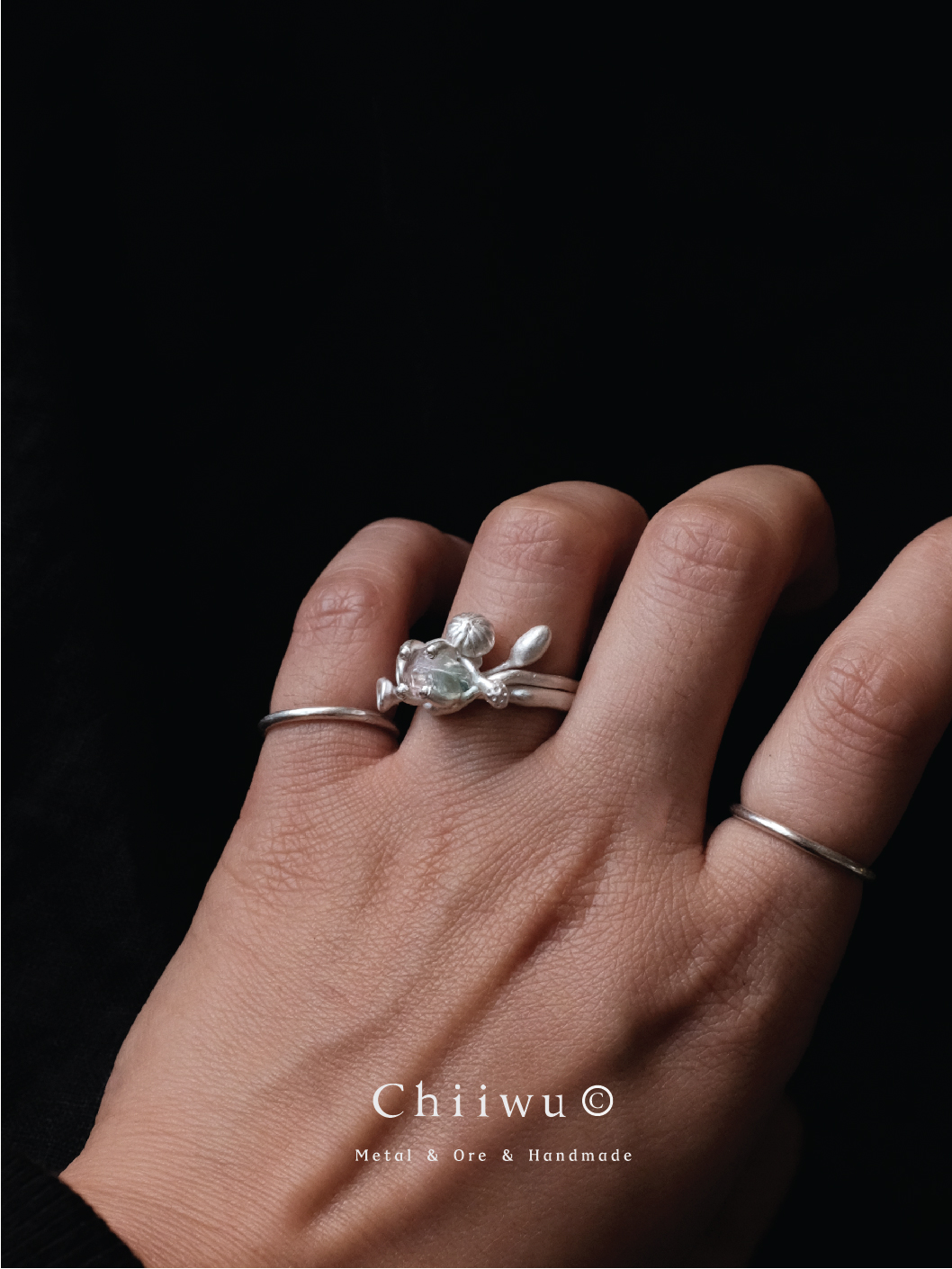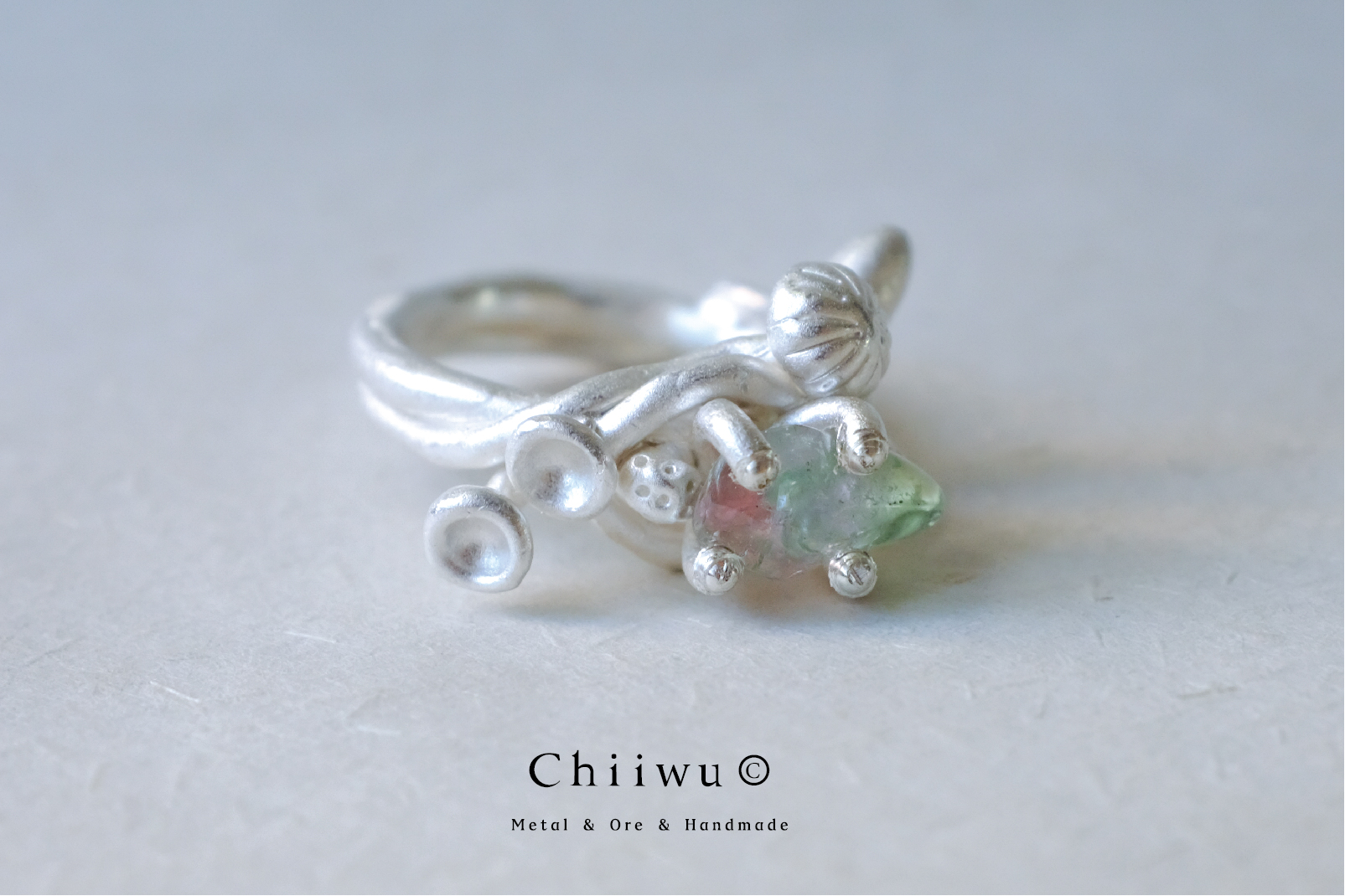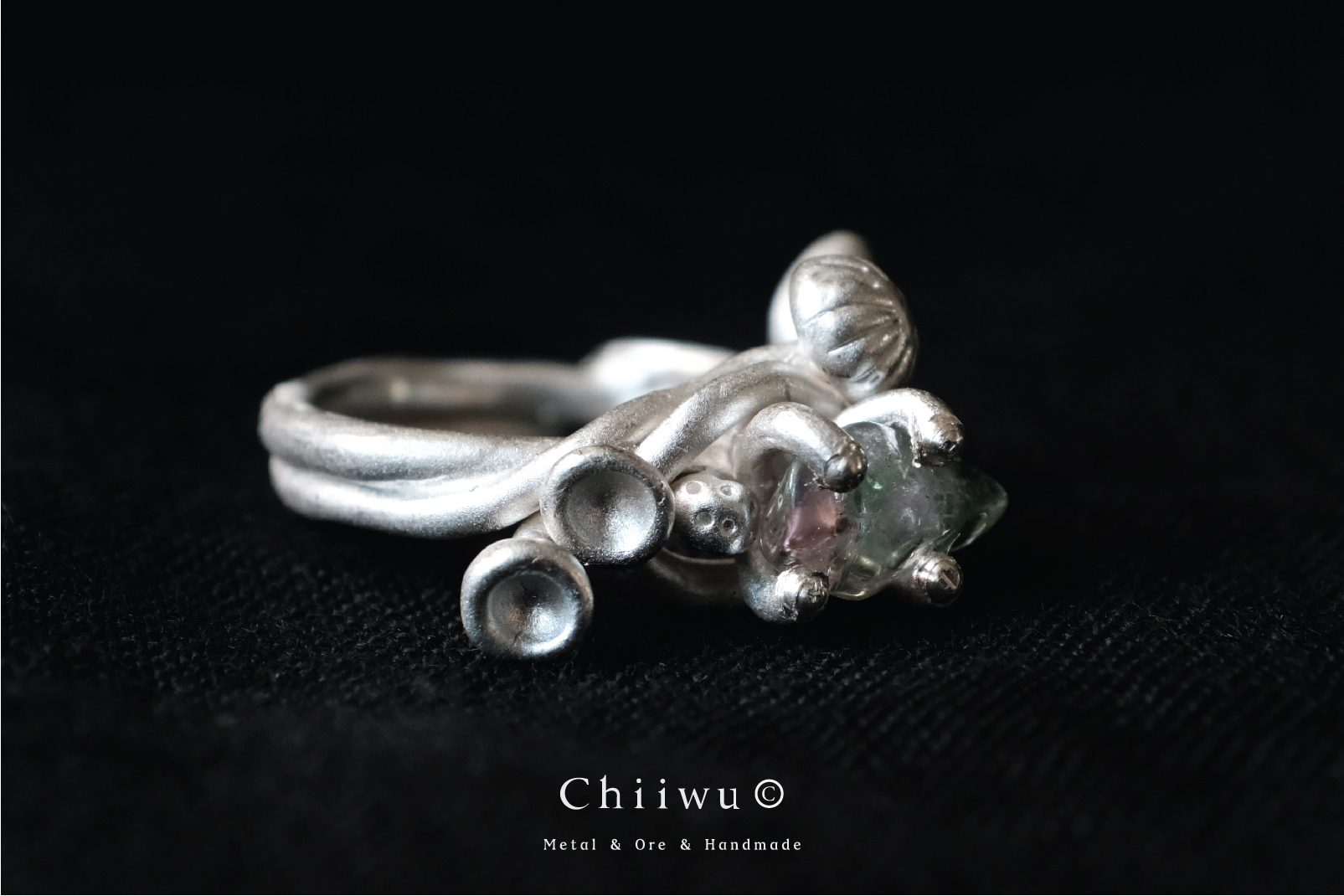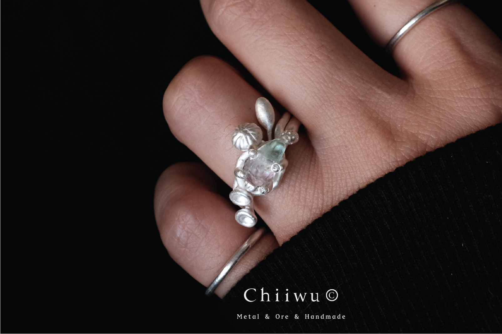 Pot Zoo Potted Plant Zoo Mushroom Series 6.0 High-End Handmade Rustic Silver Jewelry Natural Tourmaline