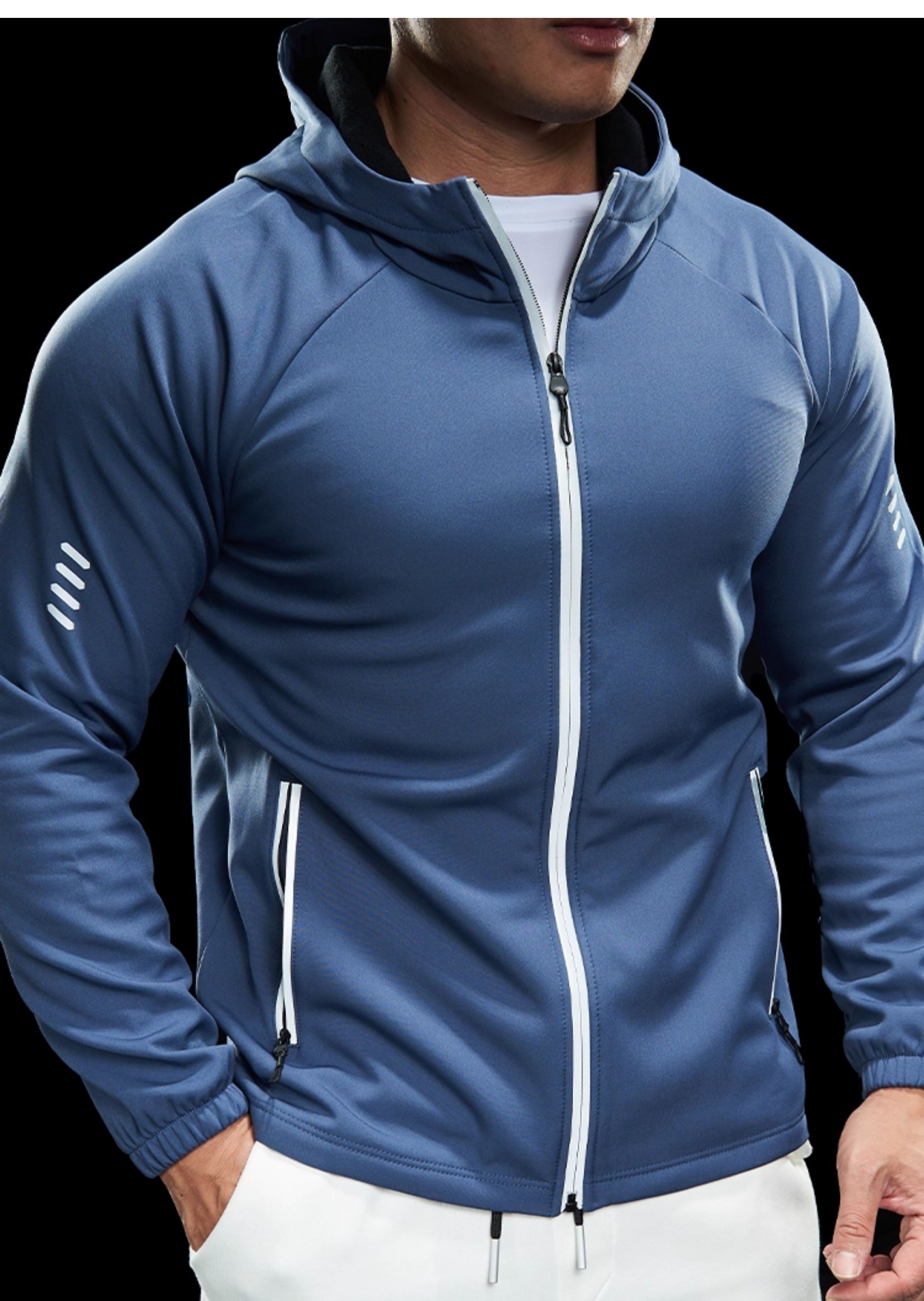 Domineering Muscular Men's Sports Fitness Long-Sleeved Hooded Jacket Top Casual Slim Running Training Clothes Autumn and Winter Men