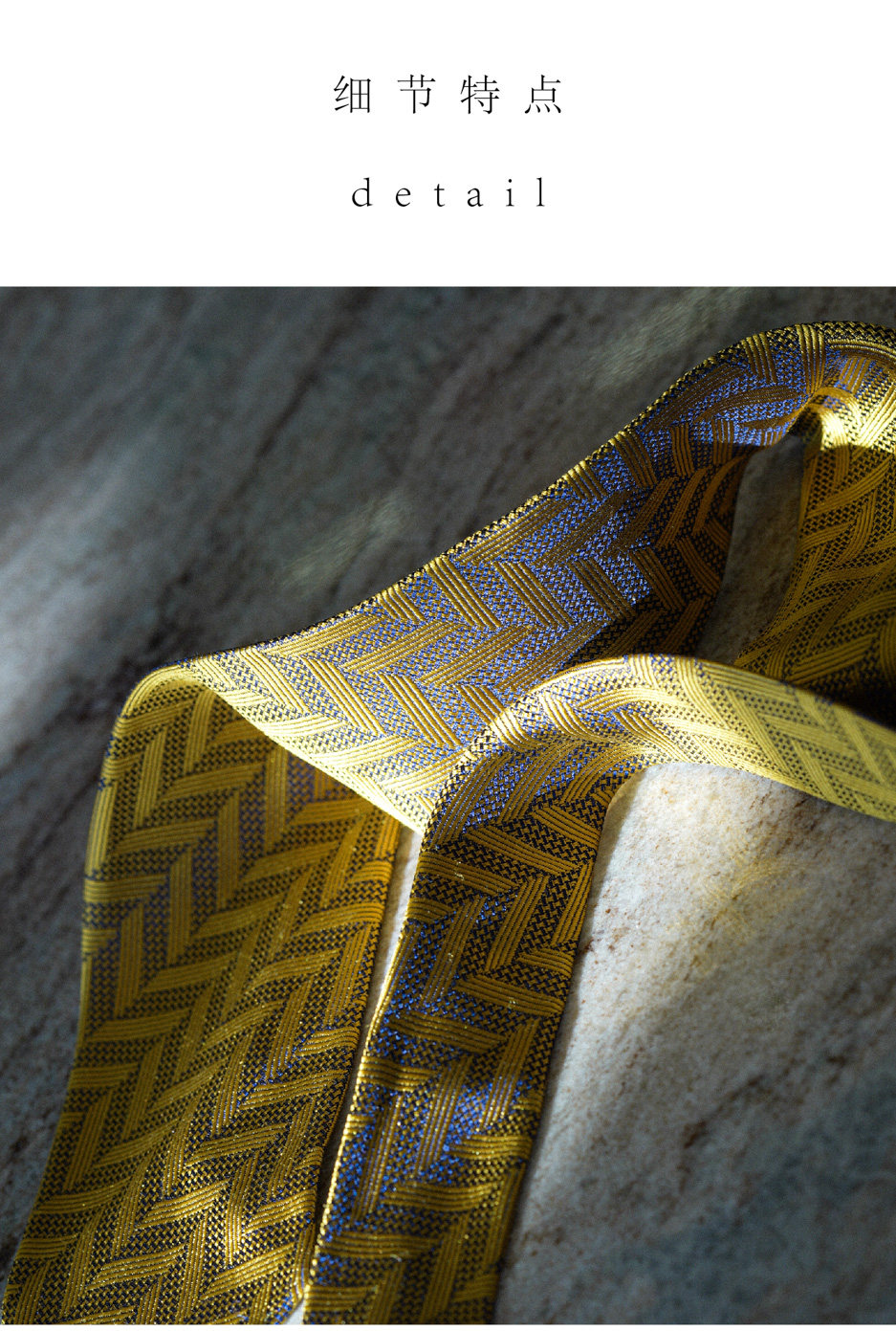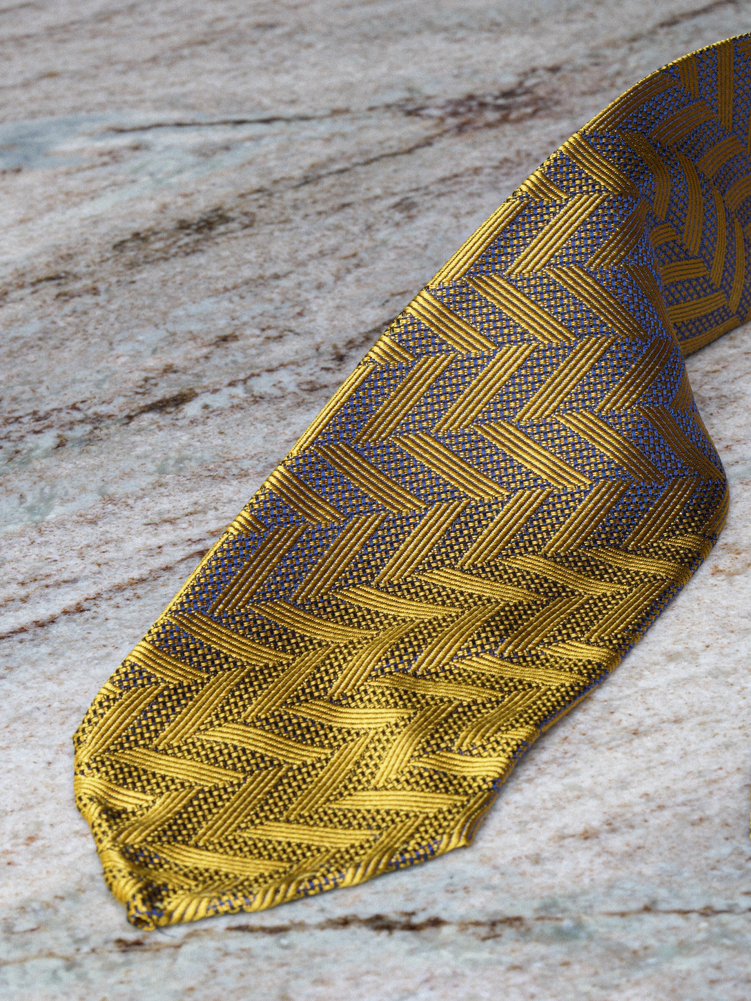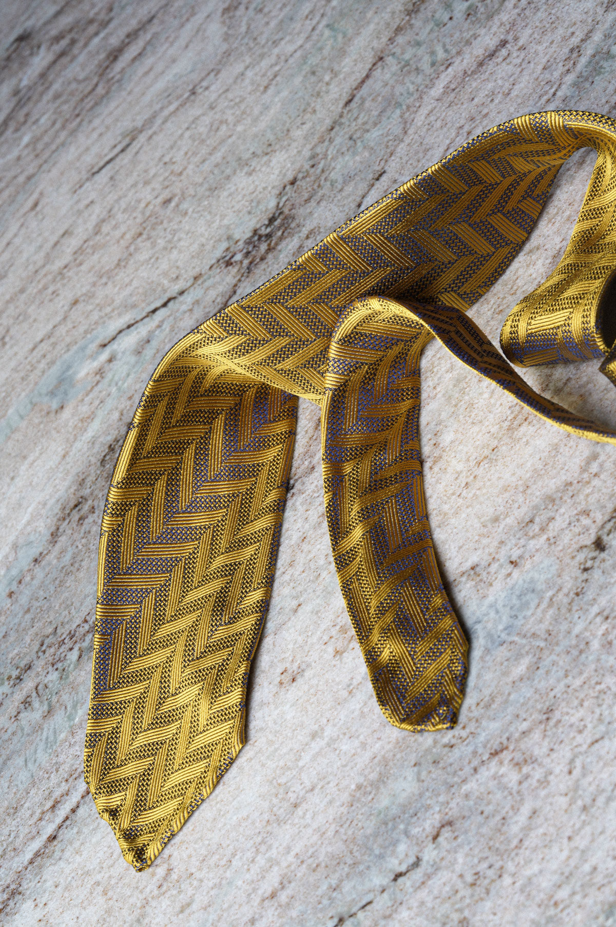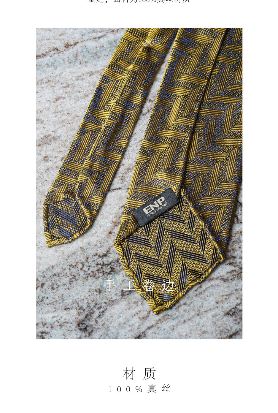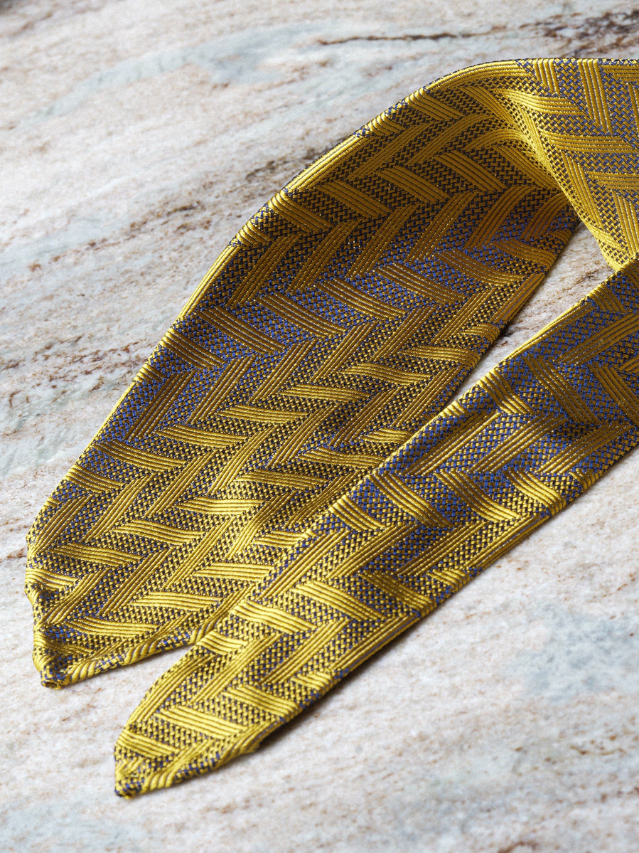 【Silk 70% off Necktie】Enp Golden Chevron Pattern Italian Style Pure Wool Lining Handmade Rolled Edge
