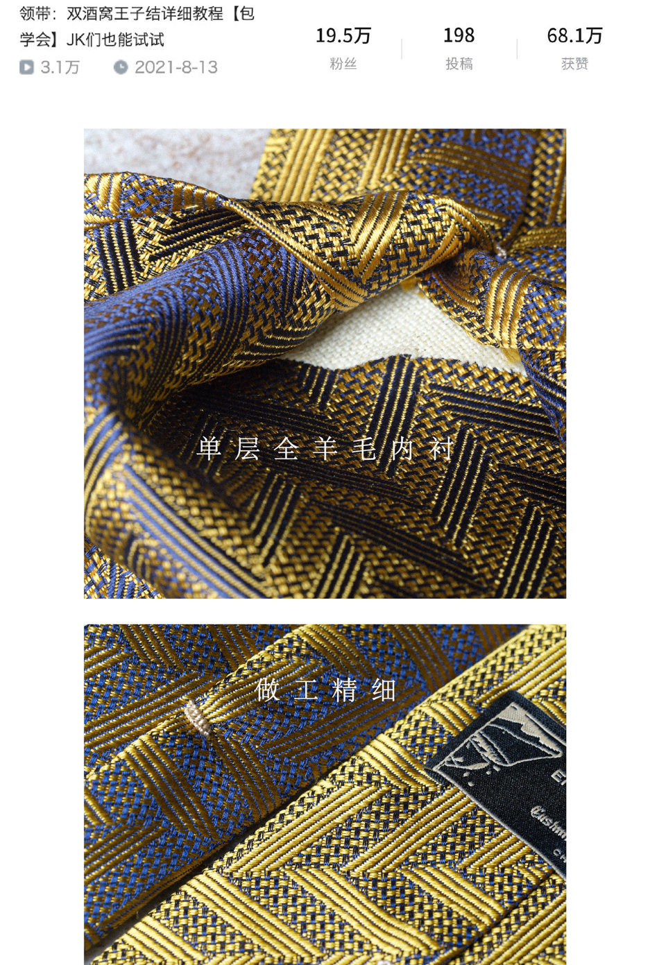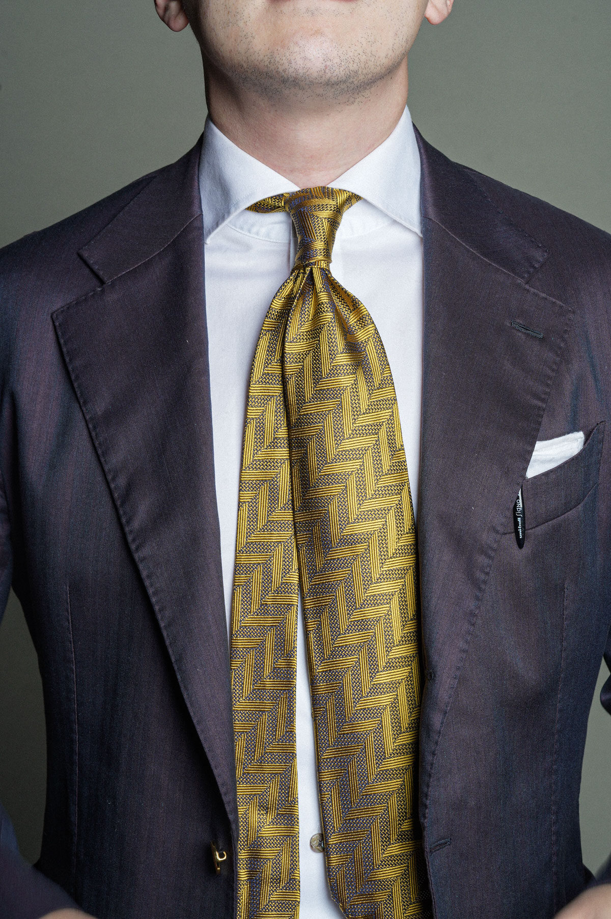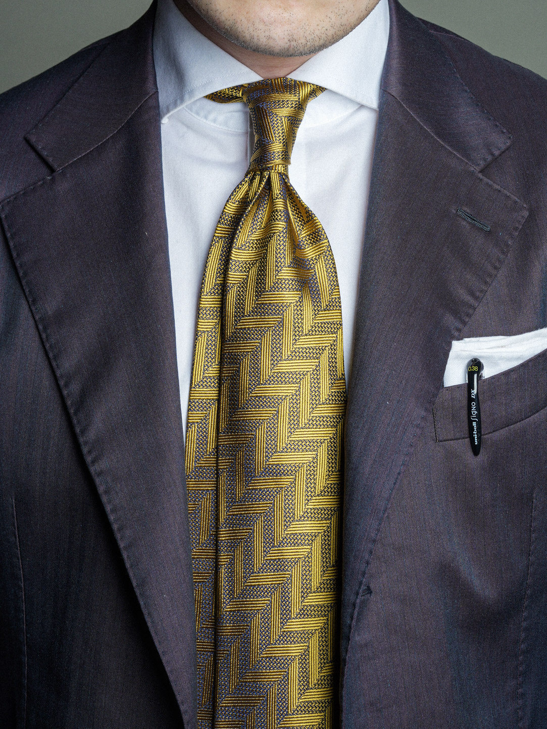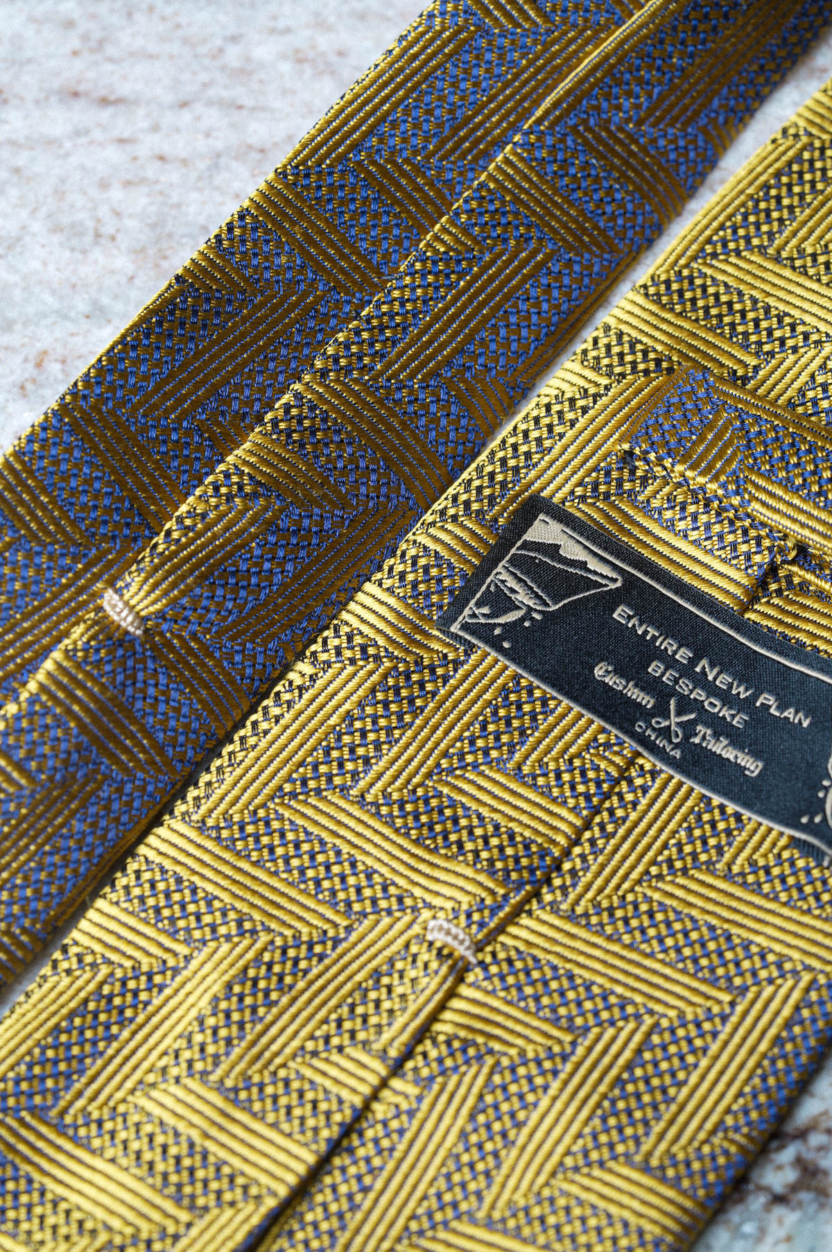 【Silk 70% off Necktie】Enp Golden Chevron Pattern Italian Style Pure Wool Lining Handmade Rolled Edge