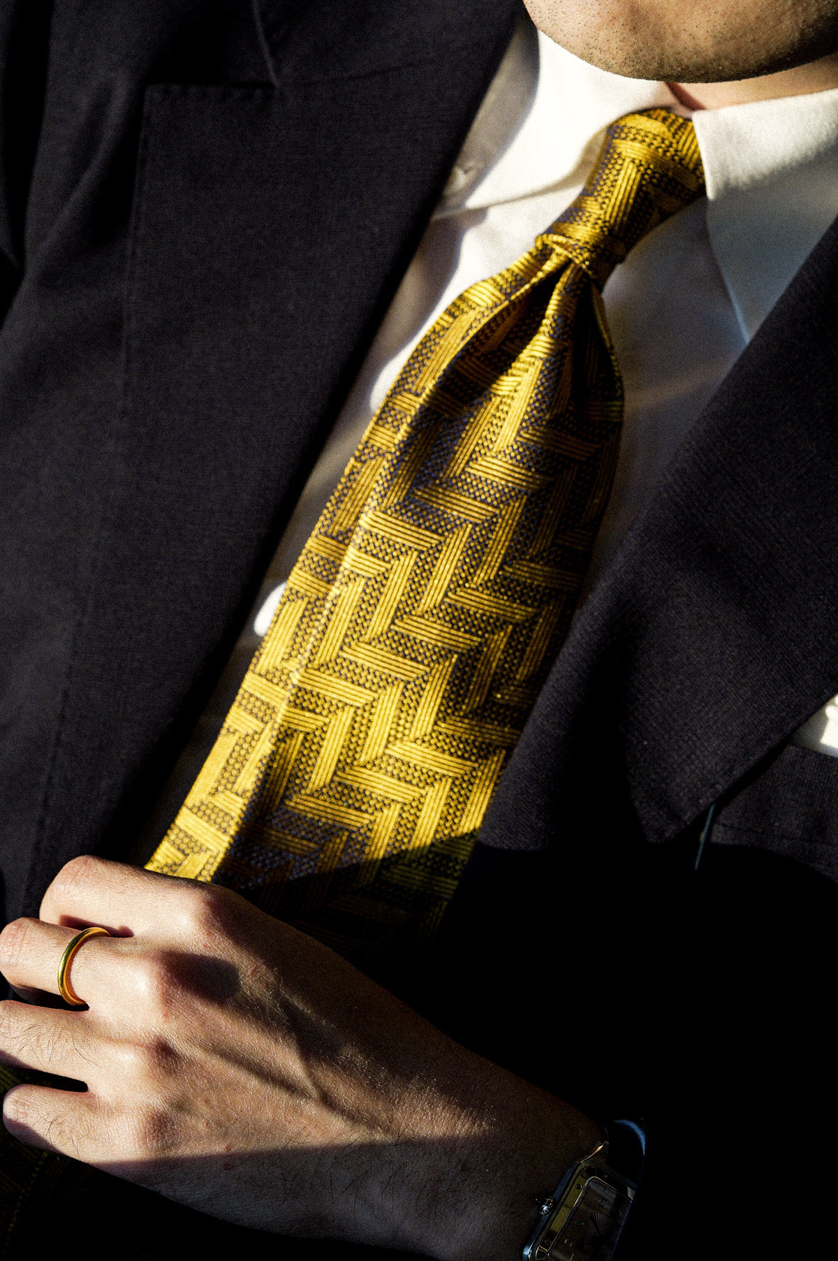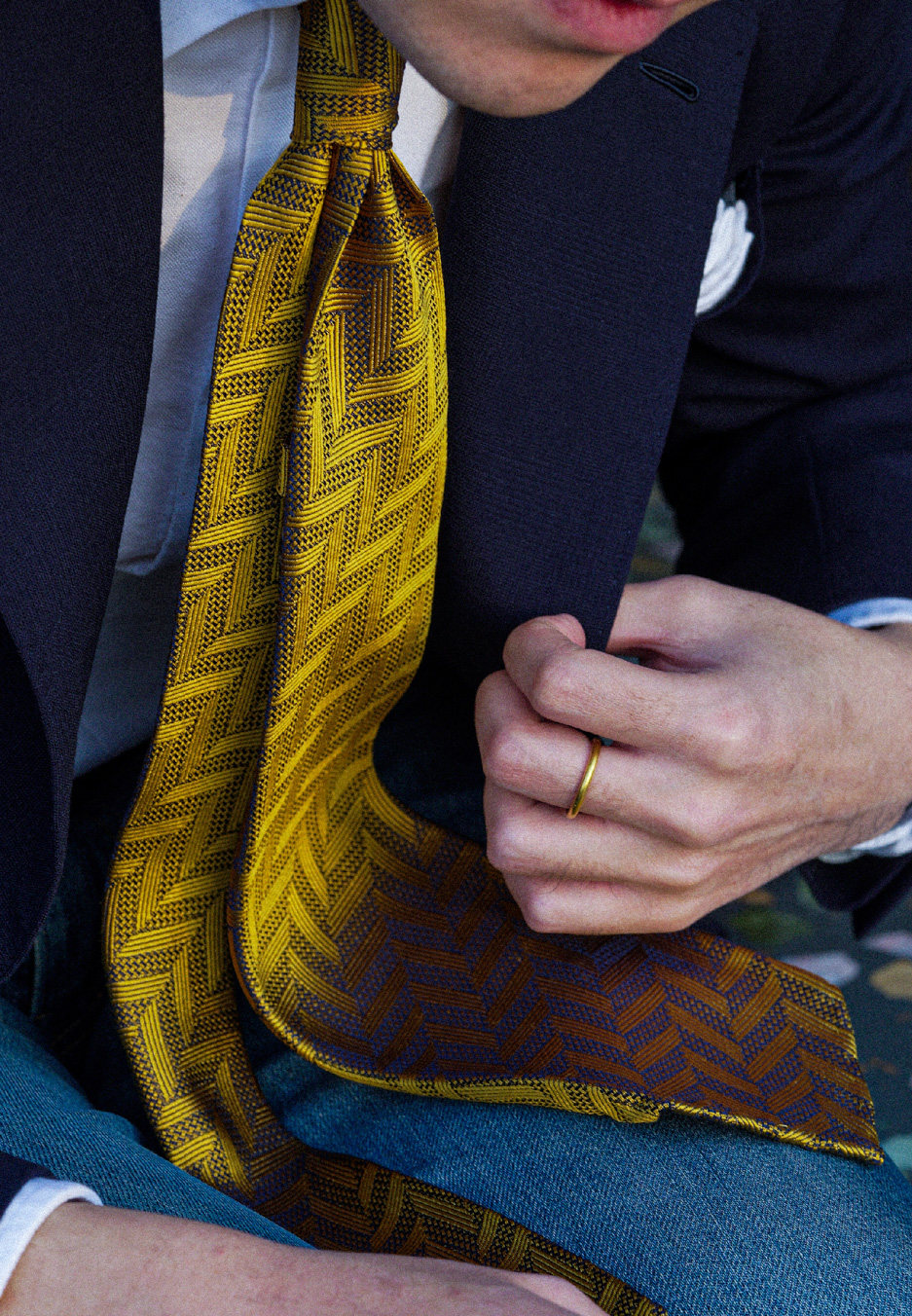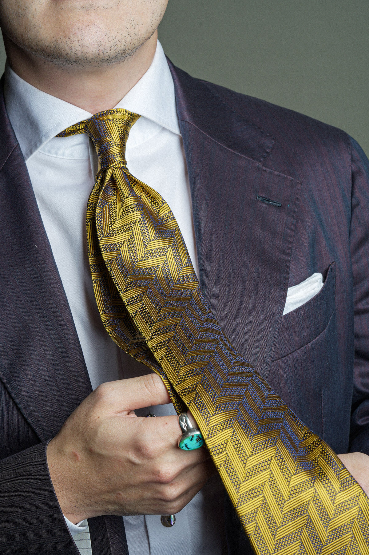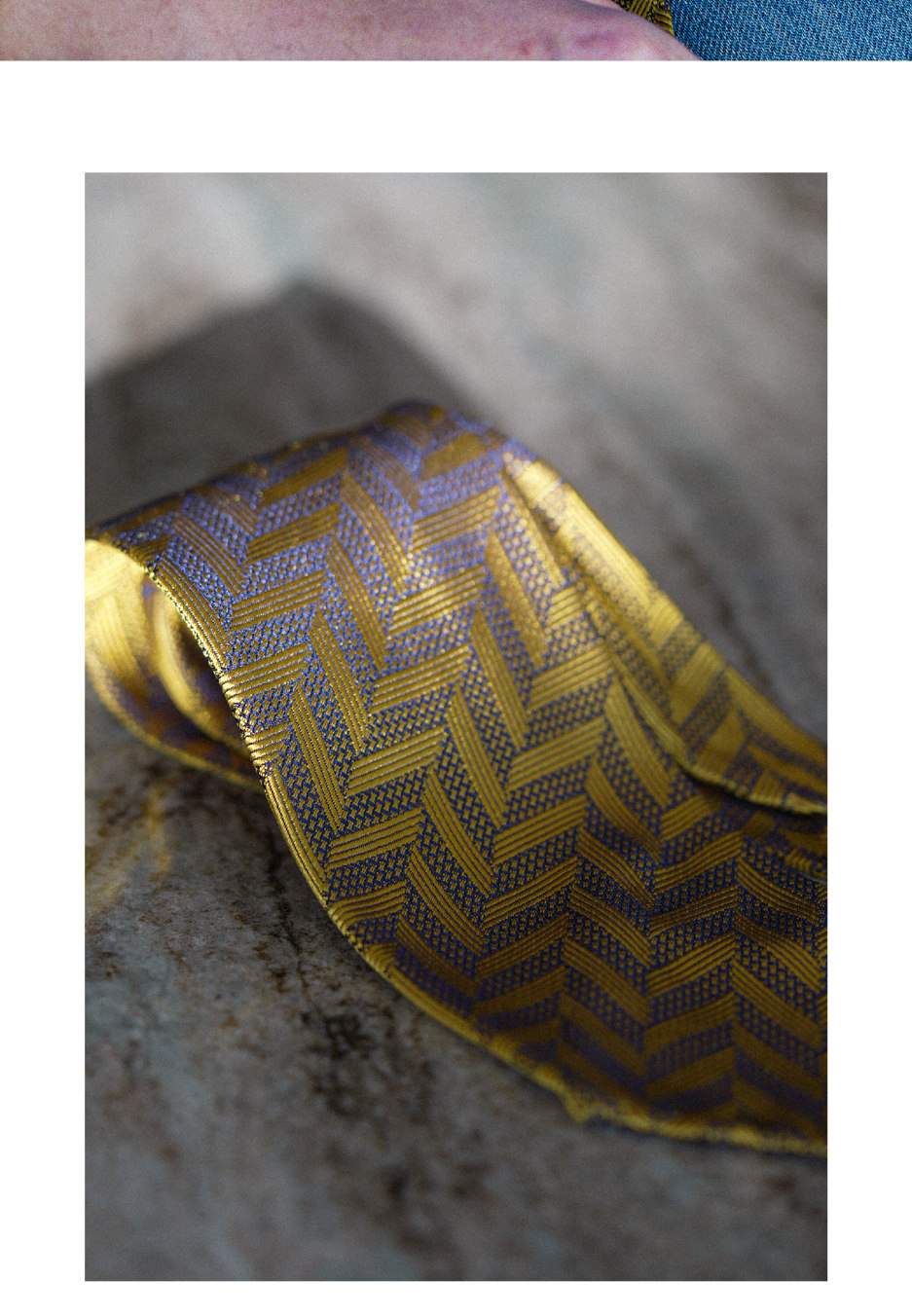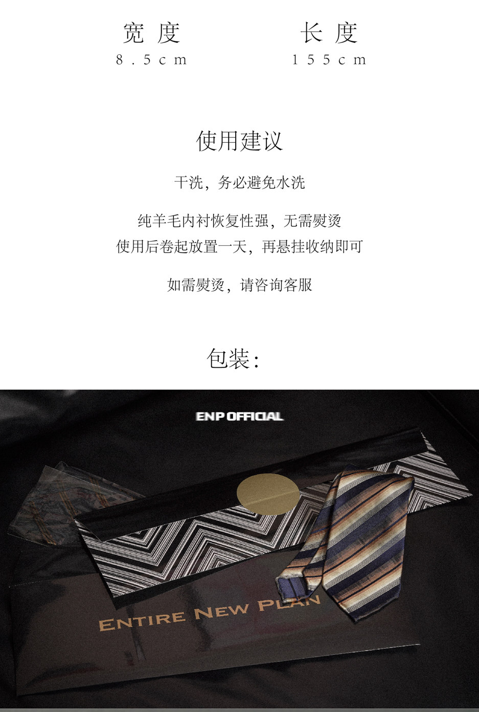 【Silk 70% off Necktie】Enp Golden Chevron Pattern Italian Style Pure Wool Lining Handmade Rolled Edge