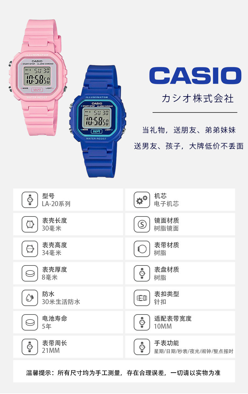 Casio Versatile Student Square Compact Children's Casual Fashion Waterproof Digital Watch La-20Wh-4A