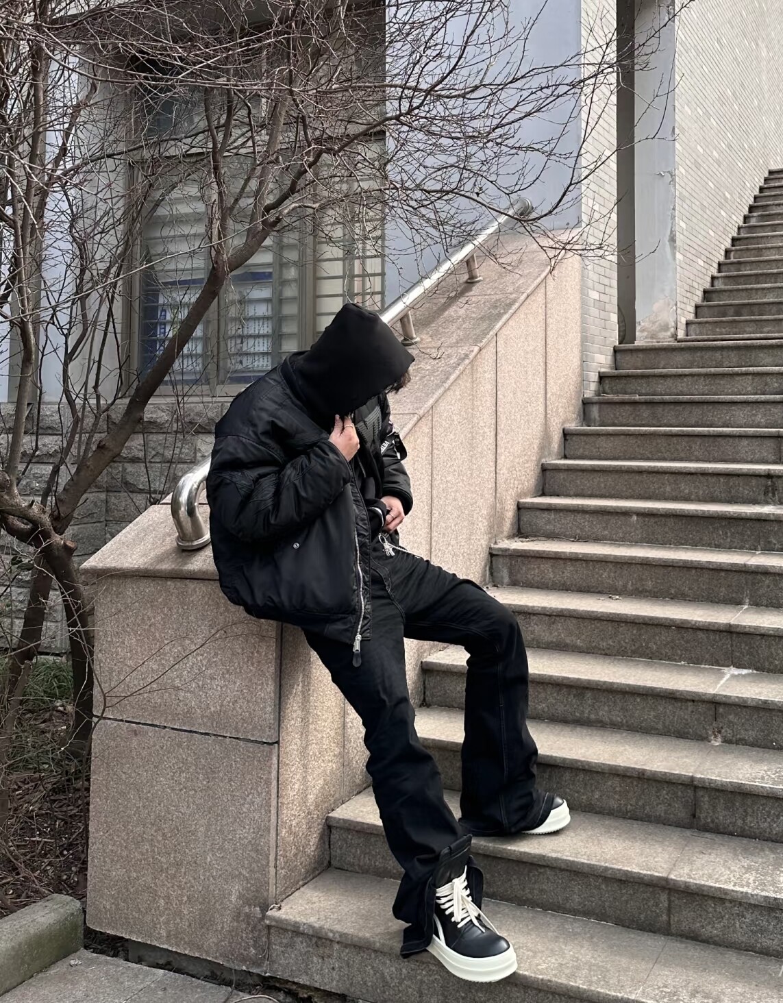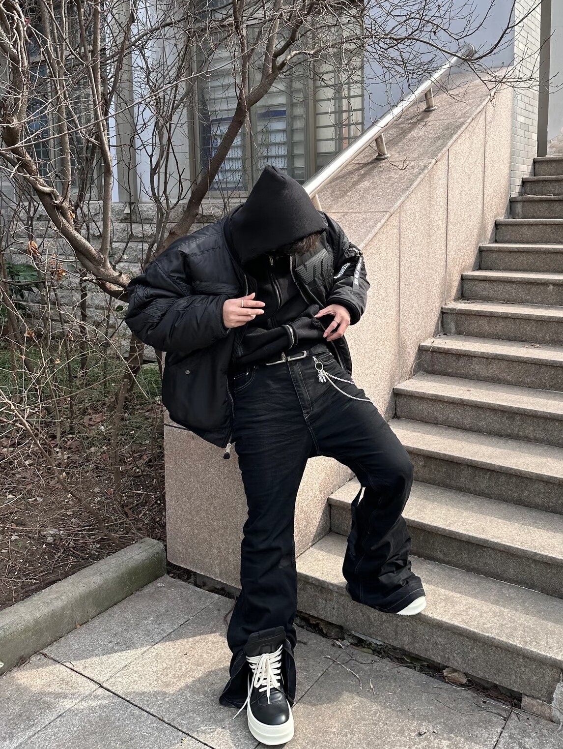 Oinck Owem Thick-Soled Rog Ro Unisex Dark Double-Layer Height-Increasing Black and White Main Line Leather Inverted Triangle High-Top Shoes