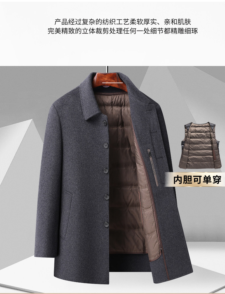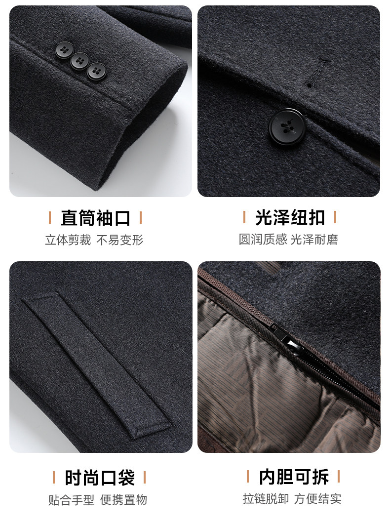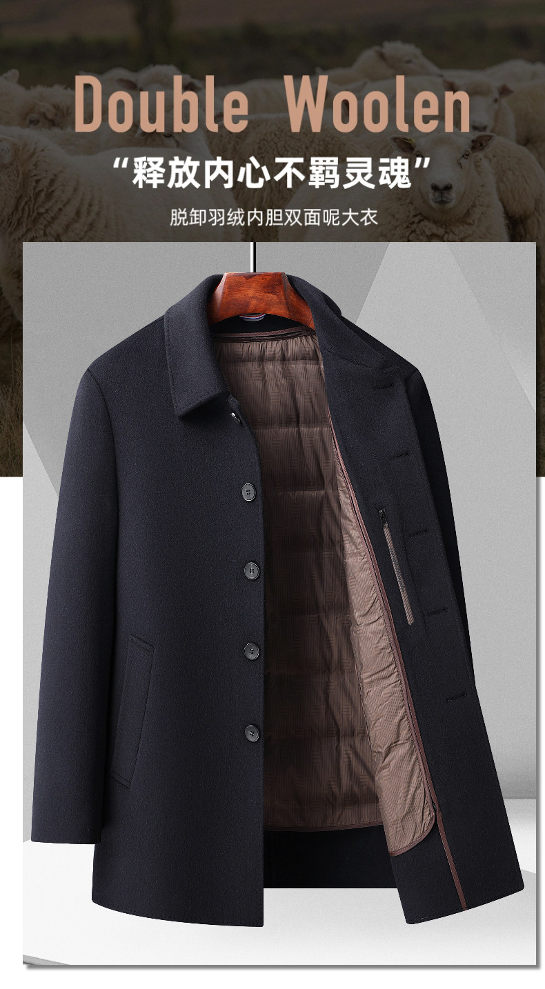 【Includes Wool + Two-Way Wear】Romon Men's Woolen Coat 2025 Winter New Double-Sided Woolen Jacket for Men