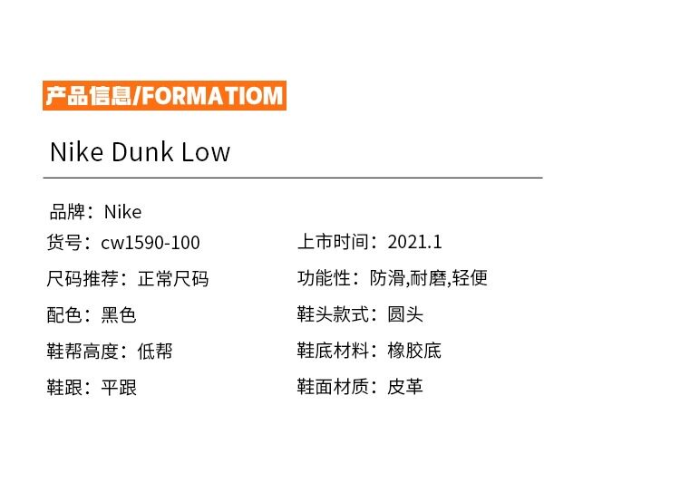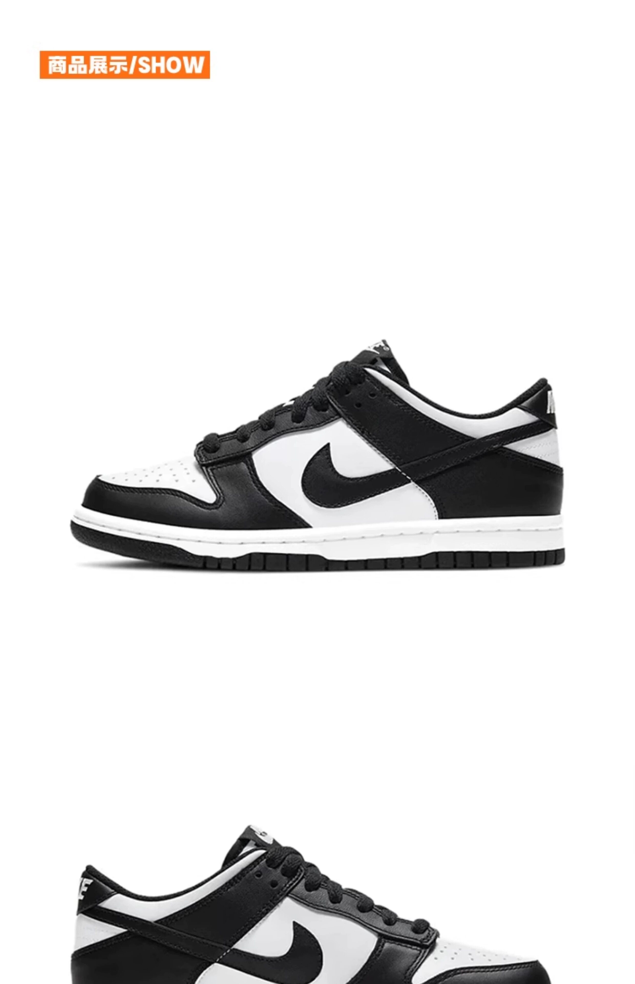 Nike Dunk Low Gs Big Kids Panda Black and White Board Shoes Women's Low-Top Wear-Resistant Sports Casual Shoes Cw1590-100