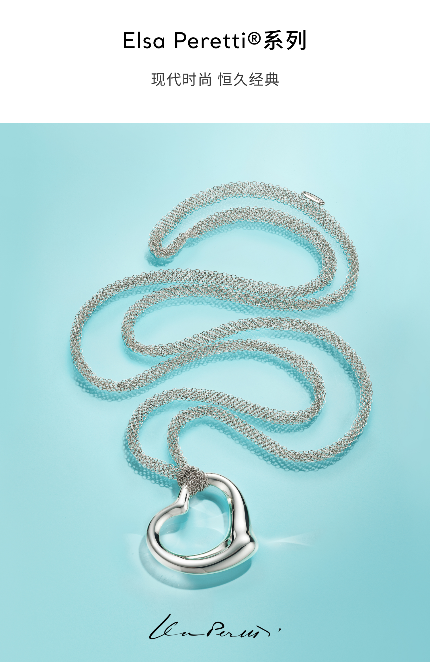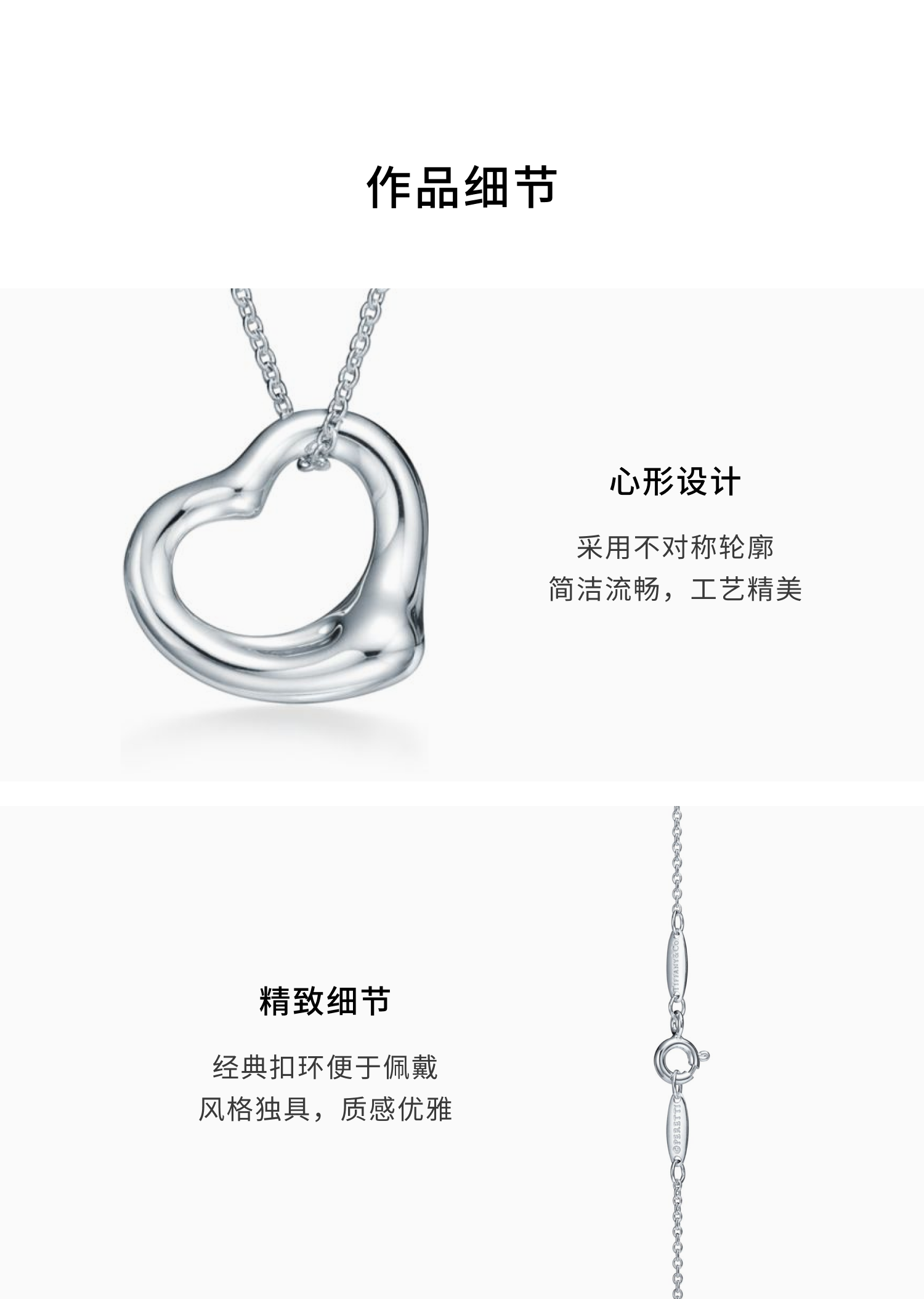 Elsa Peretti系列Open Heart设计简约、引人共鸣,诠释出爱的真谛。此款优雅造型是她的标志性设计之一。