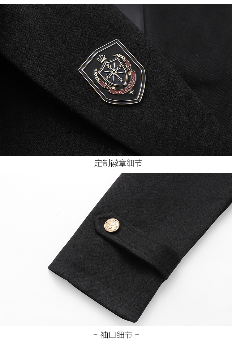 Hua Qianzhu Original Kino Gao Coat School Style Jk Uniform Mid-Length Black Trench Coat with Lapel Woolen Coat Jacket