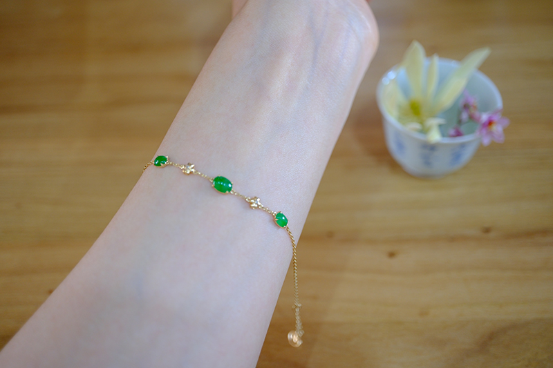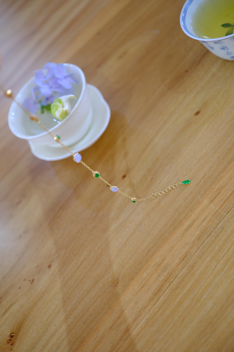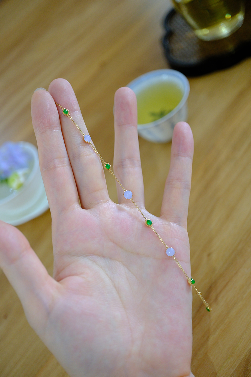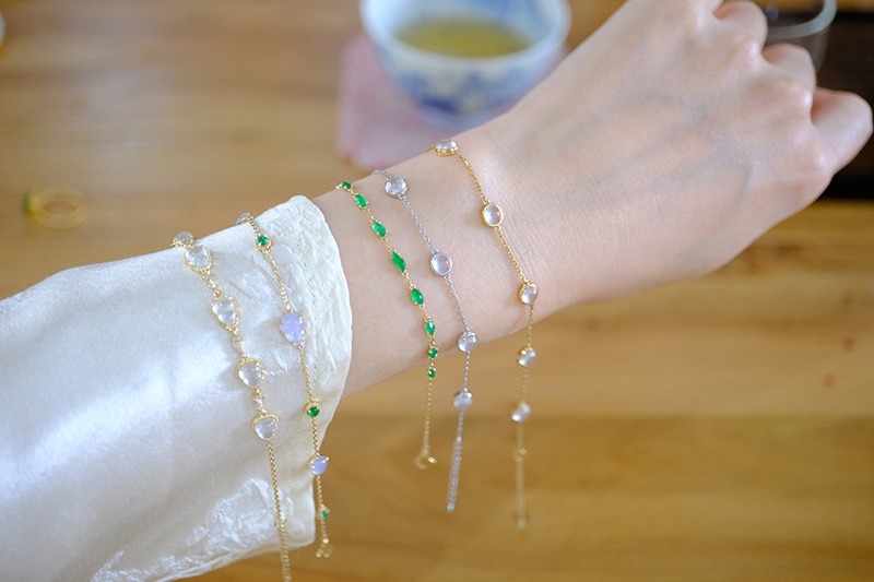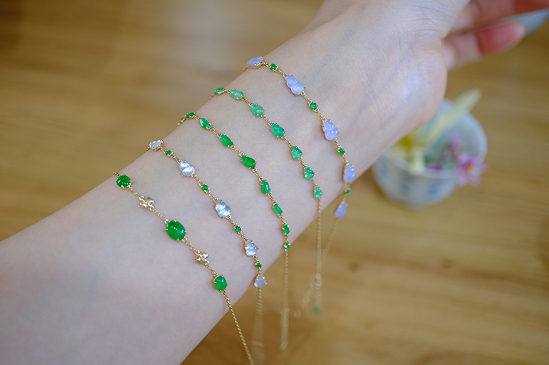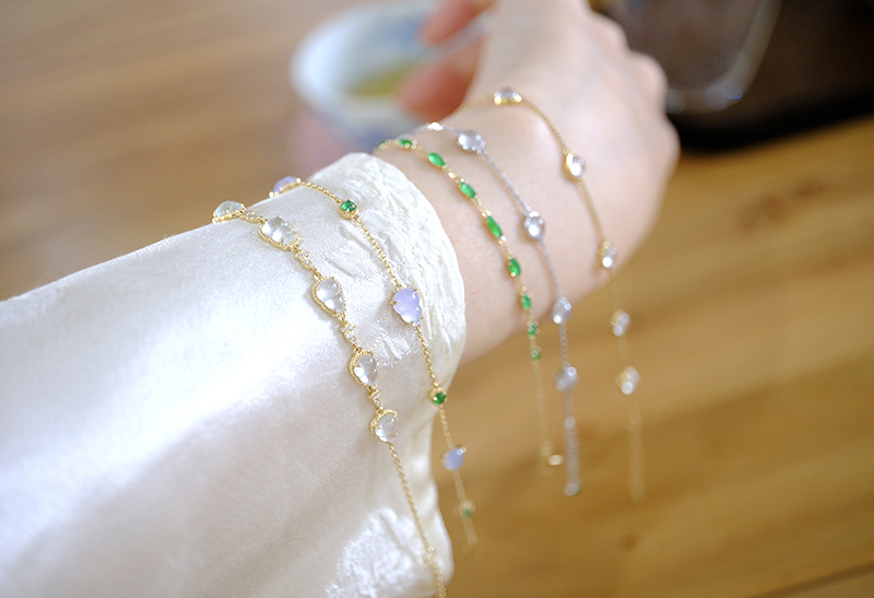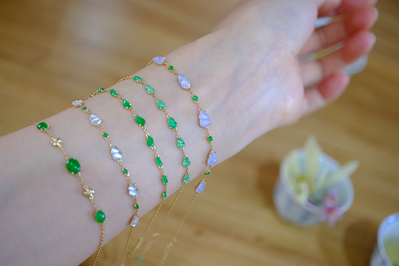 Fulu 18K Gold Inlaid with Burmese Jade Gourd, Ruyi, Ice White, Sun Green, Fairy Purple, Mountain House Bracelet